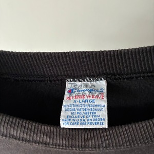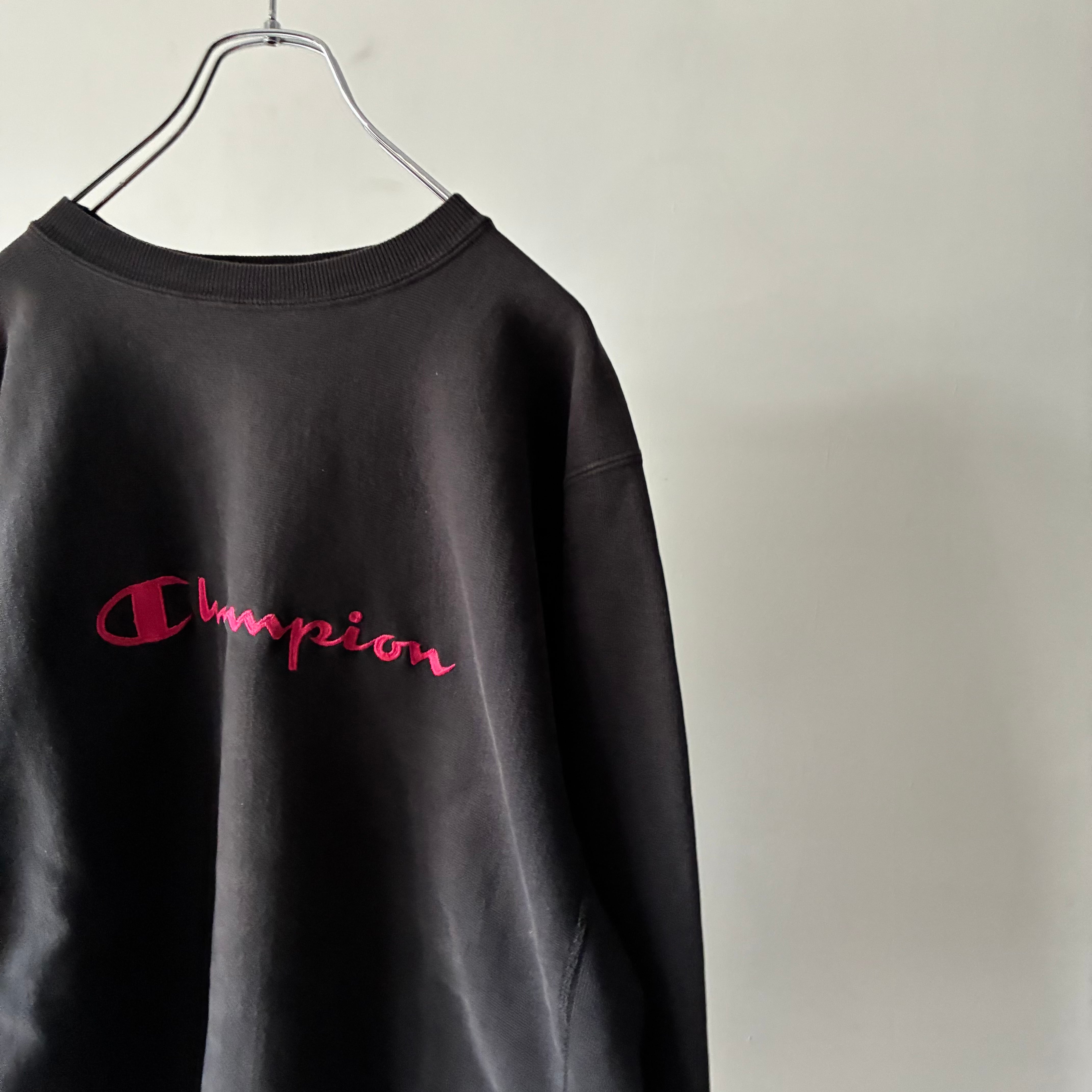 フロントには筆記体の“Champion”ロゴが赤刺繍で施され、ブラックボディとのコントラストが映えるデザイン