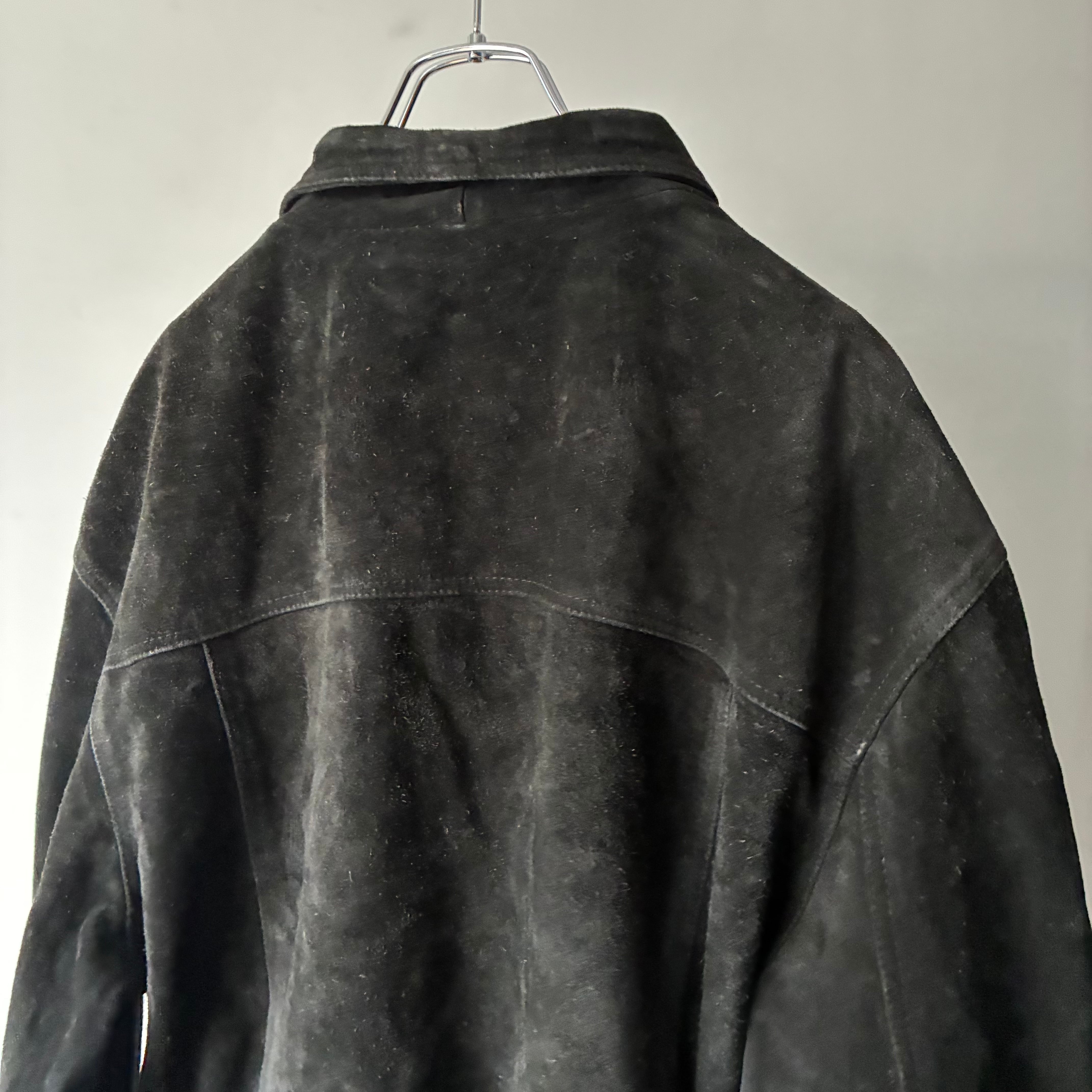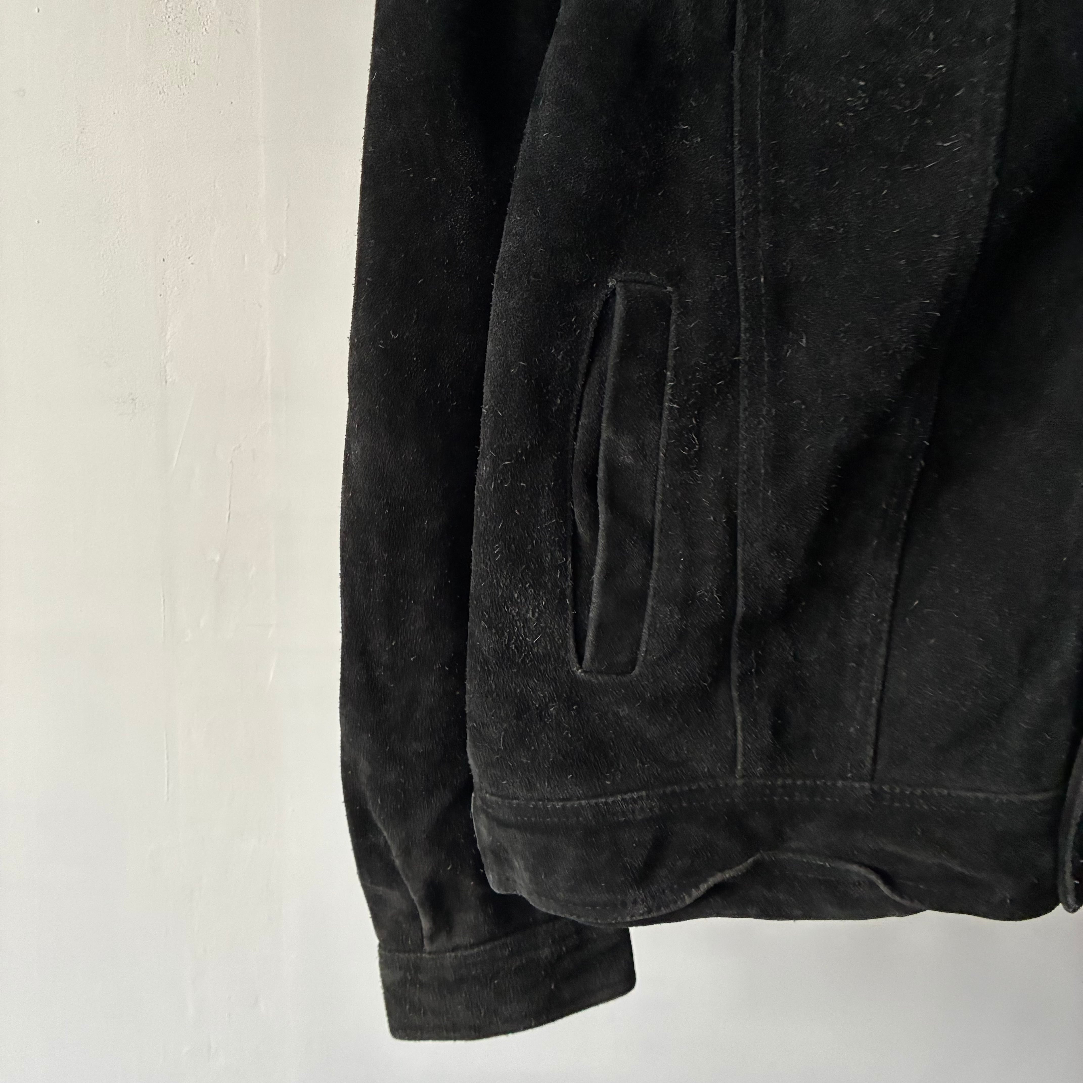 重厚感のある質感とマットなブラックスエードの表情が魅力の一着