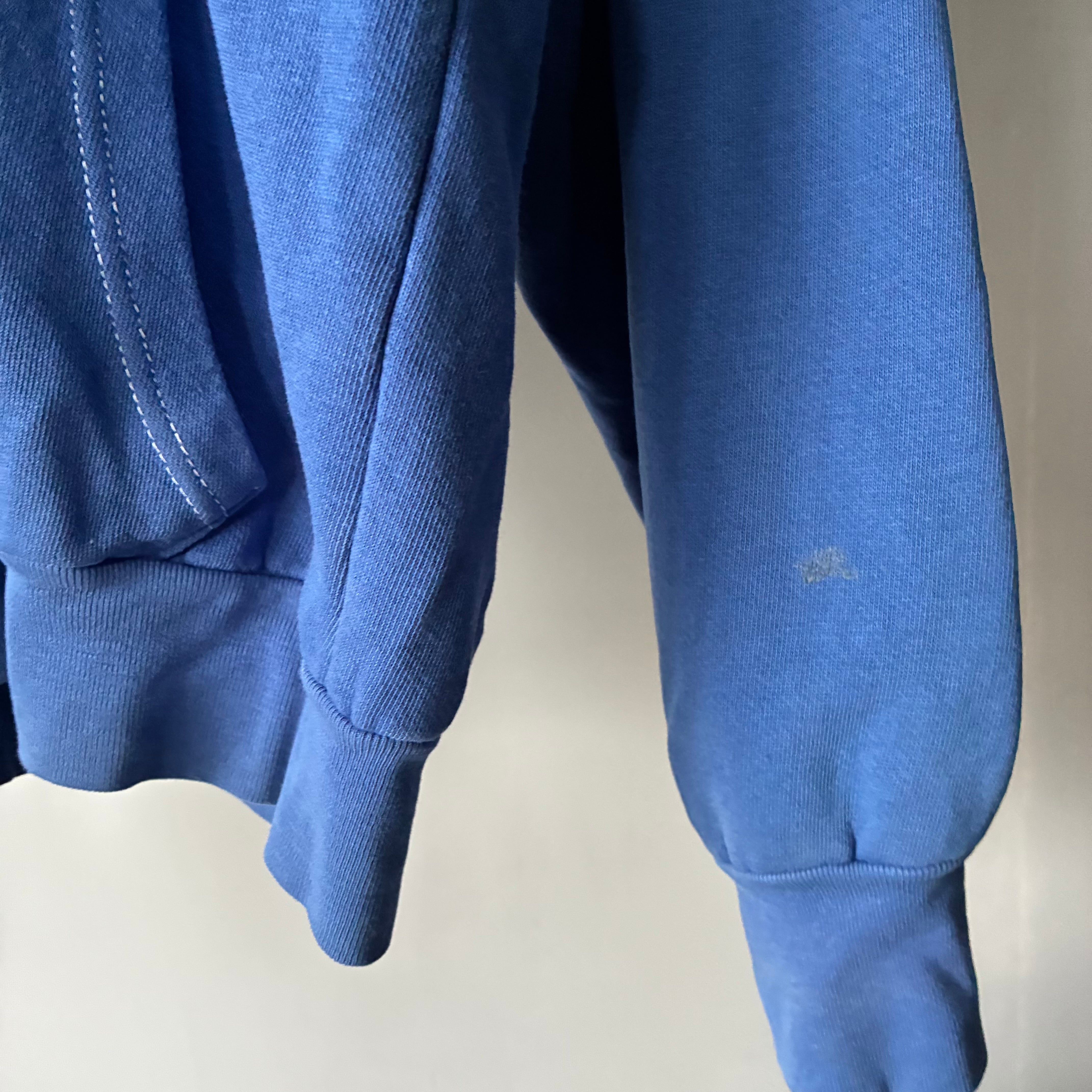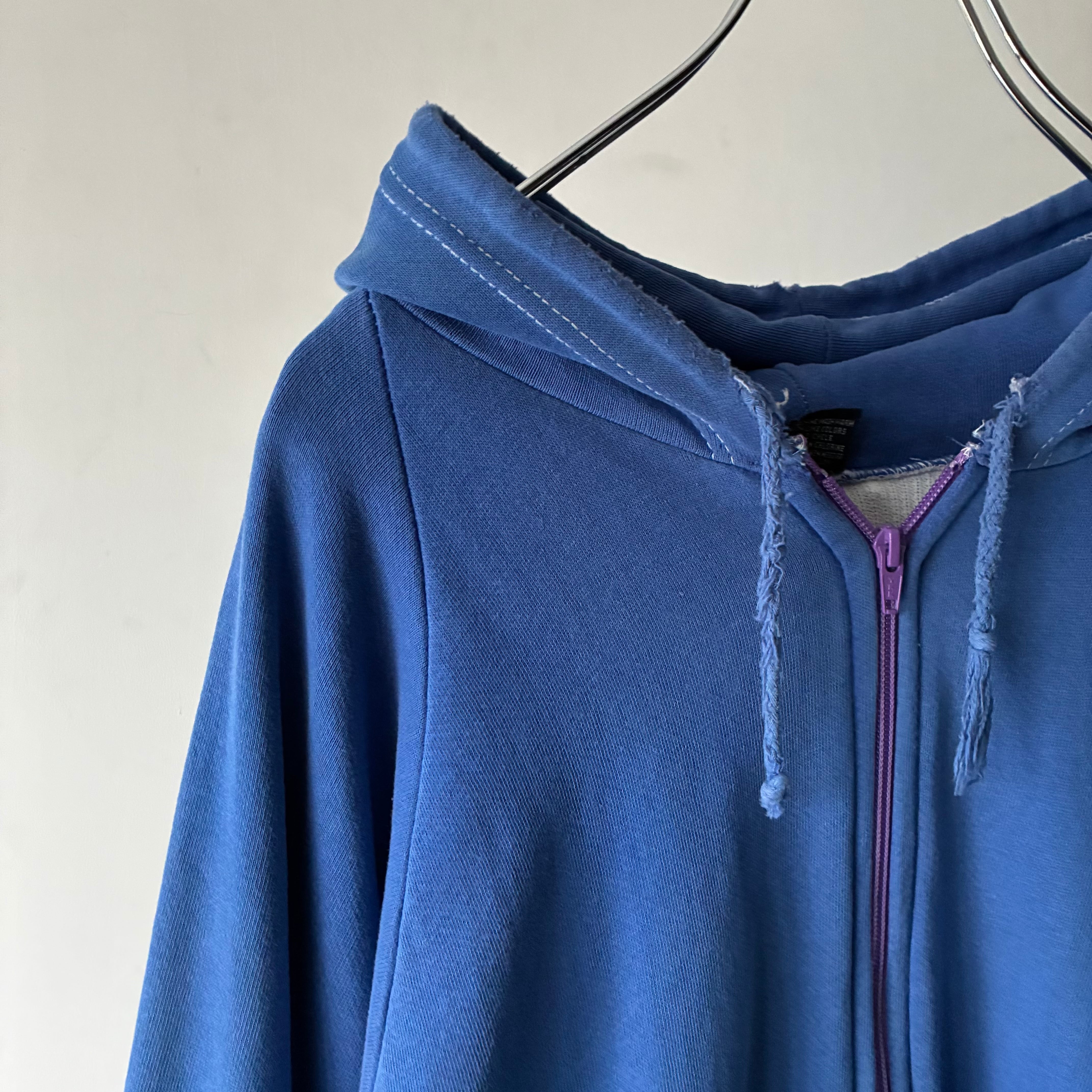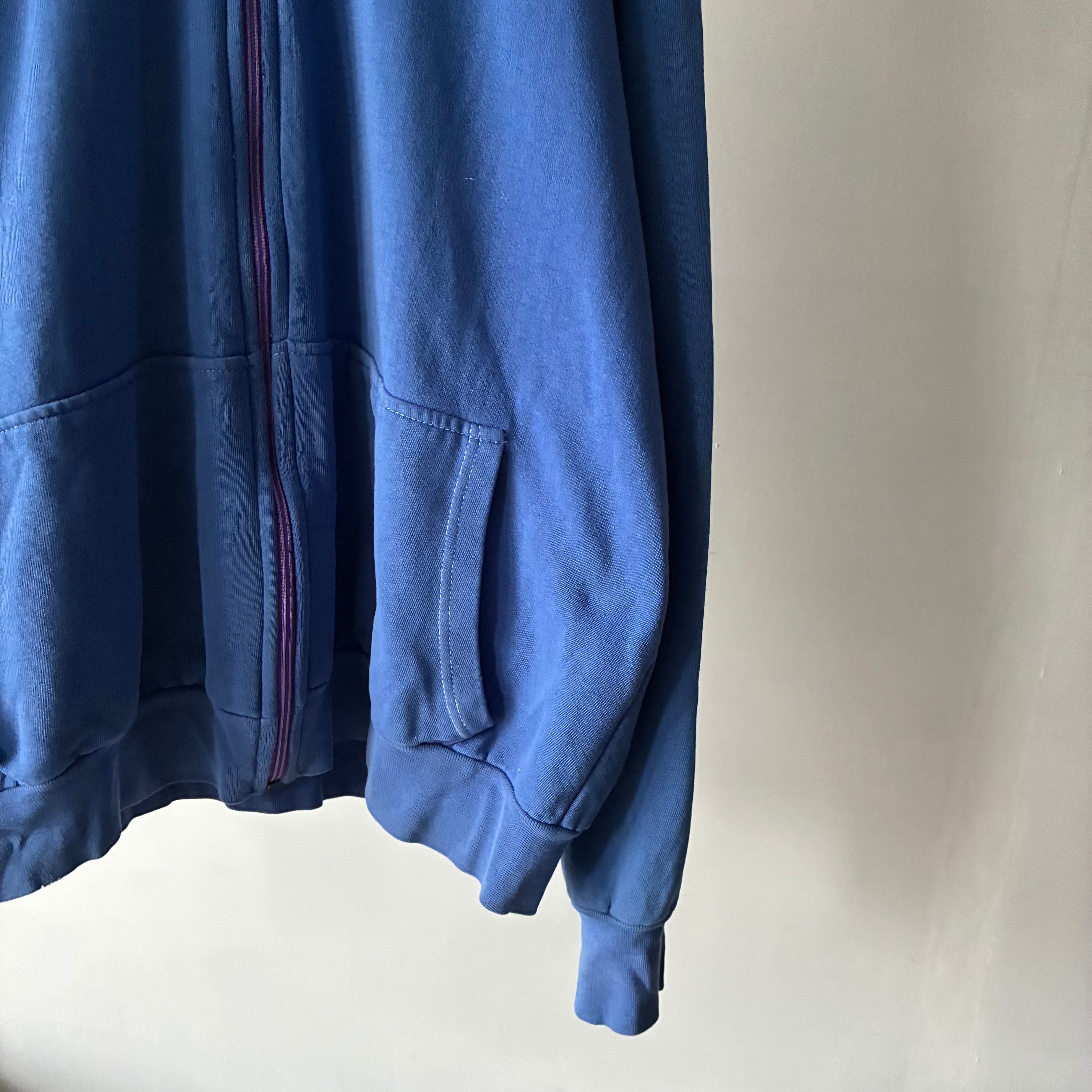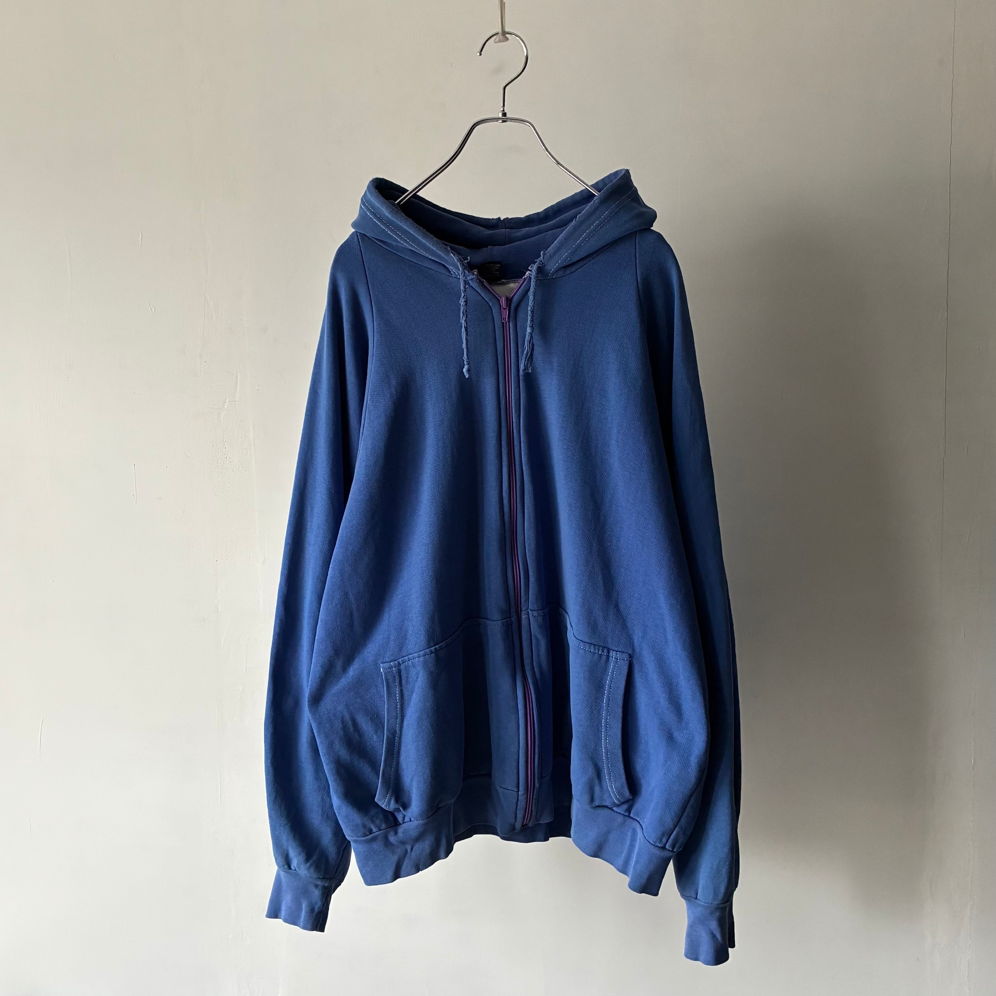 パープルカラーのジップがさりげないアクセントになり、古着らしい抜け感を演出します