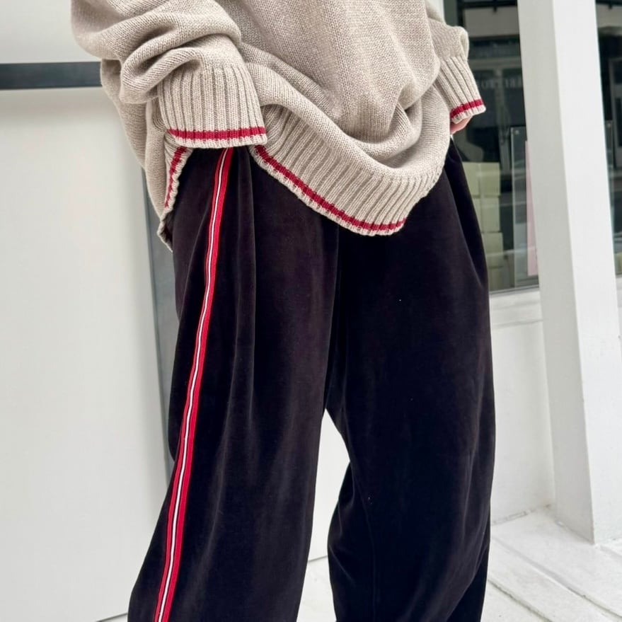 気軽に着用できてスウェットパンツより上品な印象で履けるドローコード仕様のイージーベロアパンツ