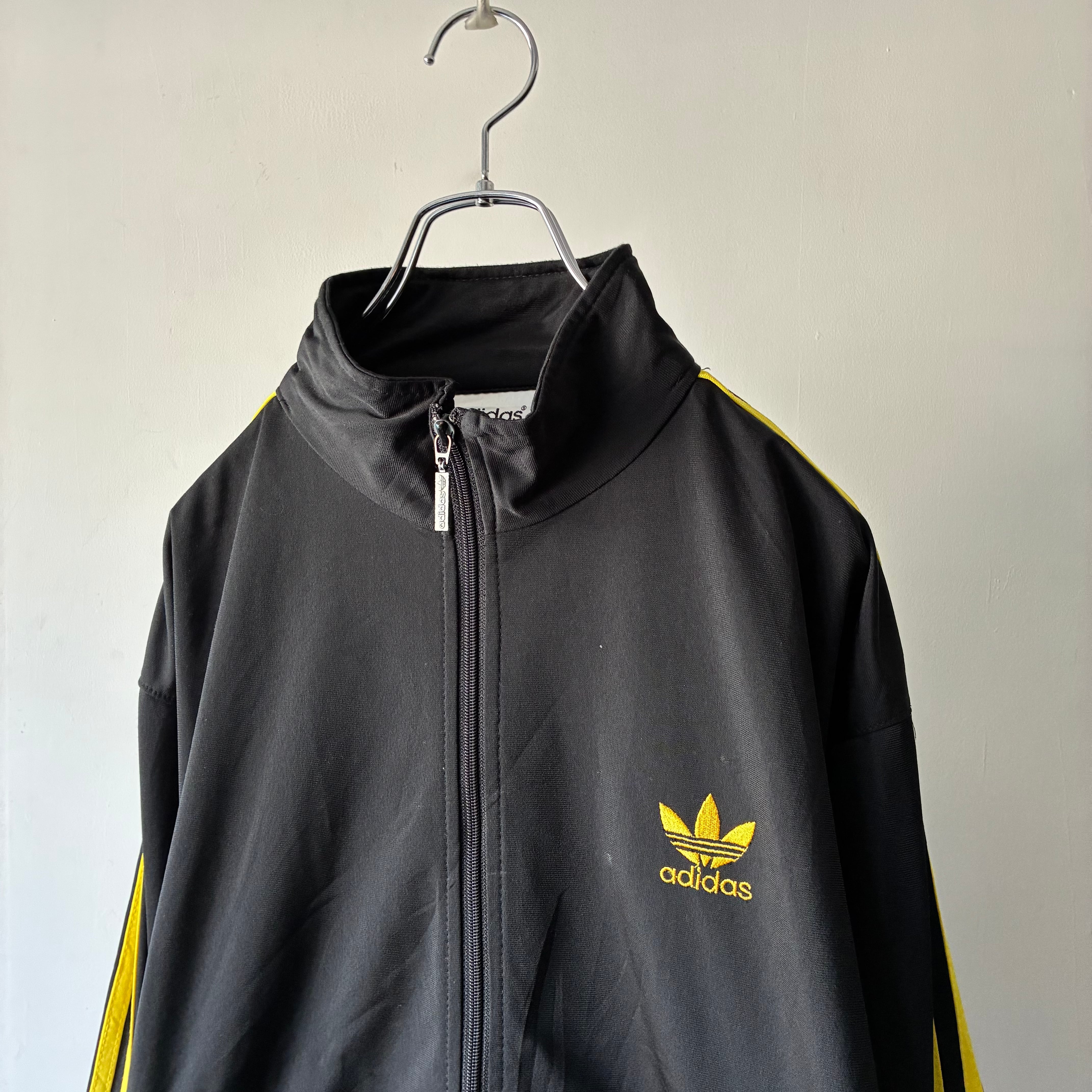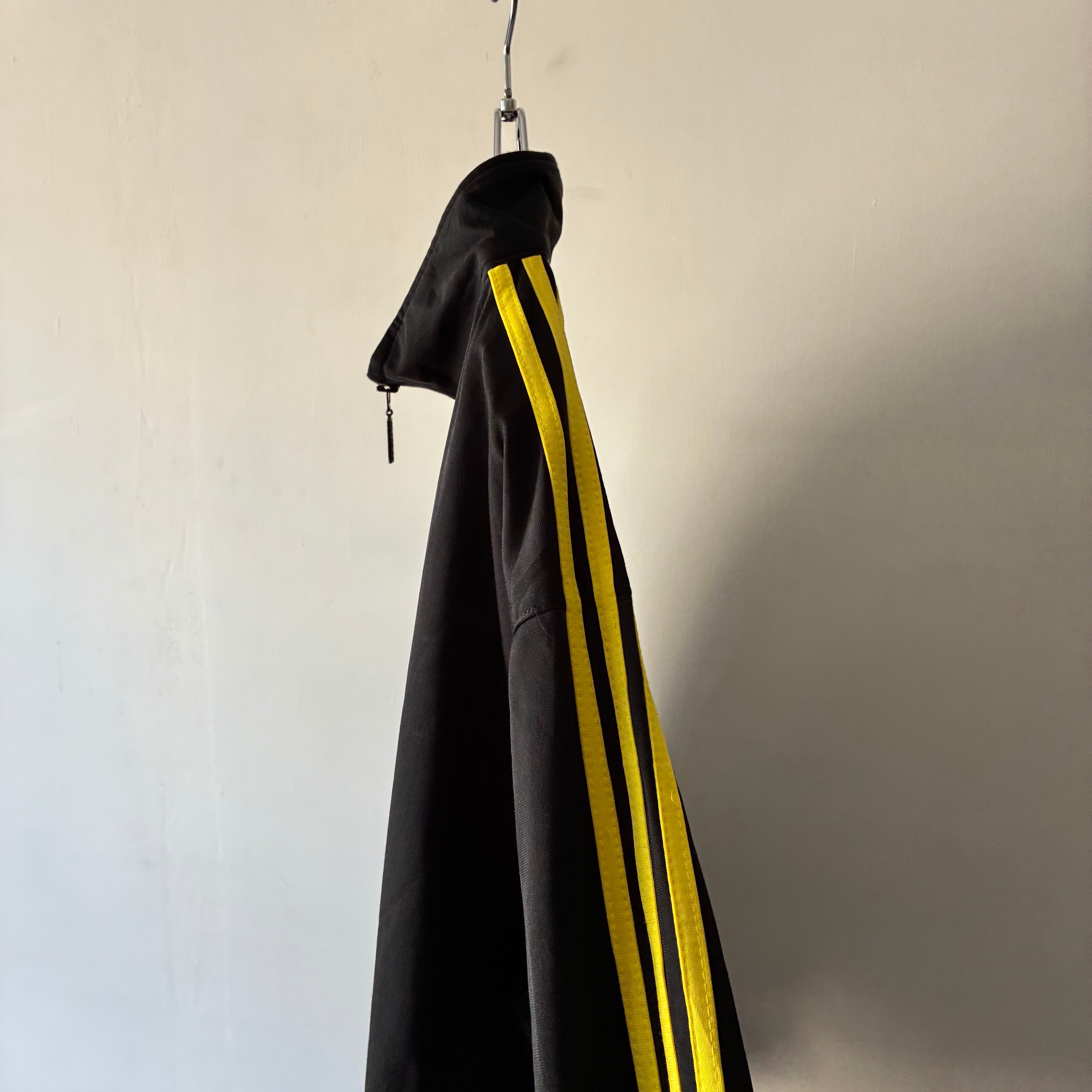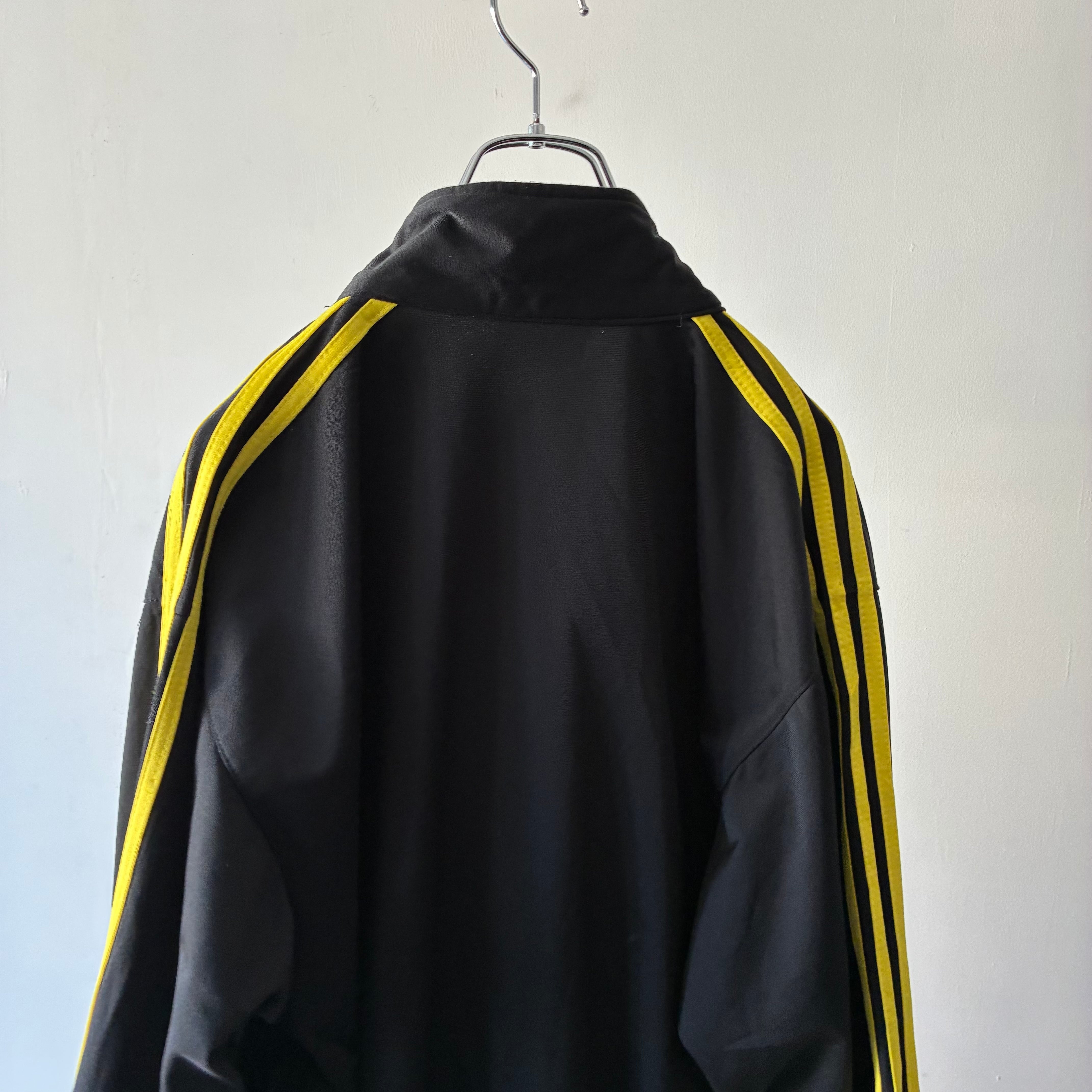 ブラックをベースに袖のイエローのスリーストライプと胸元のトレフォイルロゴ刺繍が印象的な一着