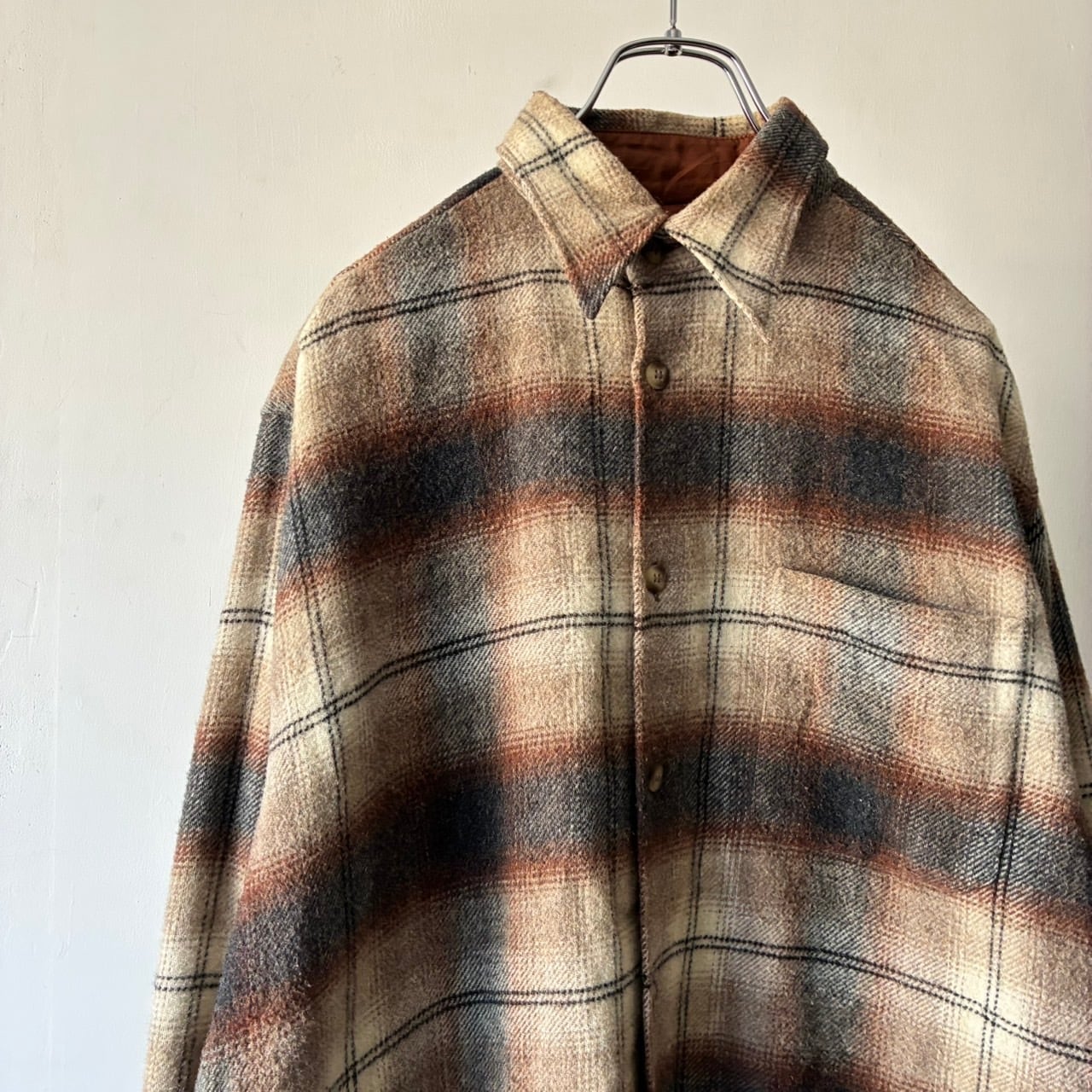 ブラウンを基調とした上品なグラデーションのシャドーチェックシャツ