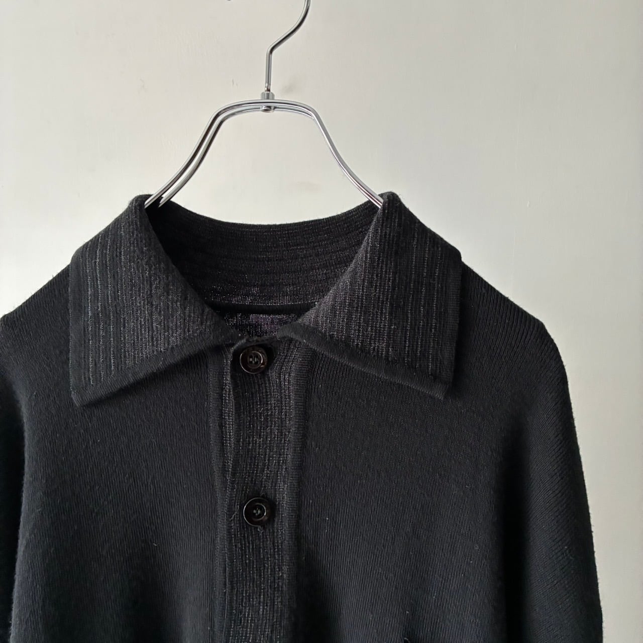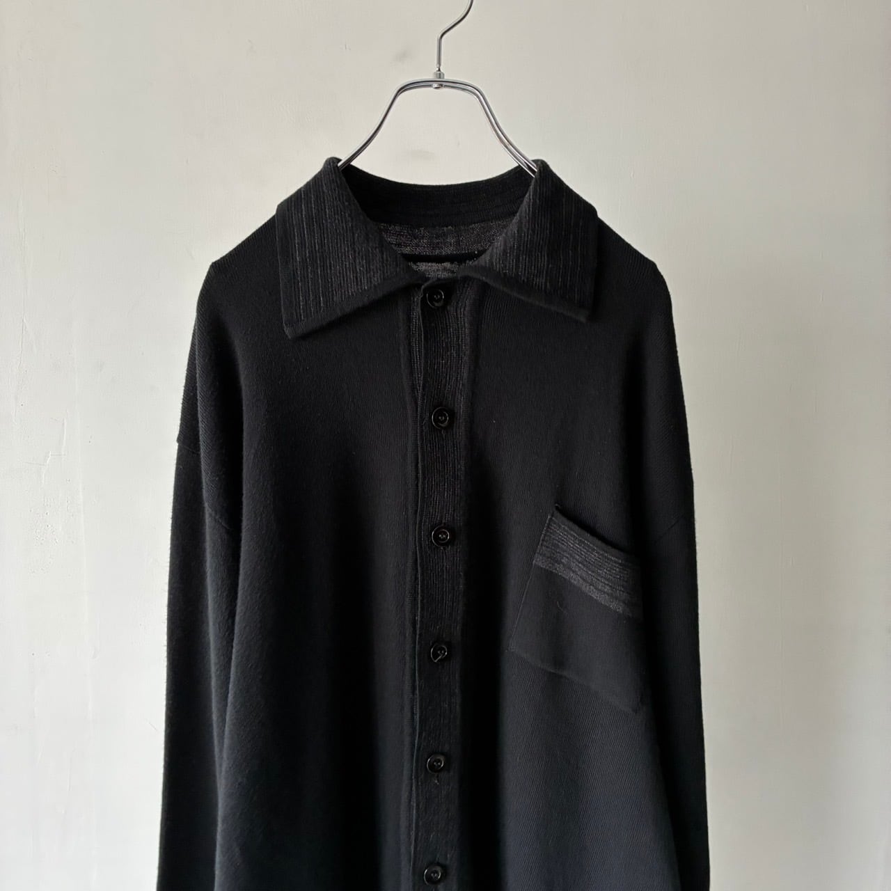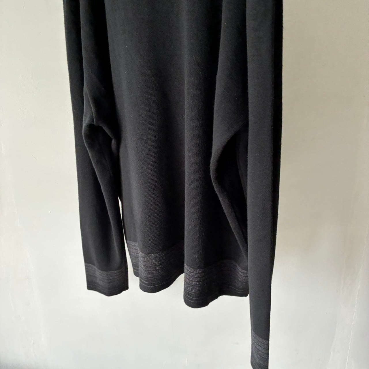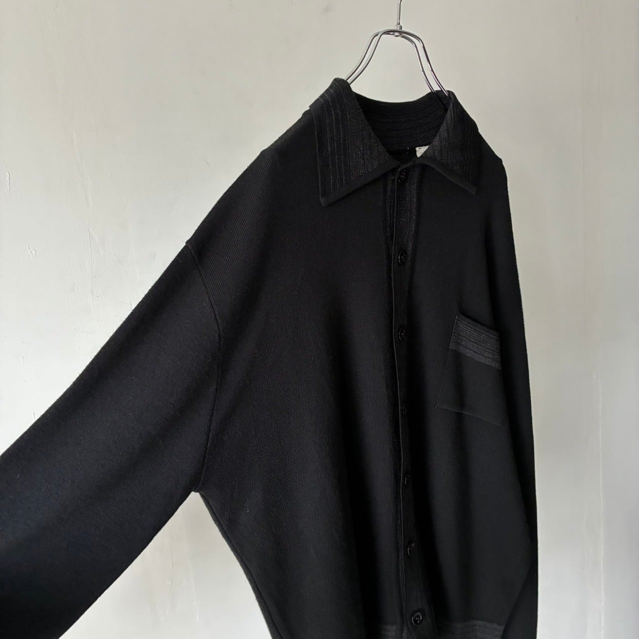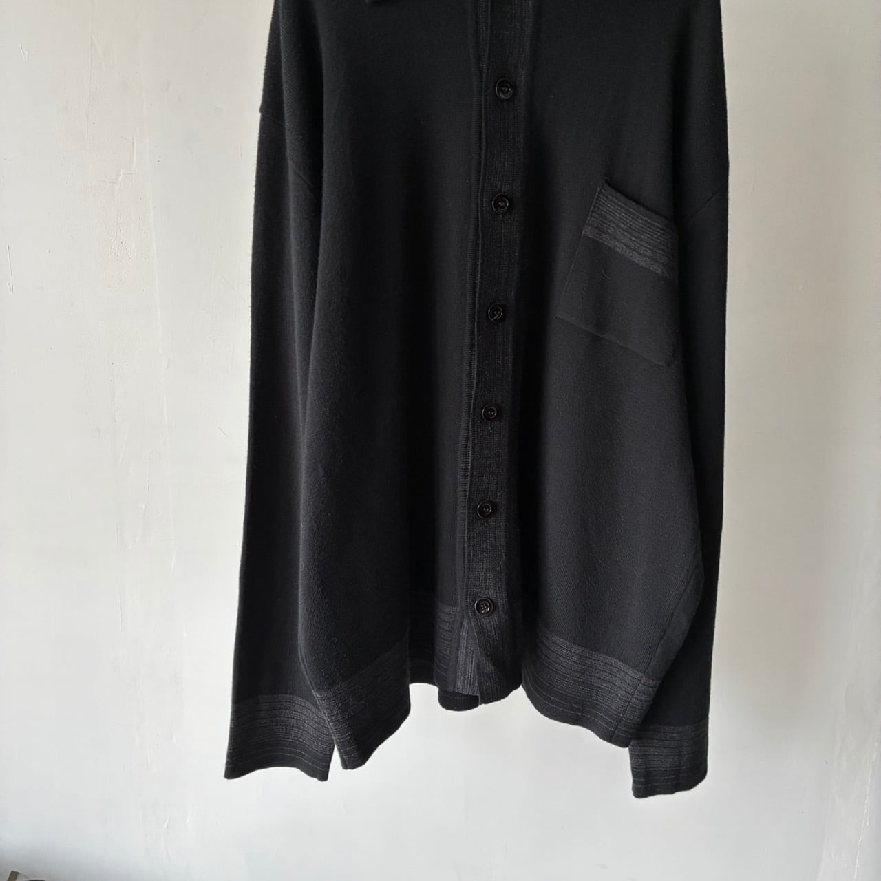 ブラックベースのボディにモノトーンでの落ち着きのある柄の切り替えが映えるイタリア製のニットシャツ