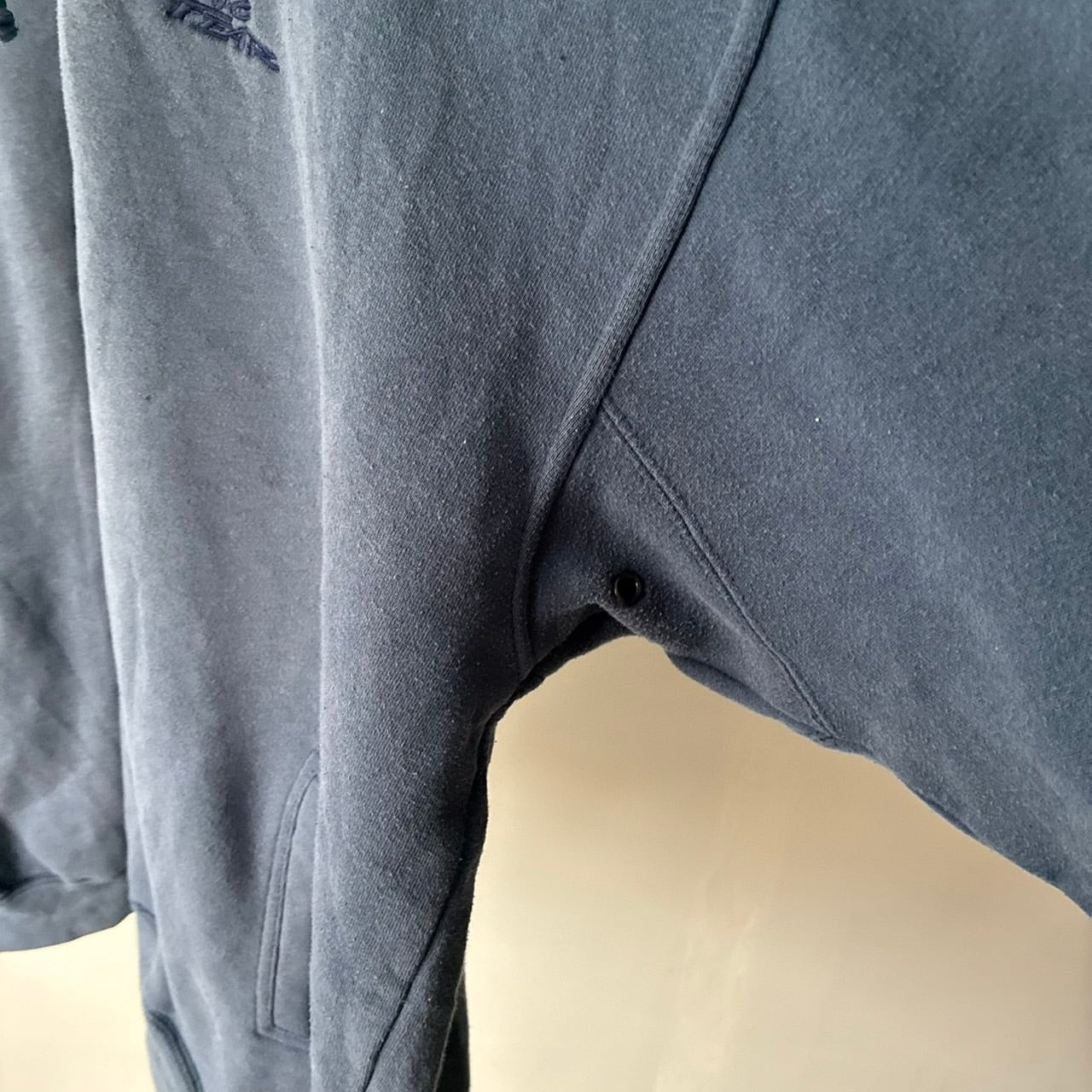 フェードの効いたネイビーカラーのボディで胸元の同色での刺繍ロゴもスタイリッシュ