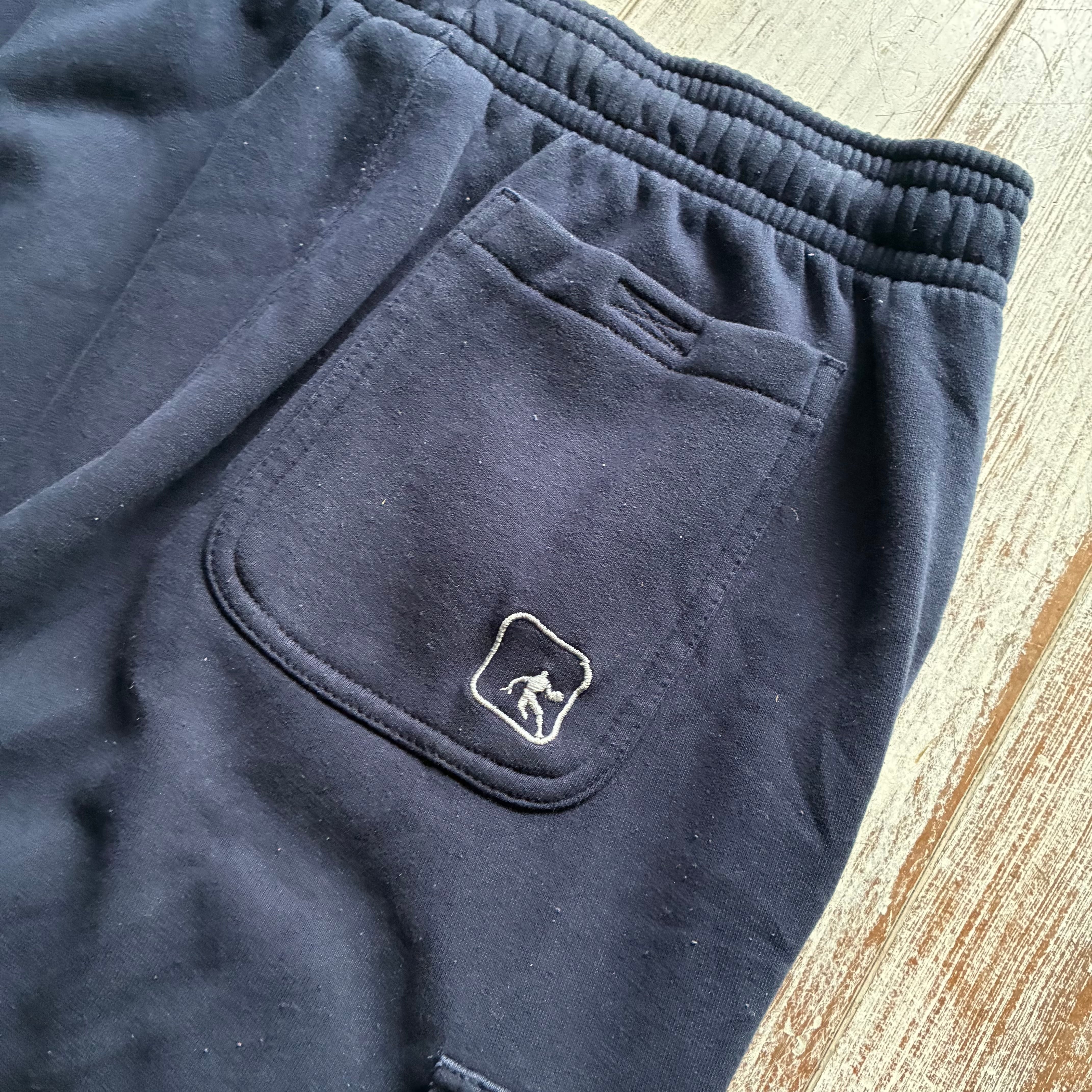 楽に履けて汎用性の高いネイビーカラーのスウェットカーゴパンツ