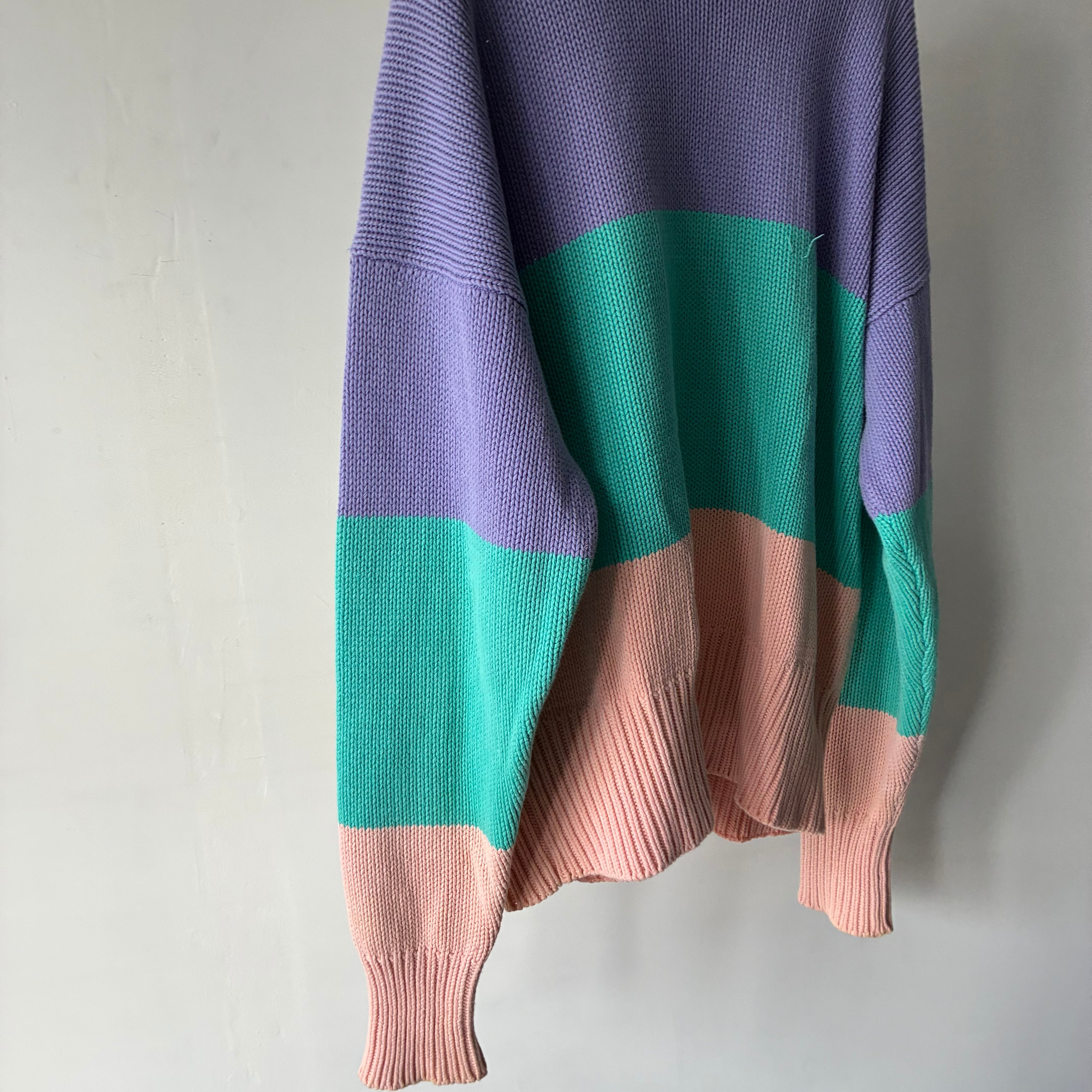 ラベンダー × ミントグリーン × ピンクベージュの3トーン切り替えデザインが特徴的で、クラシックな雰囲気の中に遊び心を感じるアイテム