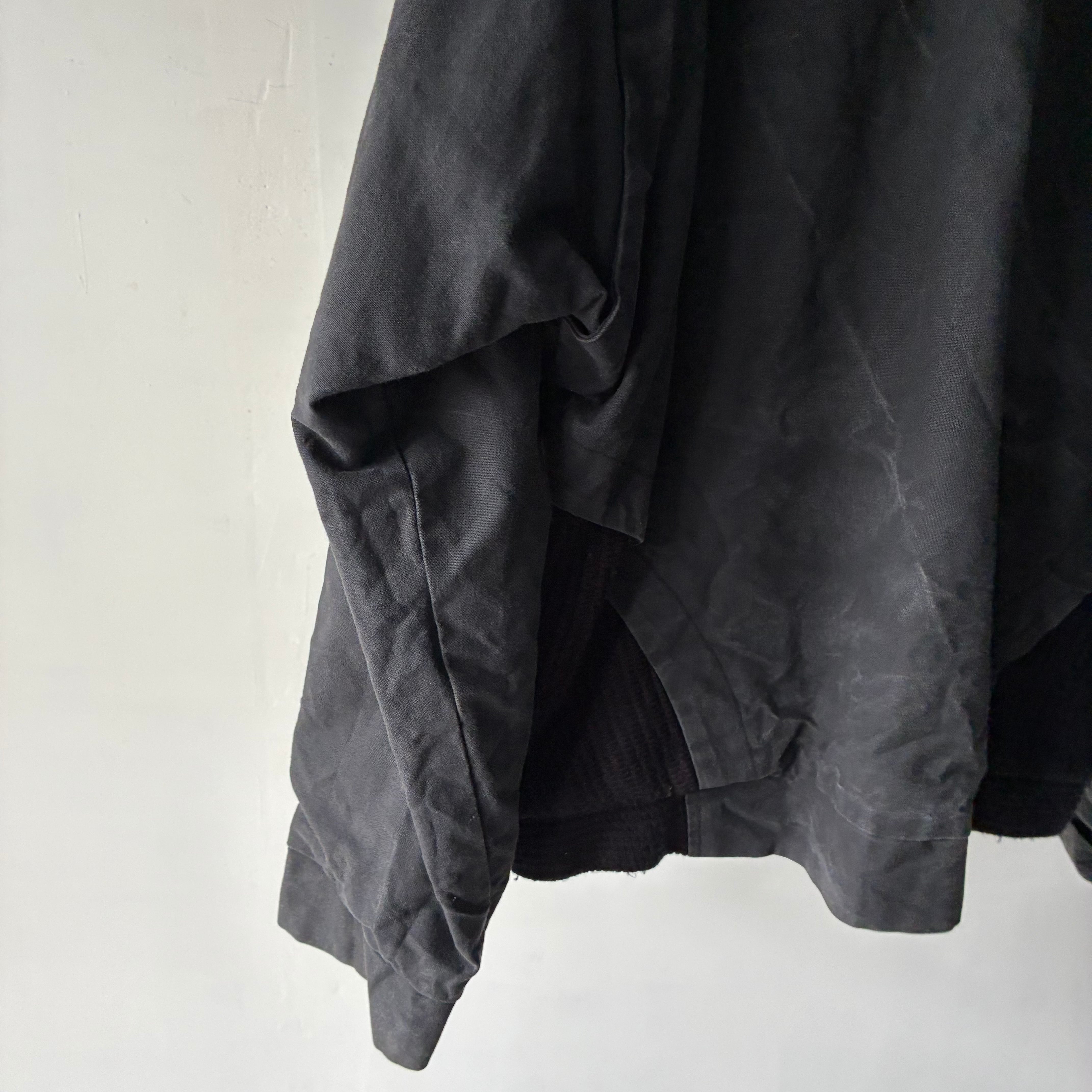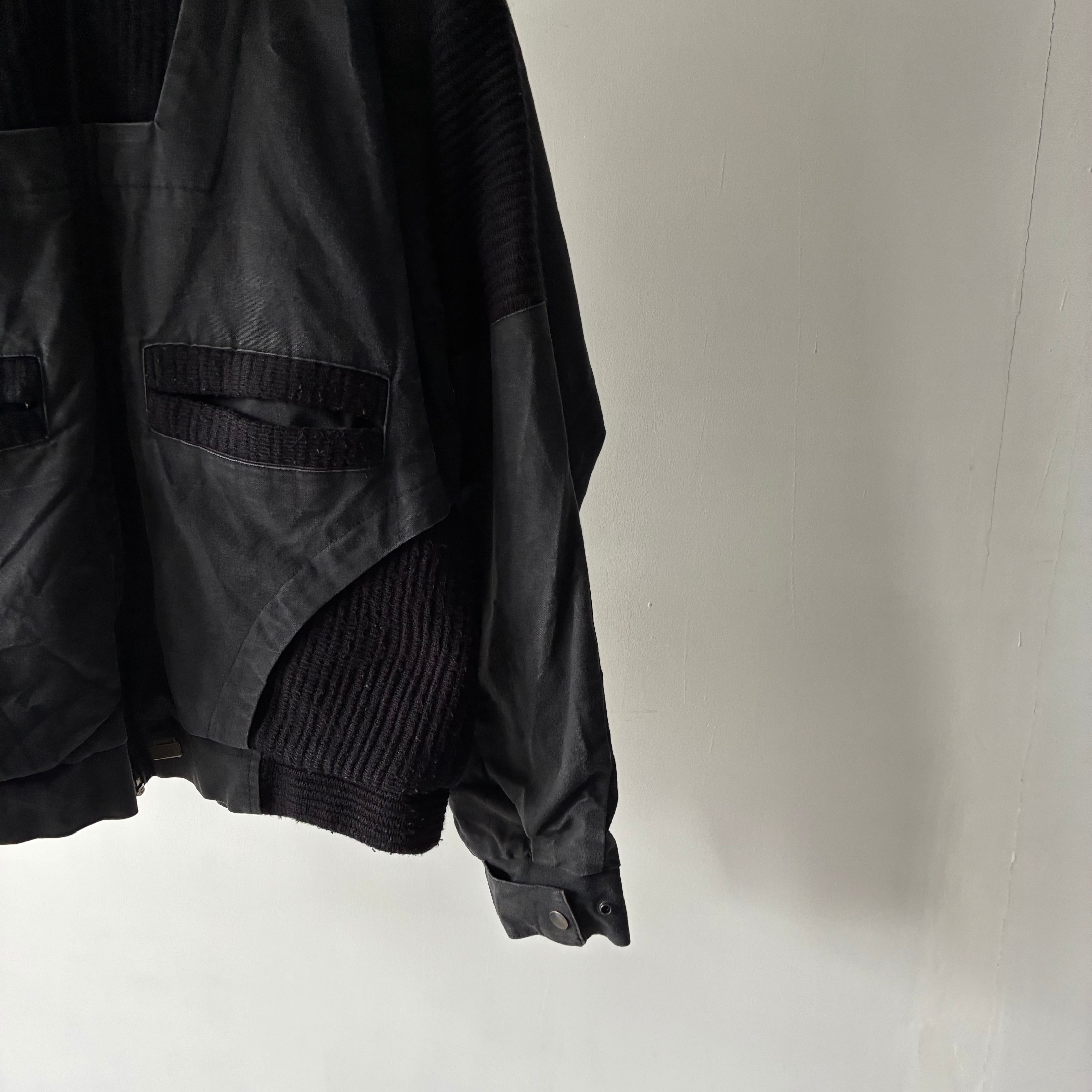 ボディにはマットな質感のコットン生地を使用し、袖・ポケットまわり・サイドにはリブニット素材を組み合わせた異素材切り替え仕様