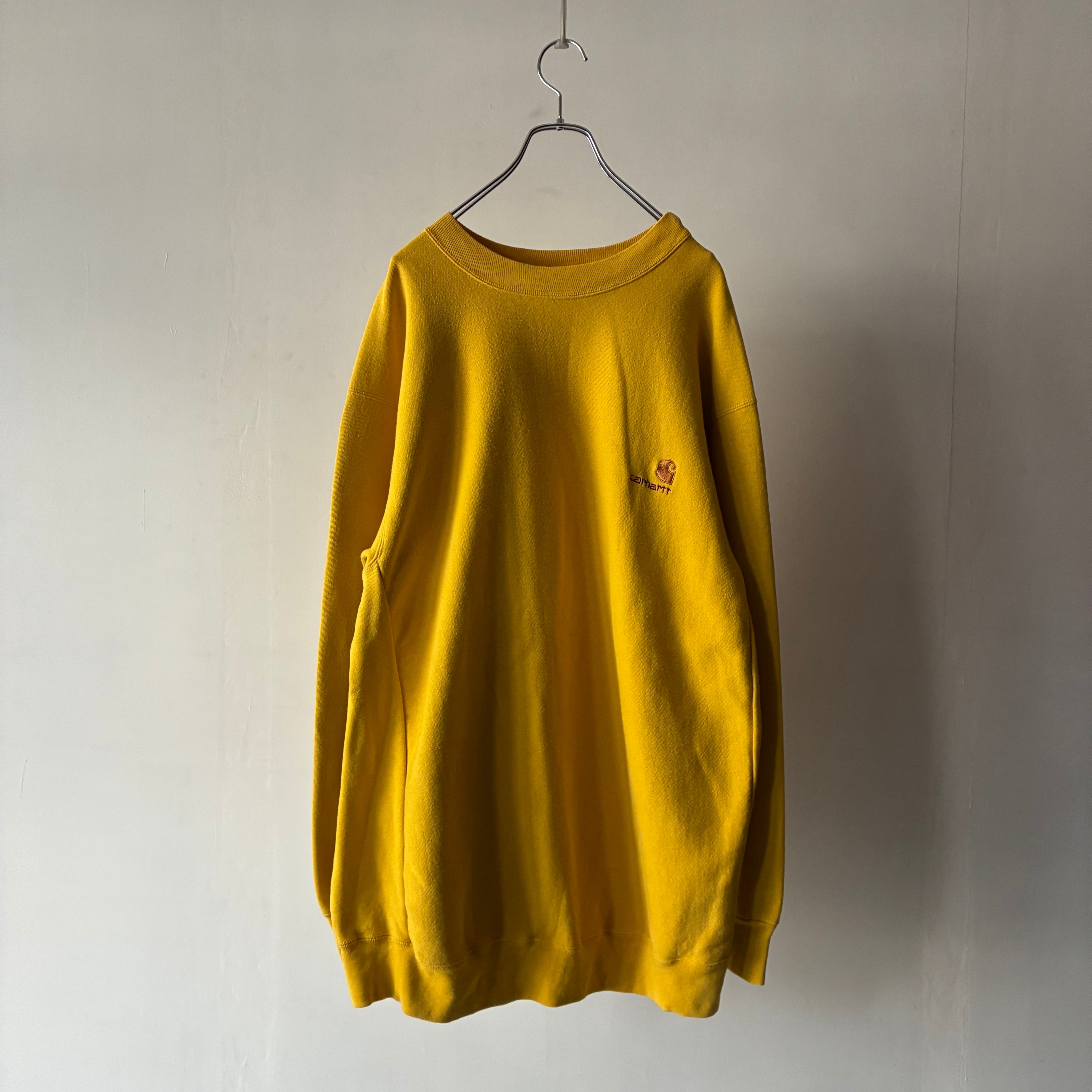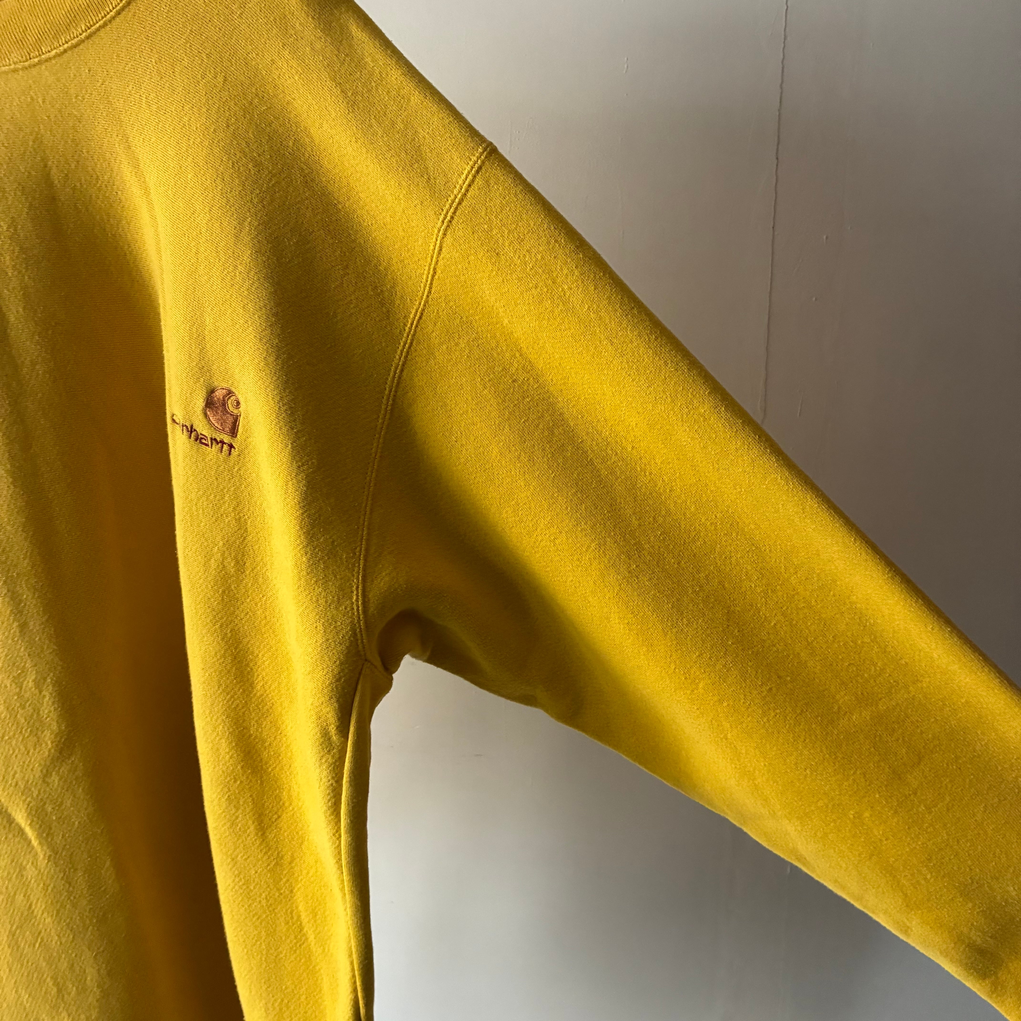 発色の良いハツラツとした単色イエローボディのカーハートロゴスウェット