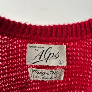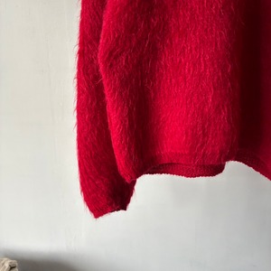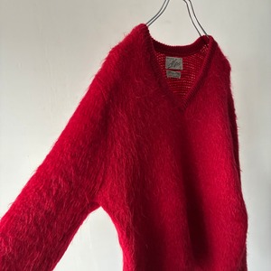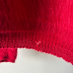 ふわふわとした毛足の長いシャギーウール素材を使用した存在感抜群の真っ赤なVネックニット