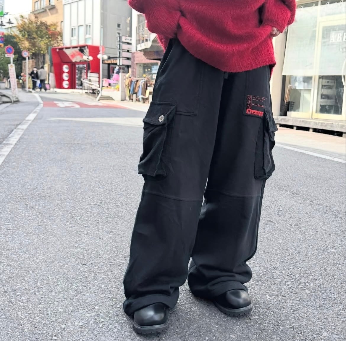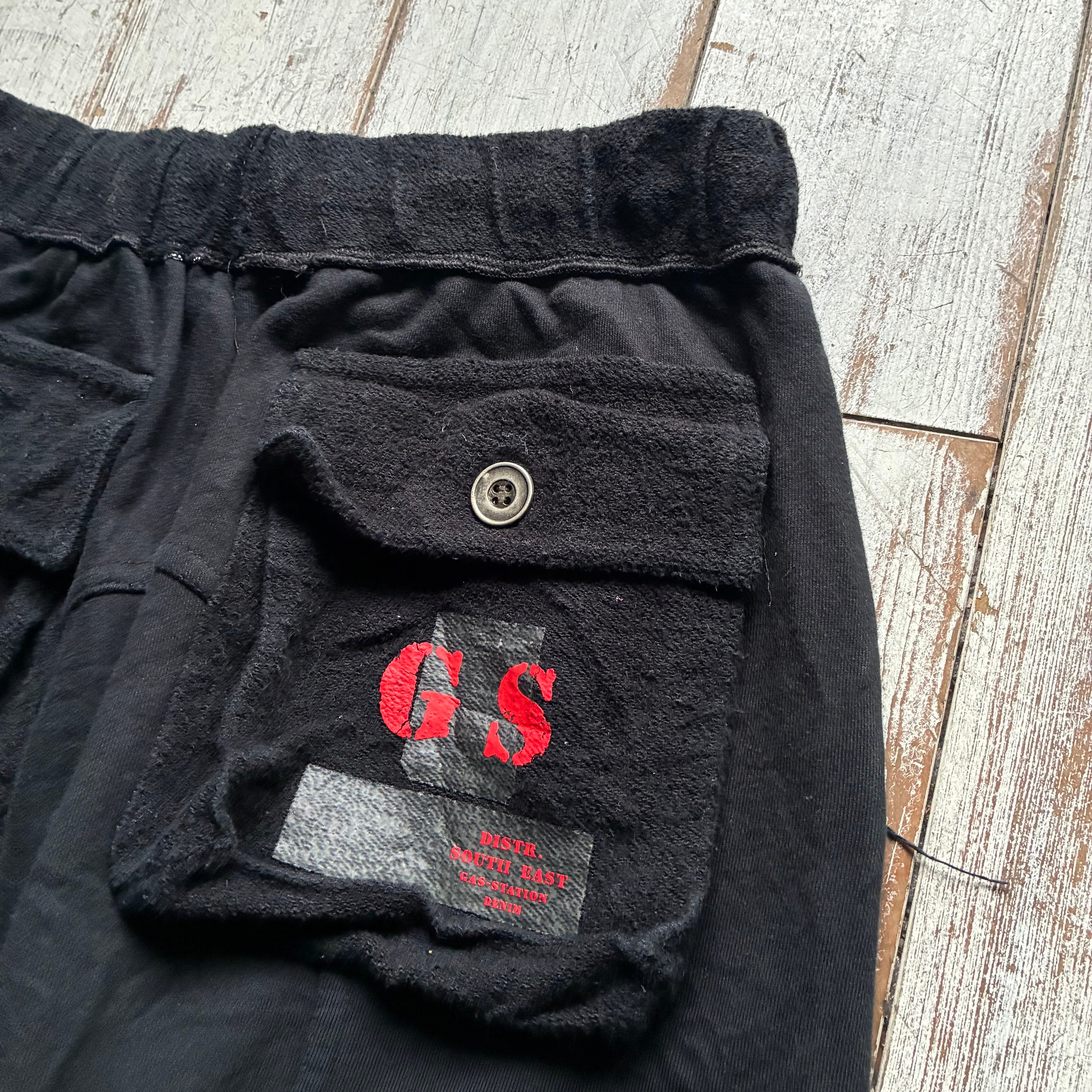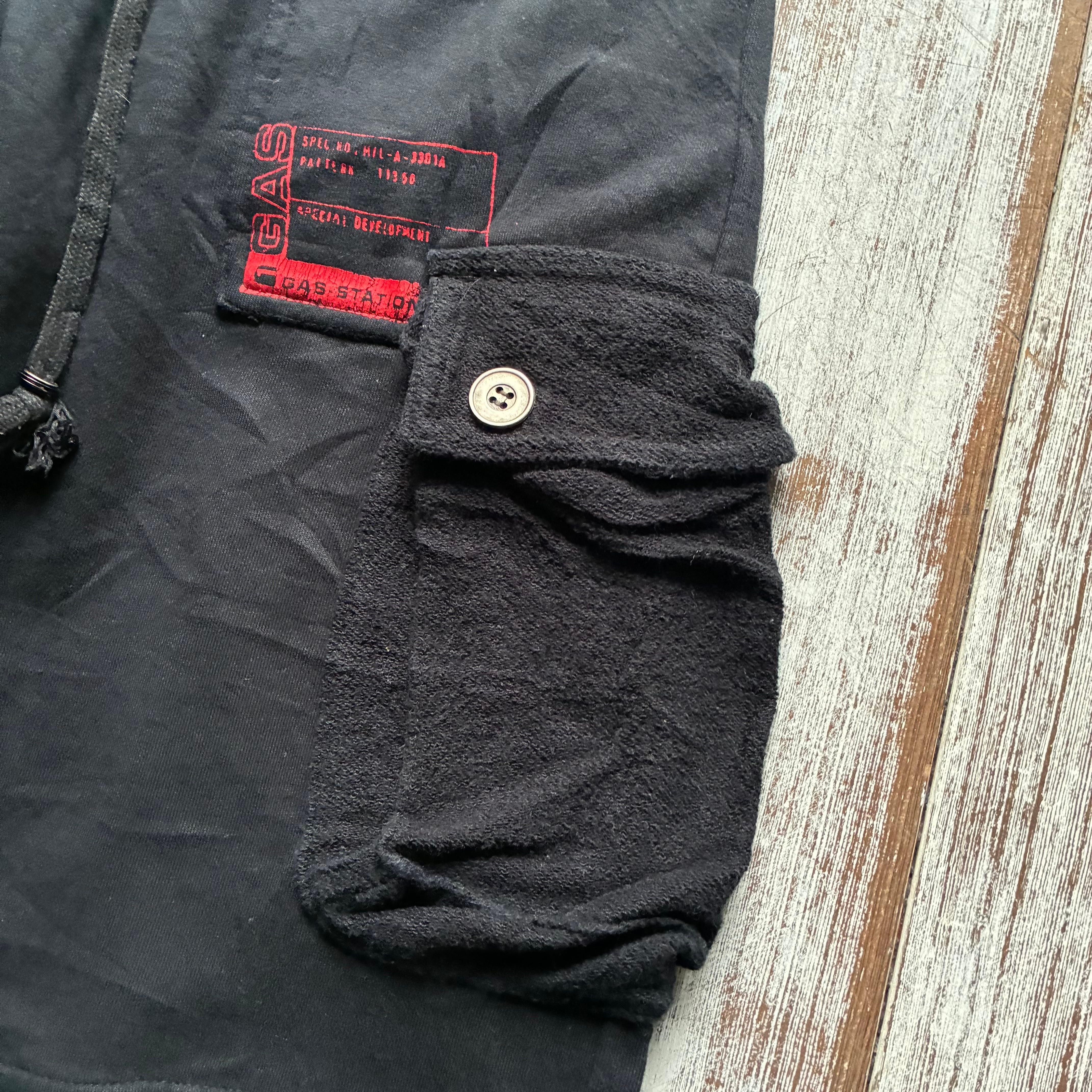右ポケットには「GAS STATION」ロゴの赤いプリントパッチが入り、存在感あるアクセントに