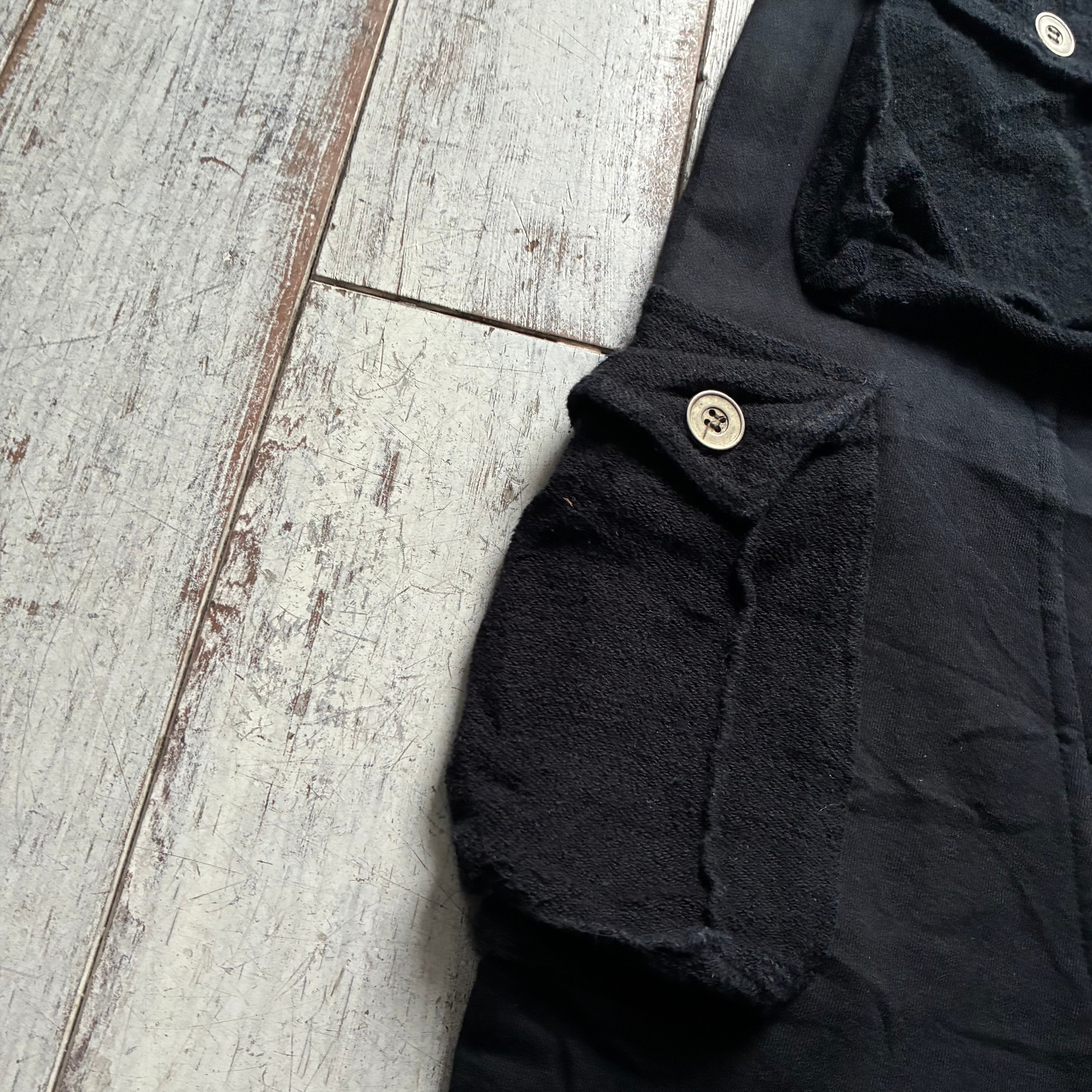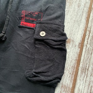 ボディはしっかりとしたコットン地を使用し、カーゴポケット部分にはタオル地のようなパイル素材を切り替え、素材感のコントラストが効いたデザイン性の高い仕上がり