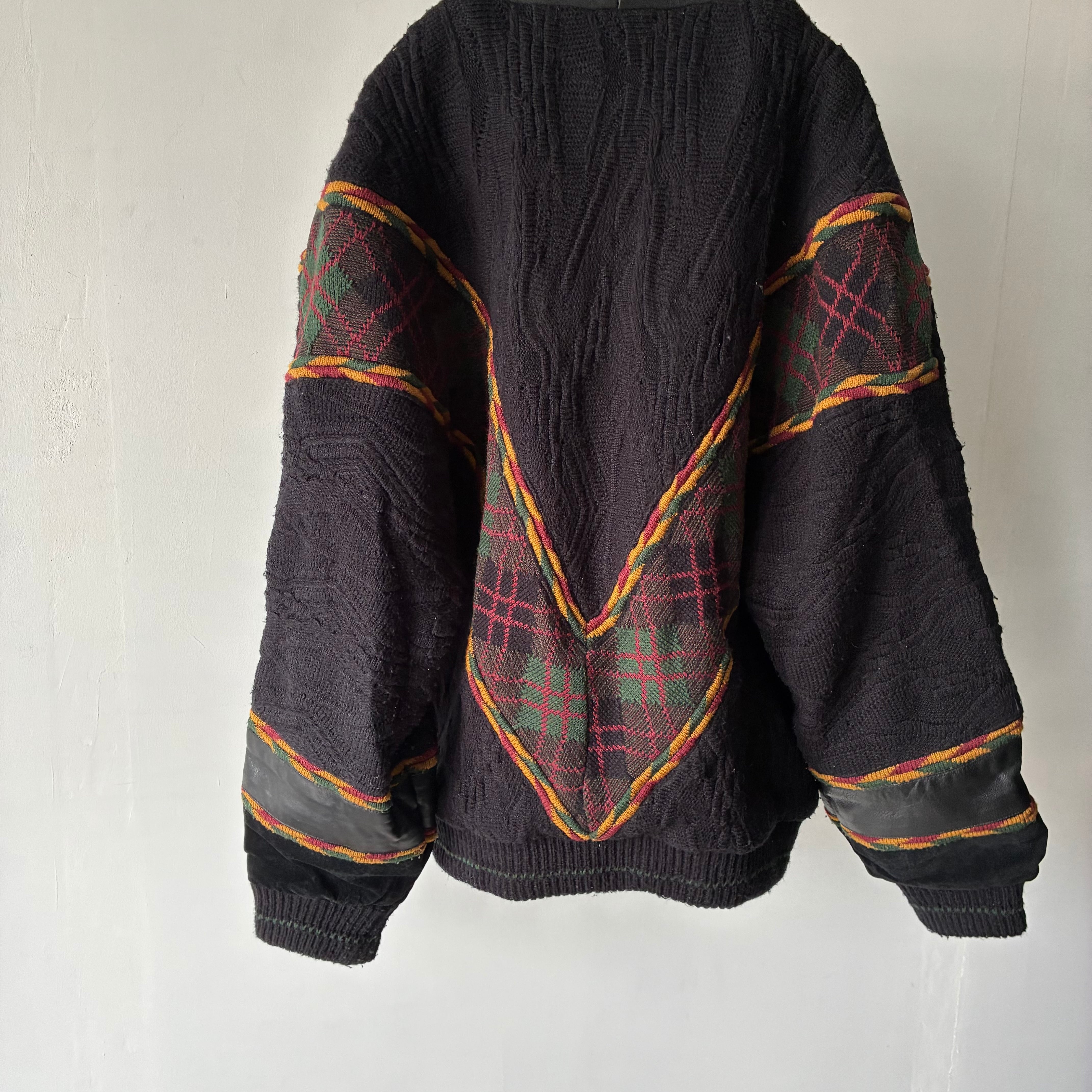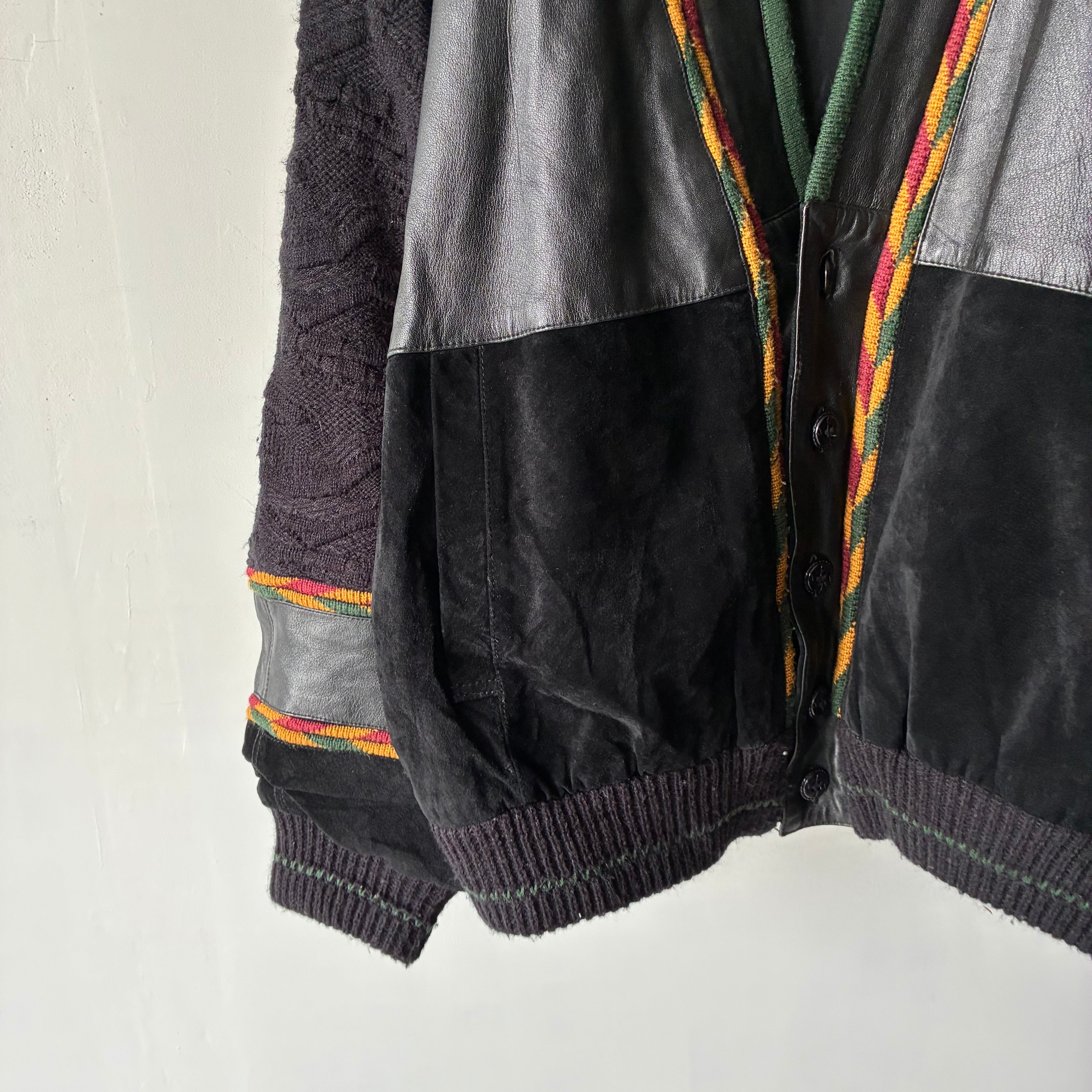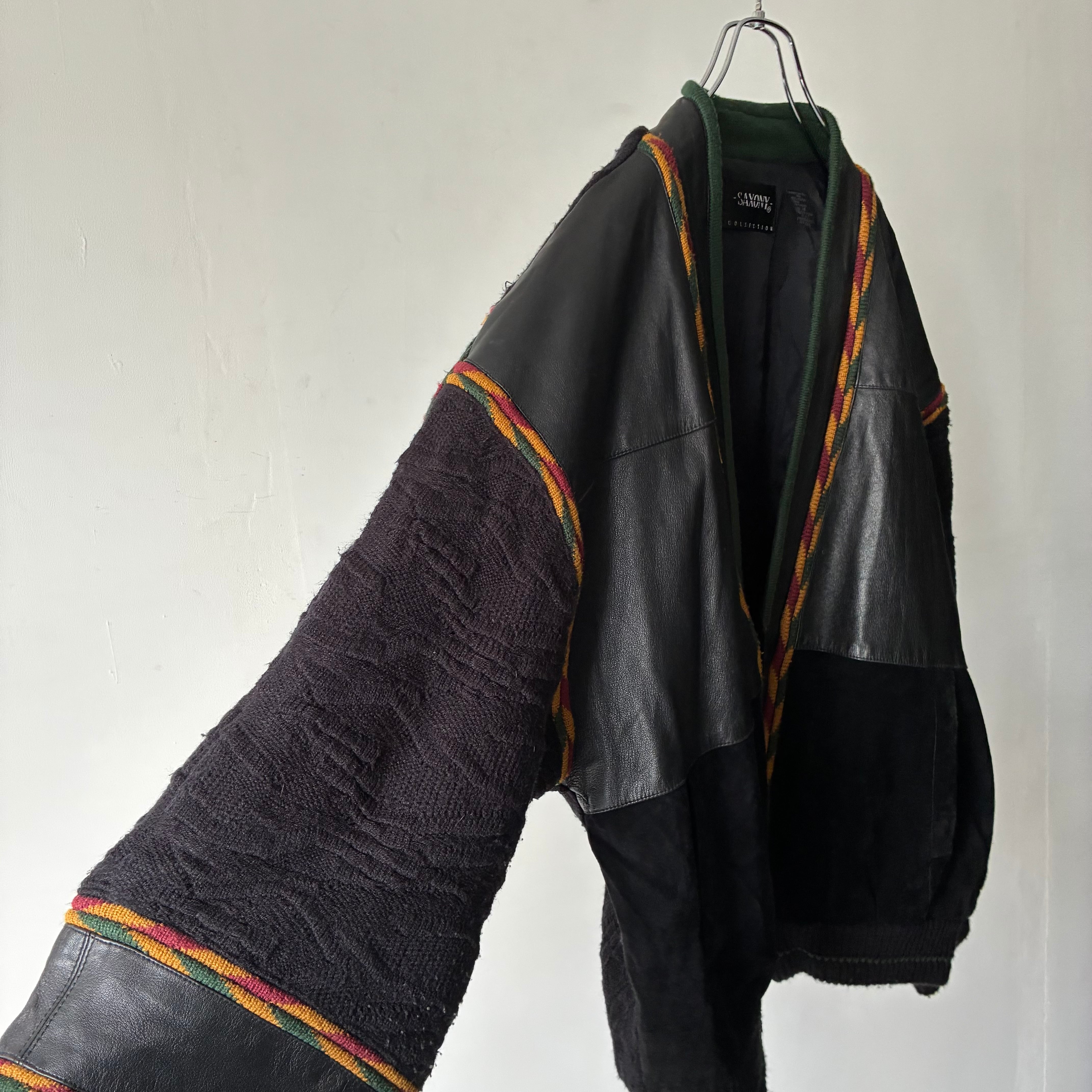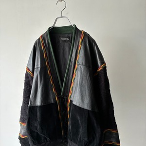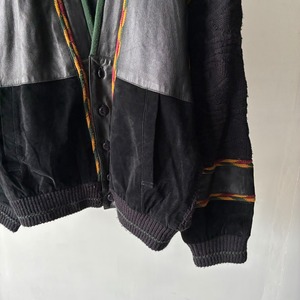フロントには本革レザーを使用し、袖や背面には立体的な編地のニットを切り替えた存在感あるデザイン