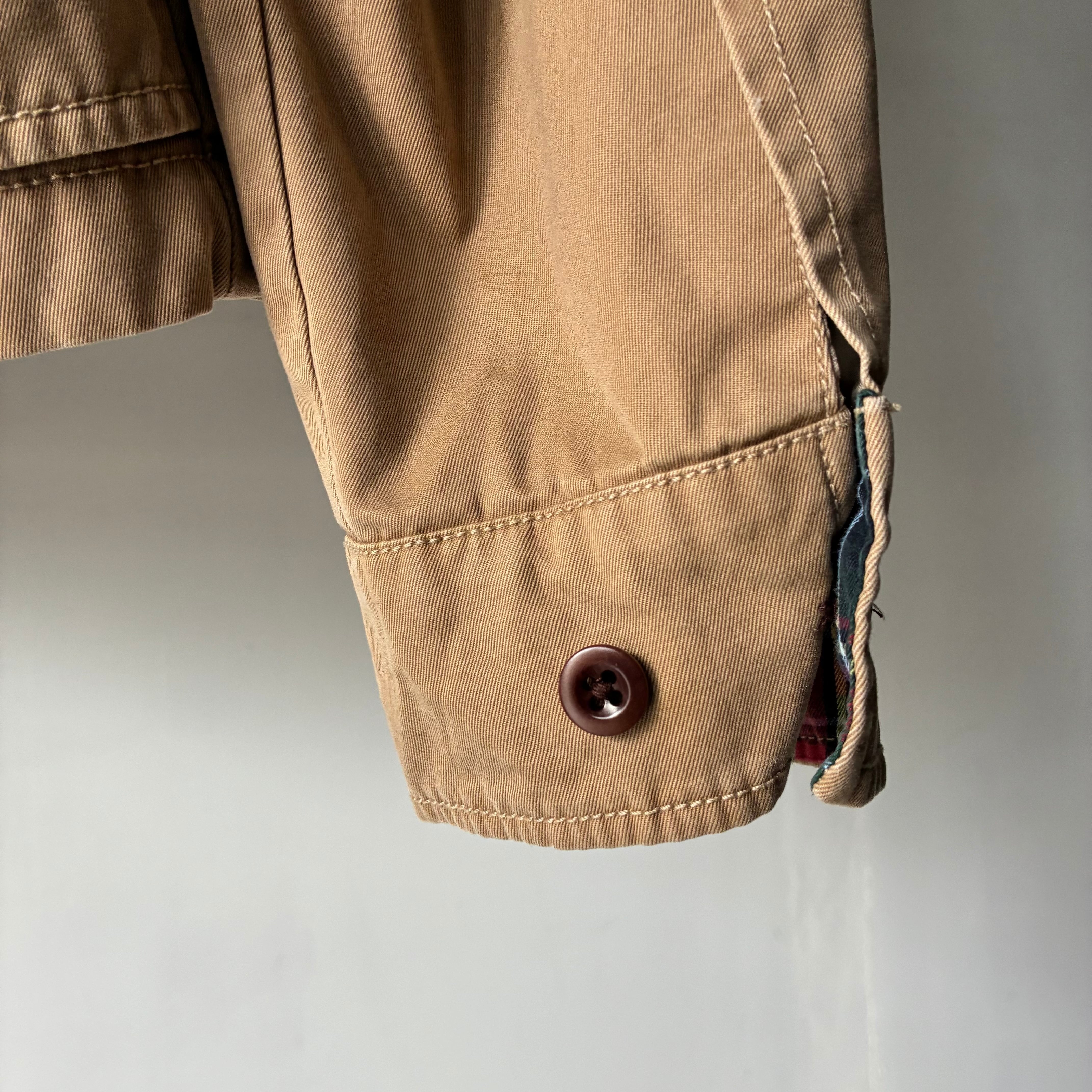 しっかりとしたコットンツイル生地に内側はトラッドなレッド×グリーンのタータンチェックライナーを配した上品な一着