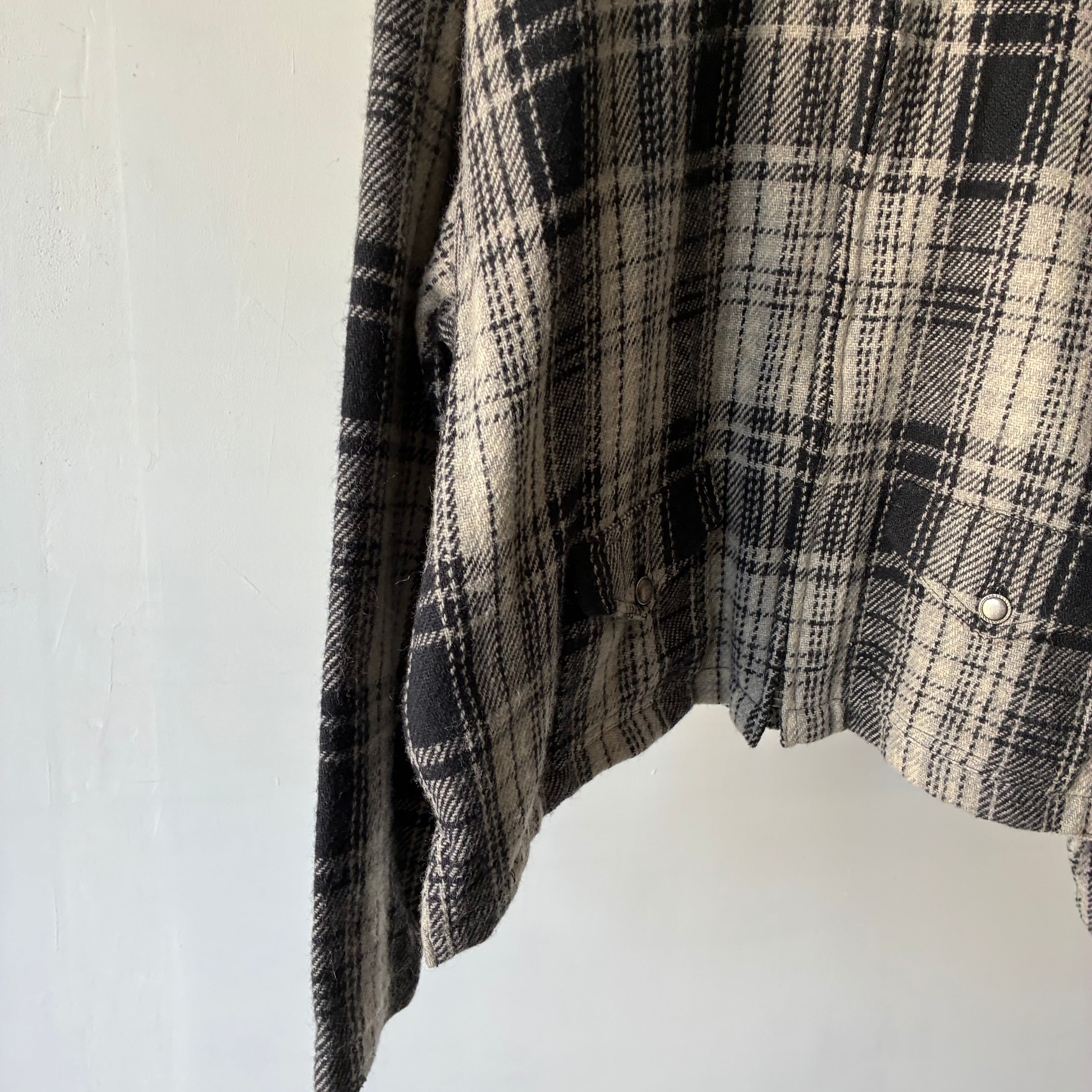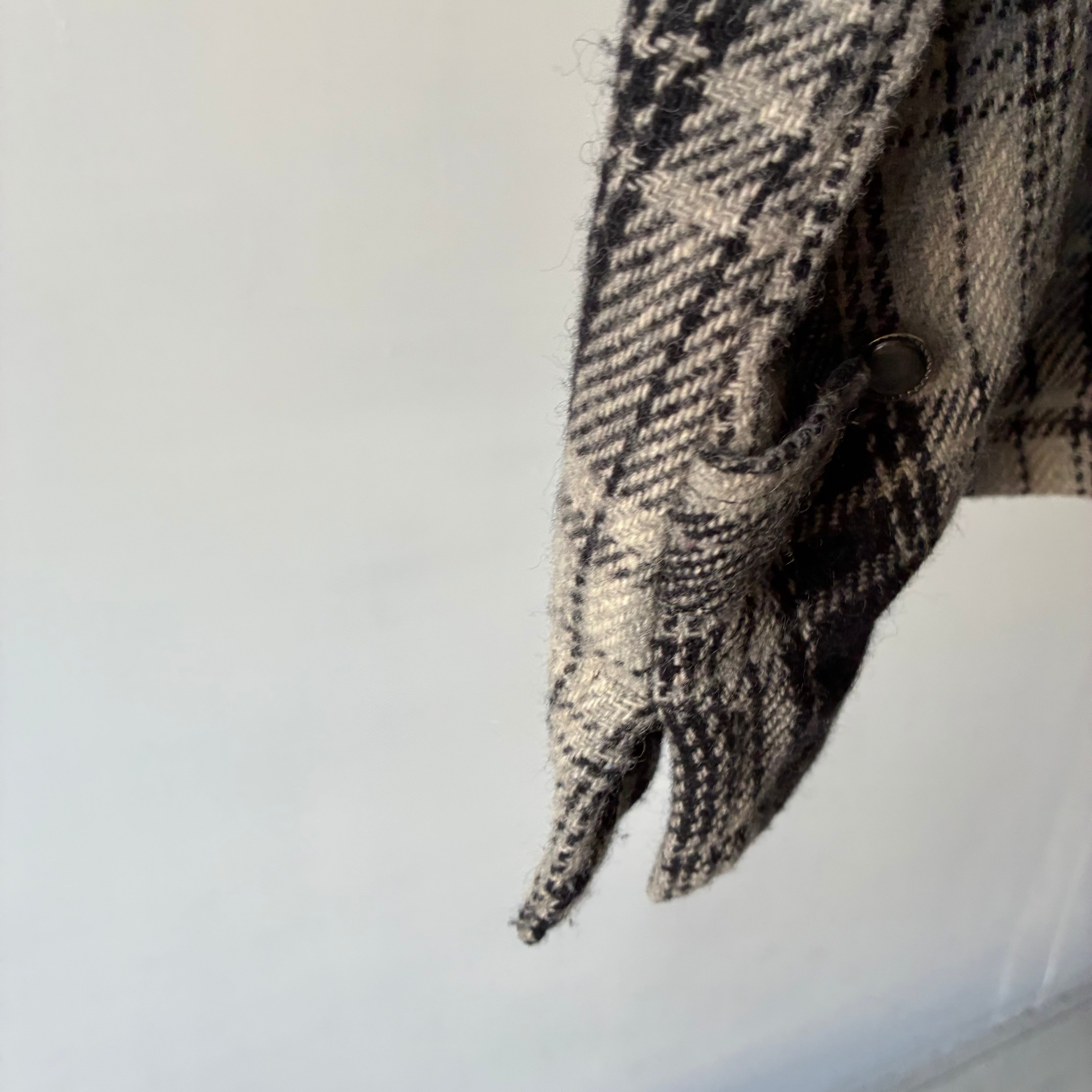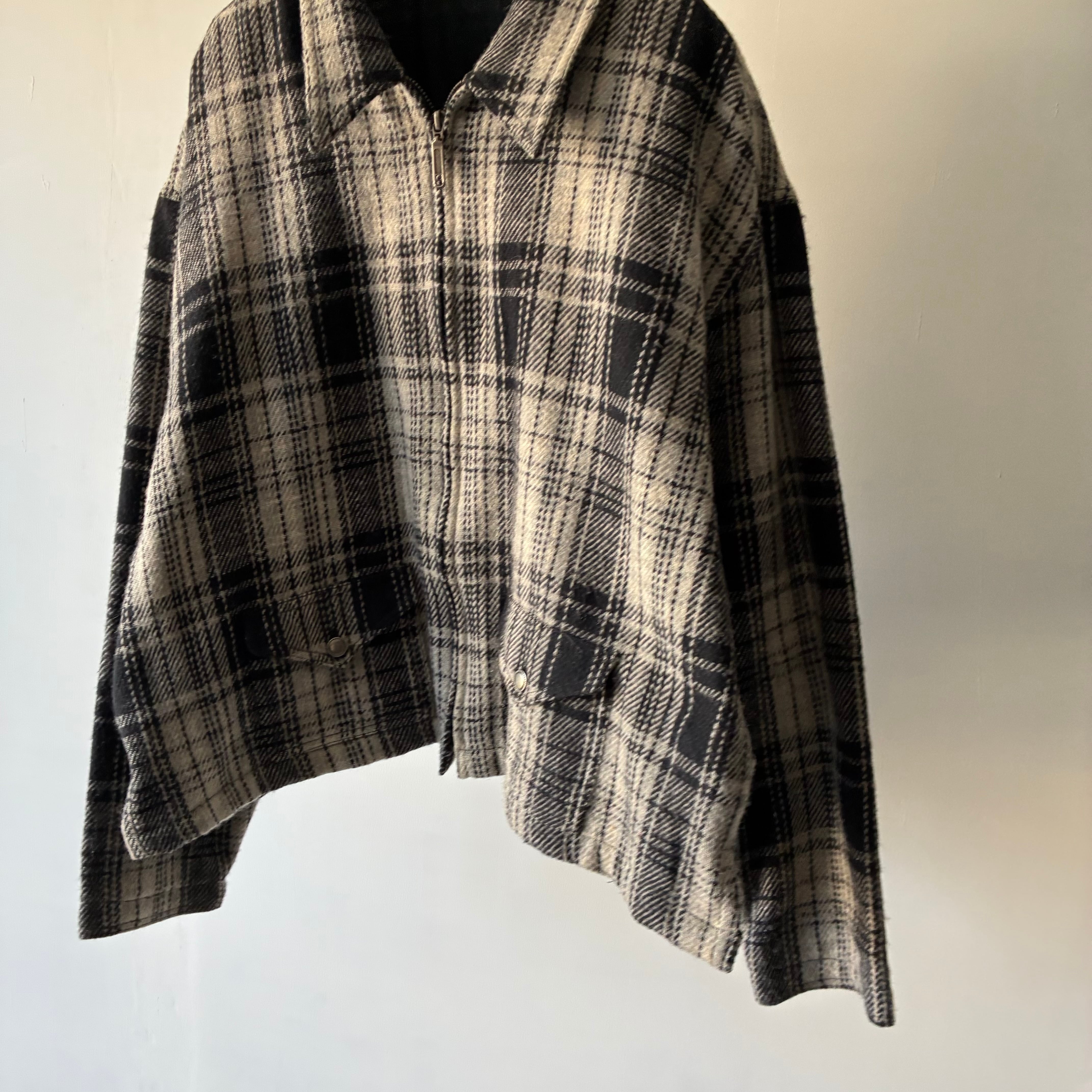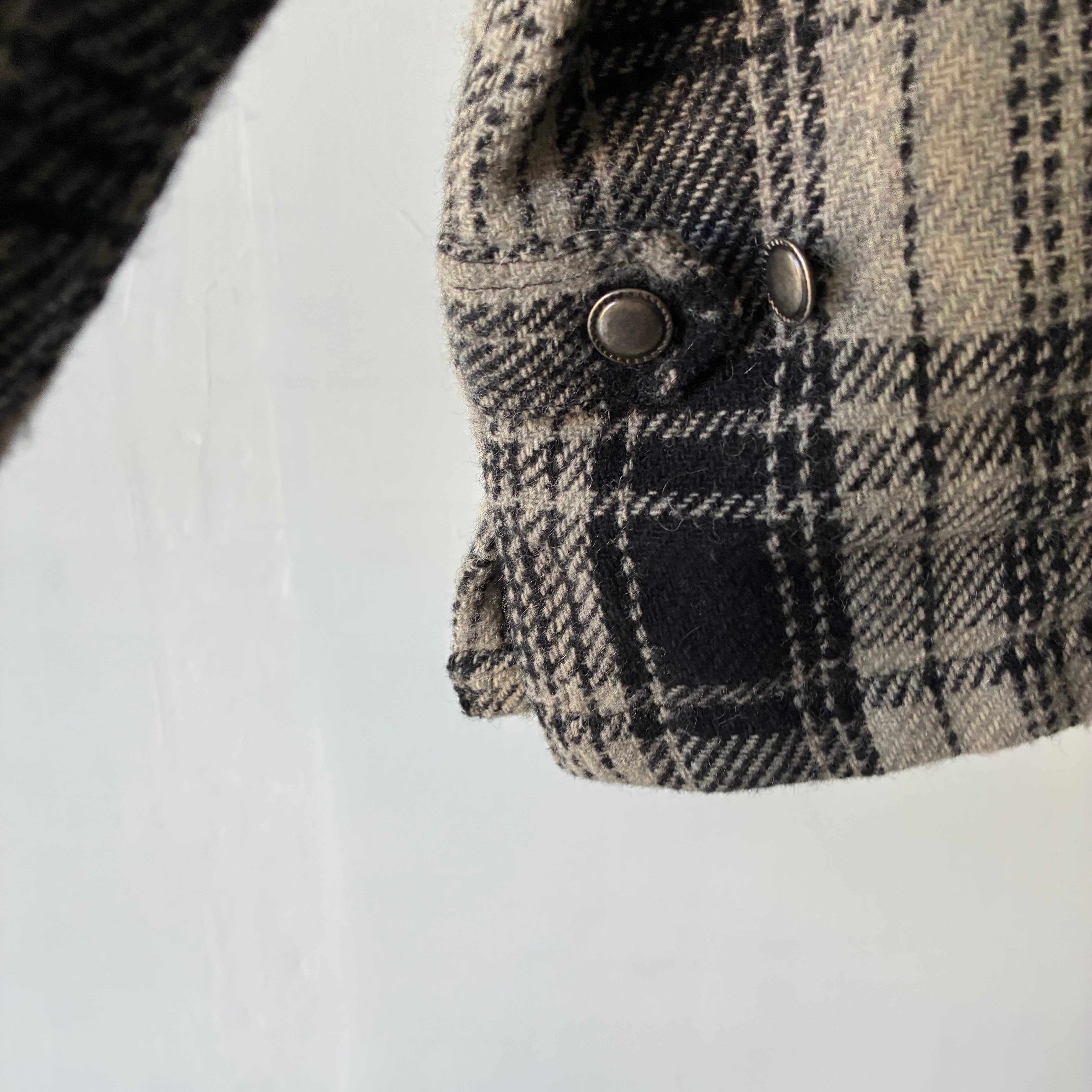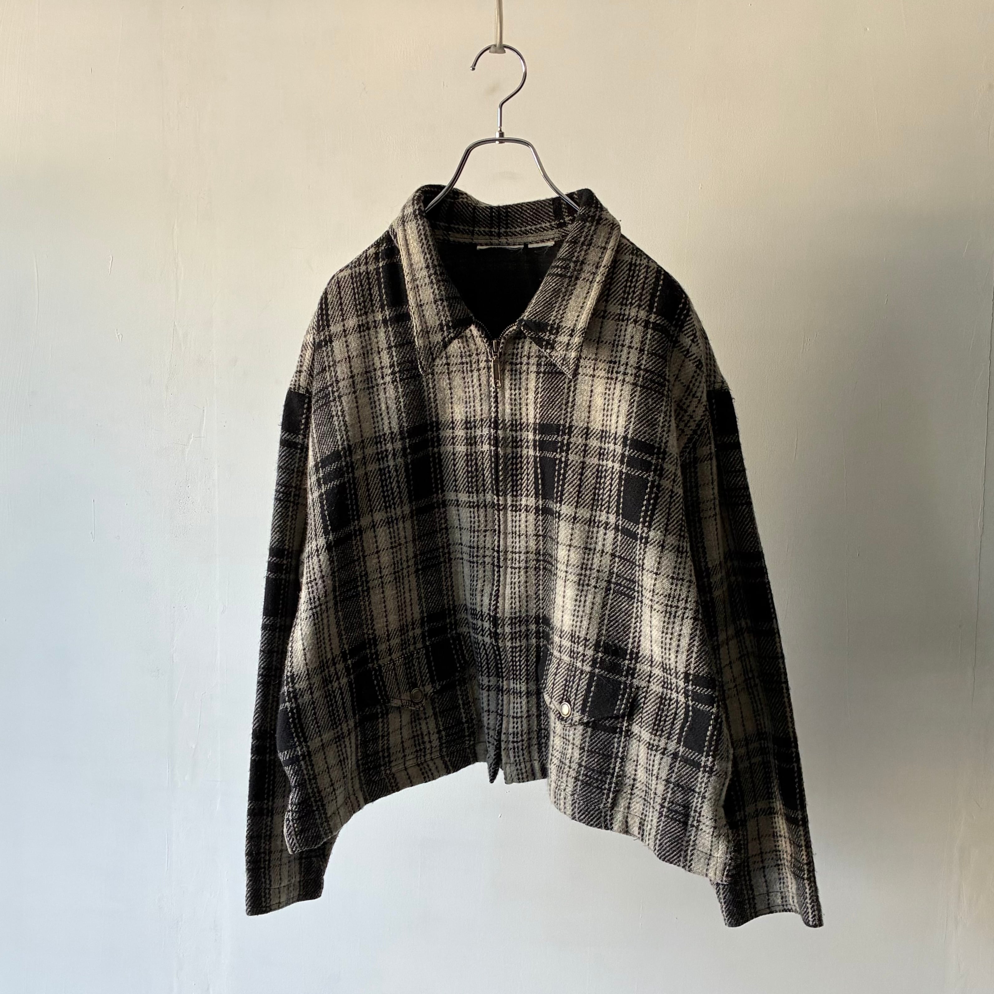 モノトーンカラーのチェック柄が落ち着いた存在感を放つこの短丈ジャケット
