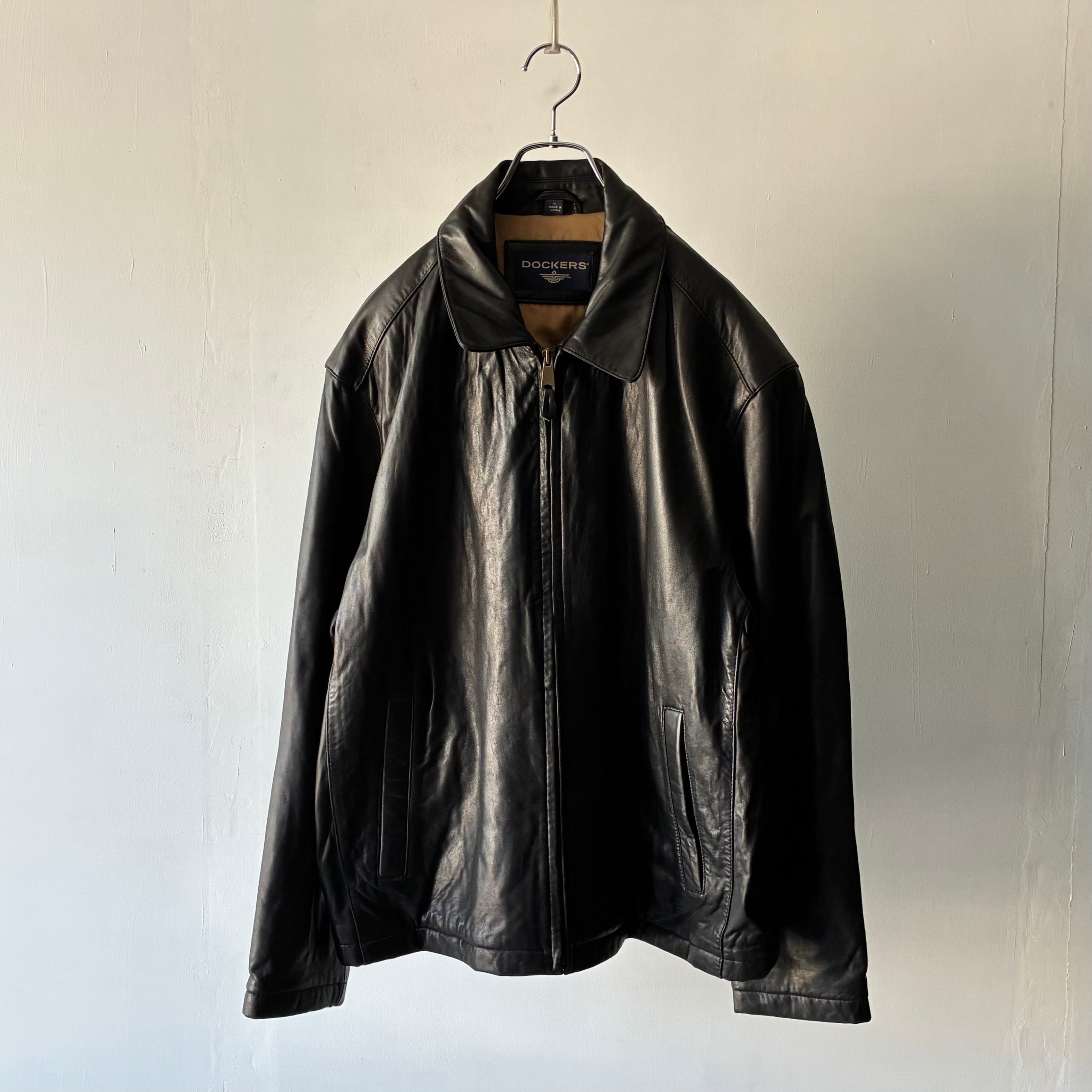 リーバイスが展開する派生ブランドとして知られ上質な素材と確かな作りにこだわった、クラシックかつ洗練されたカジュアルウェア ブランドDOCKERSのブラックレザージャケット