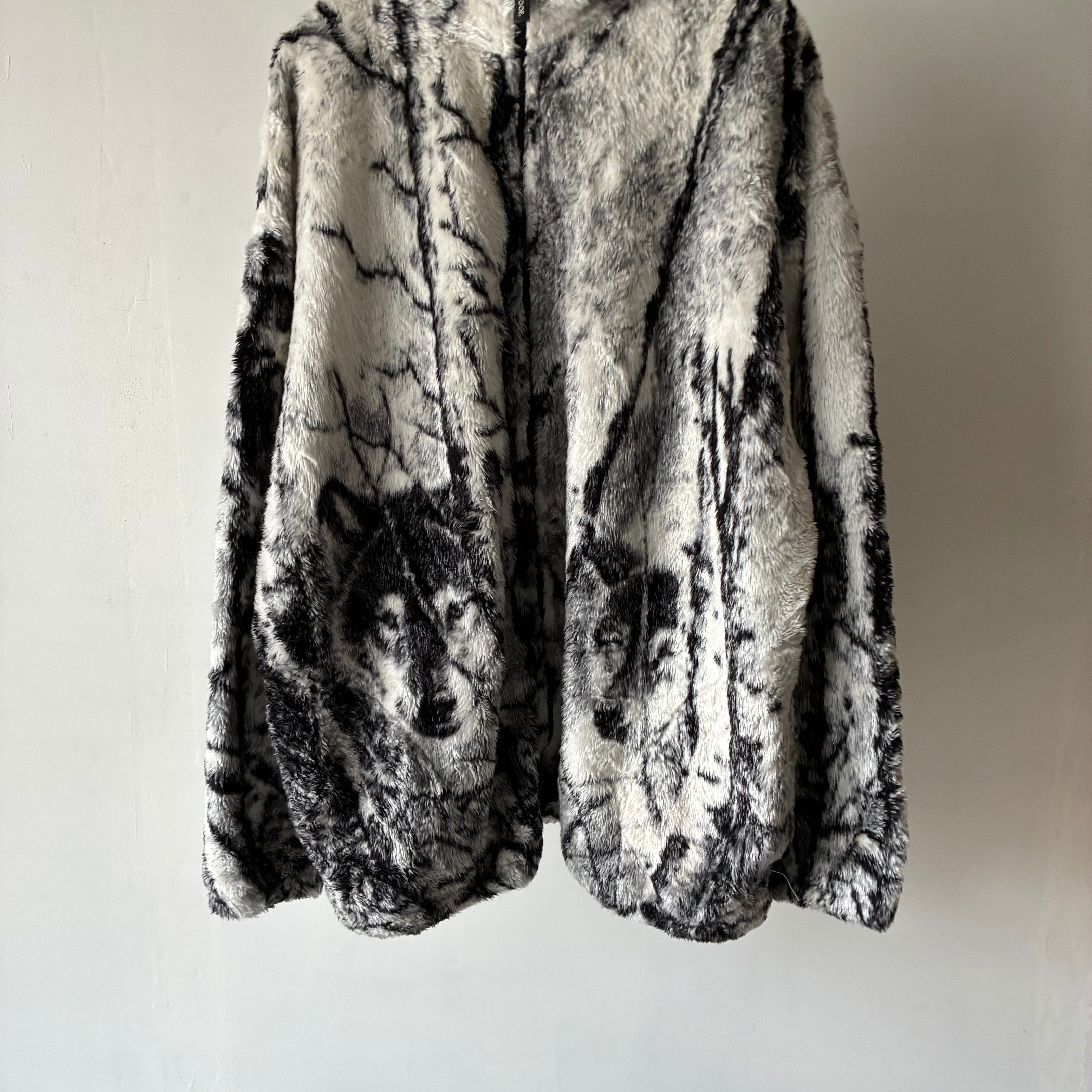 存在感抜群のウルフモチーフが全面に描かれたインパクト大のフリースジャケット