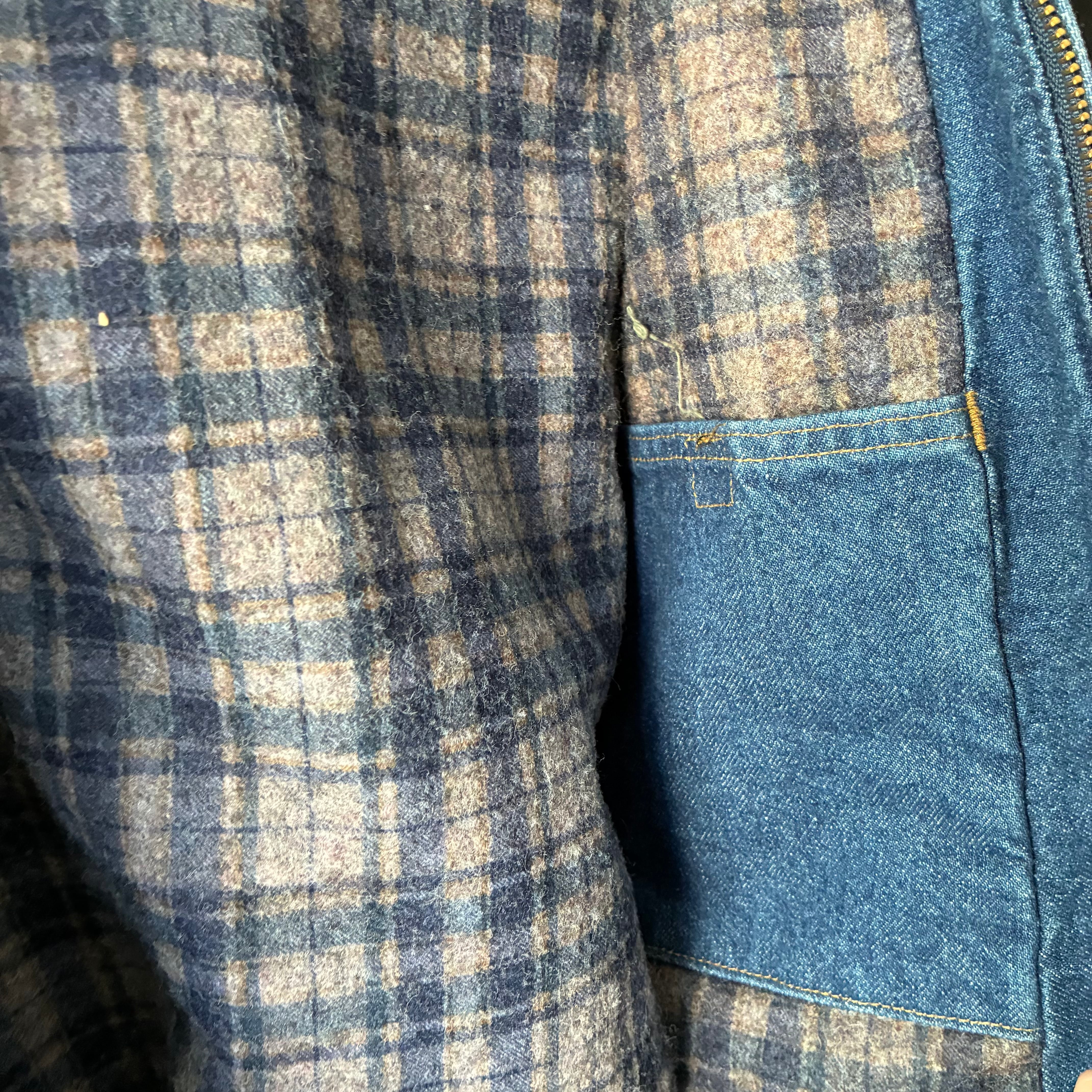 アクティブジャケットの定番J138をベースにしたモデルで、無骨なデニムシェルと柔らかなチェックフランネルの裏地が組み合わされた人気の高い仕様