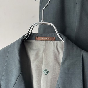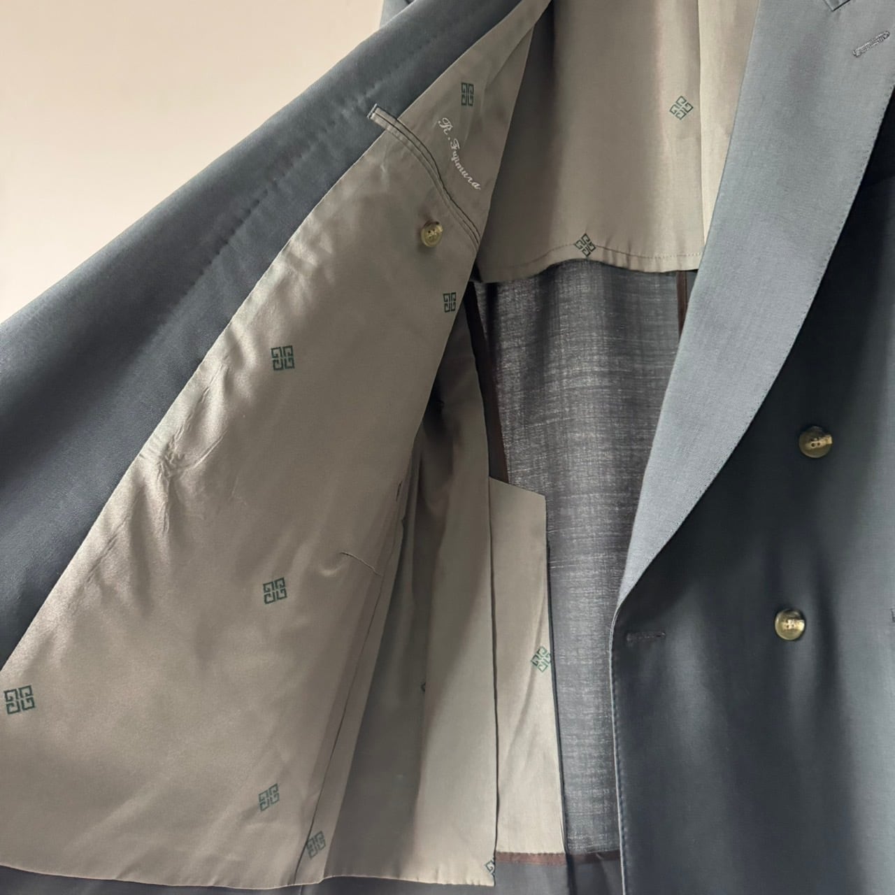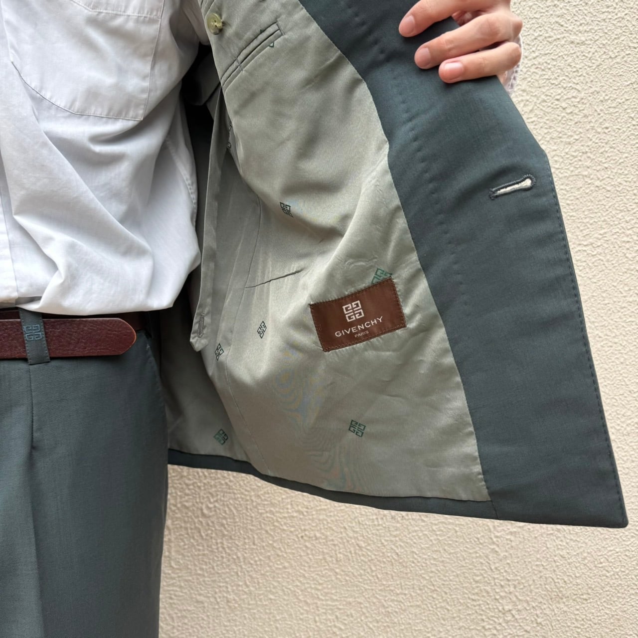 ジバンシィらしいエレガンスと重厚感を備えた、深みのあるディープティールカラーが魅力のダブルボタンセットアップ