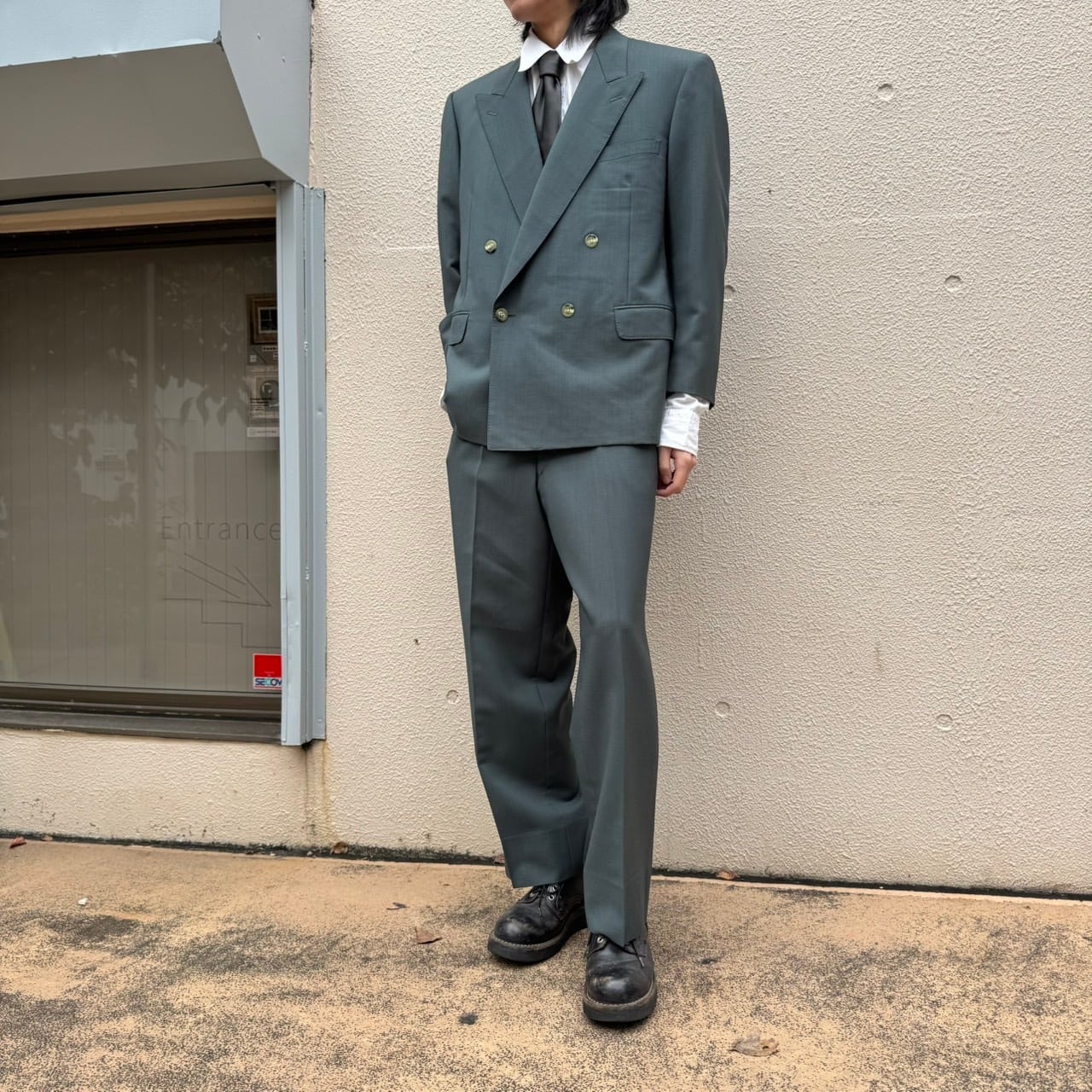ジャケットはシャープなピークドラペルを採用し、胸元に立体的なラインを作るクラシカルなダブル仕様