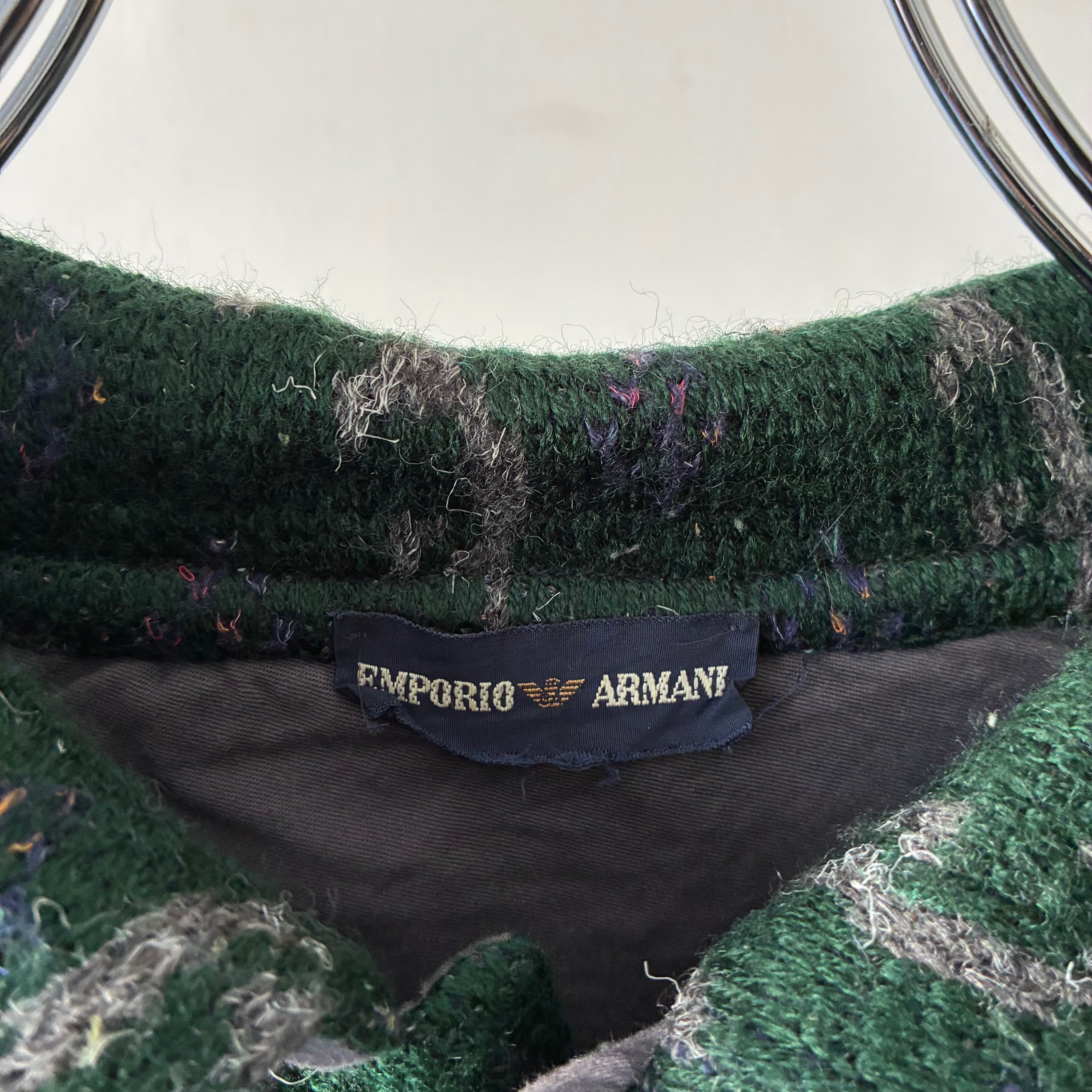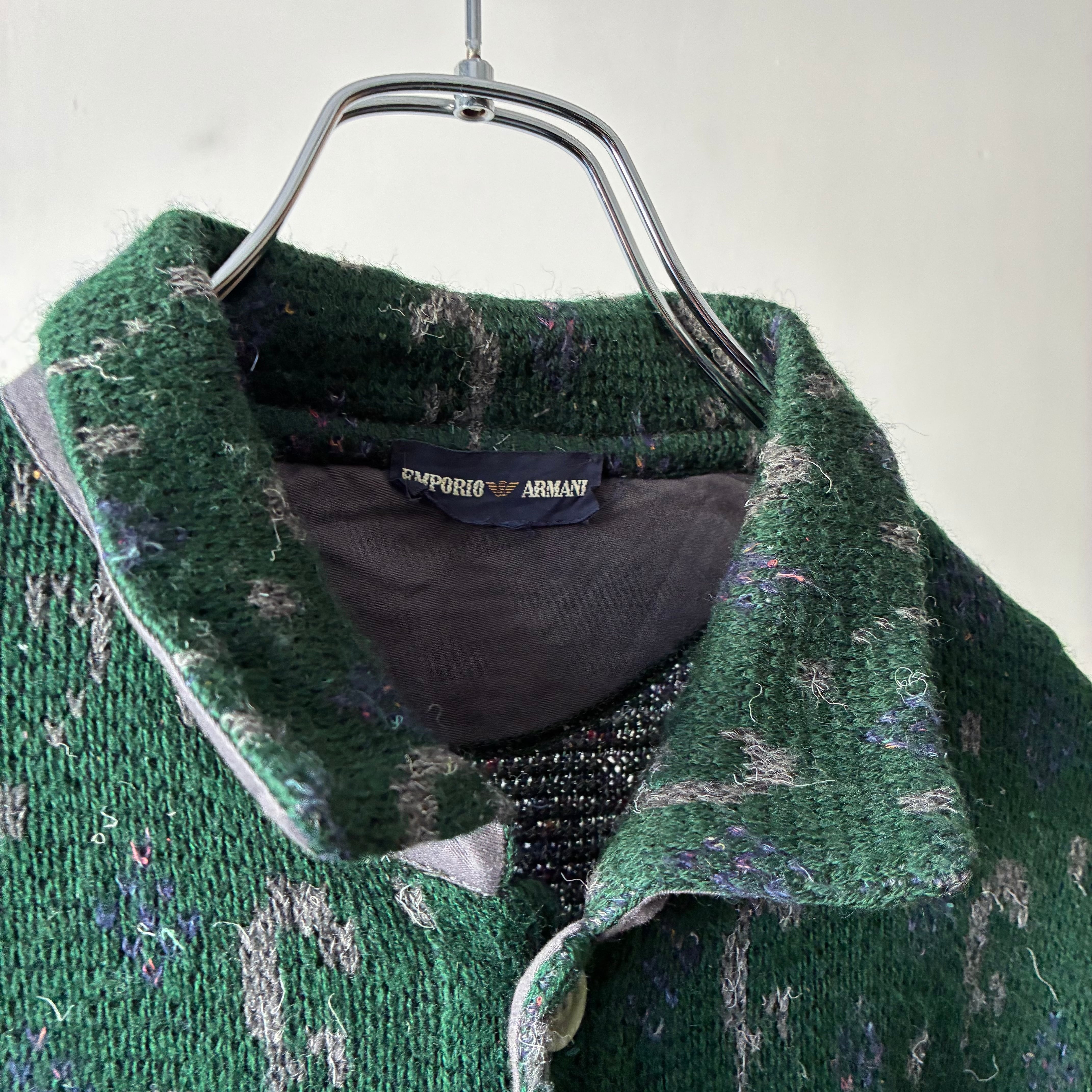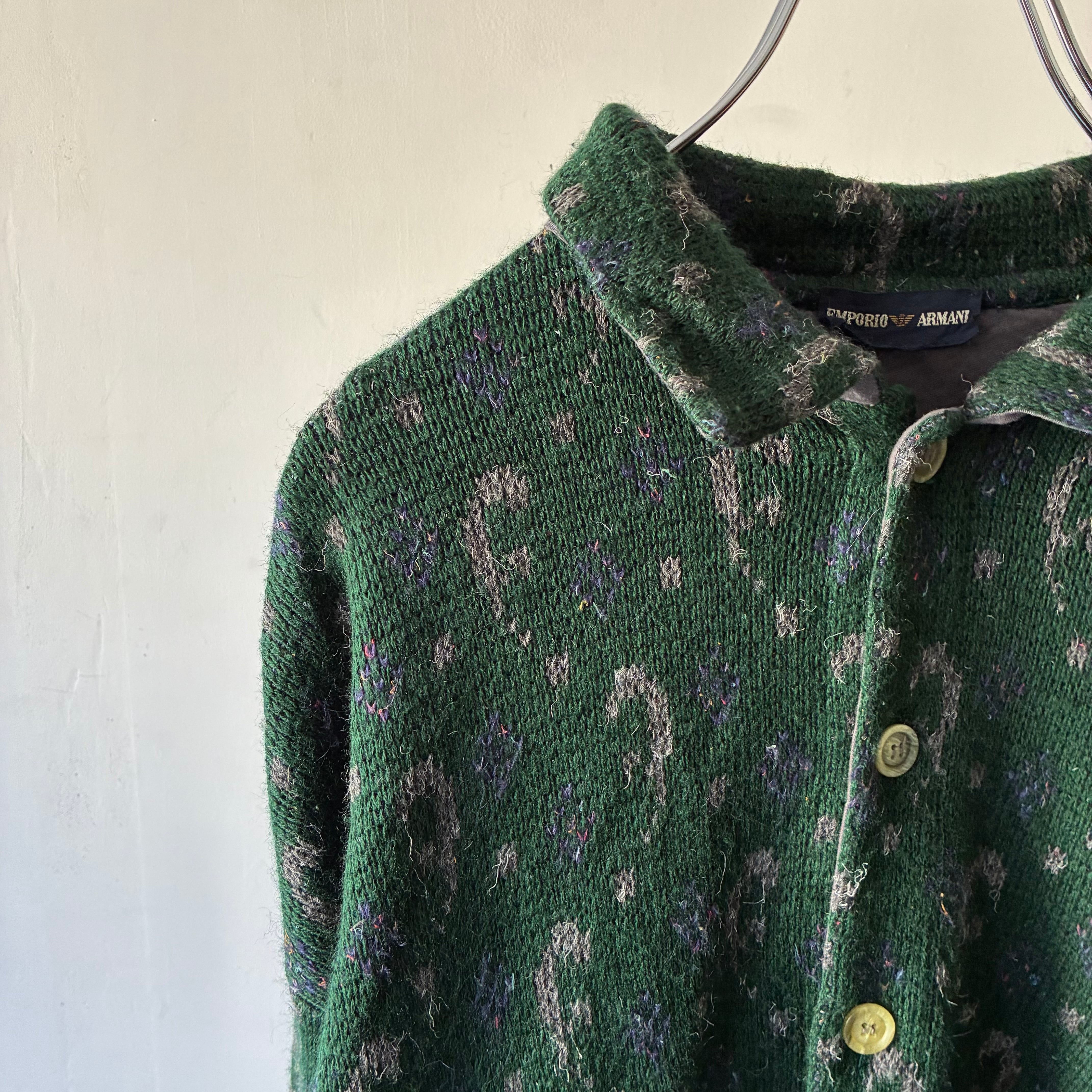 肉厚でふっくらとしたニット地は、アルマーニらしい上品な雰囲気と古着特有の味わいを兼ね備え、秋冬シーズンの主役にぴったり