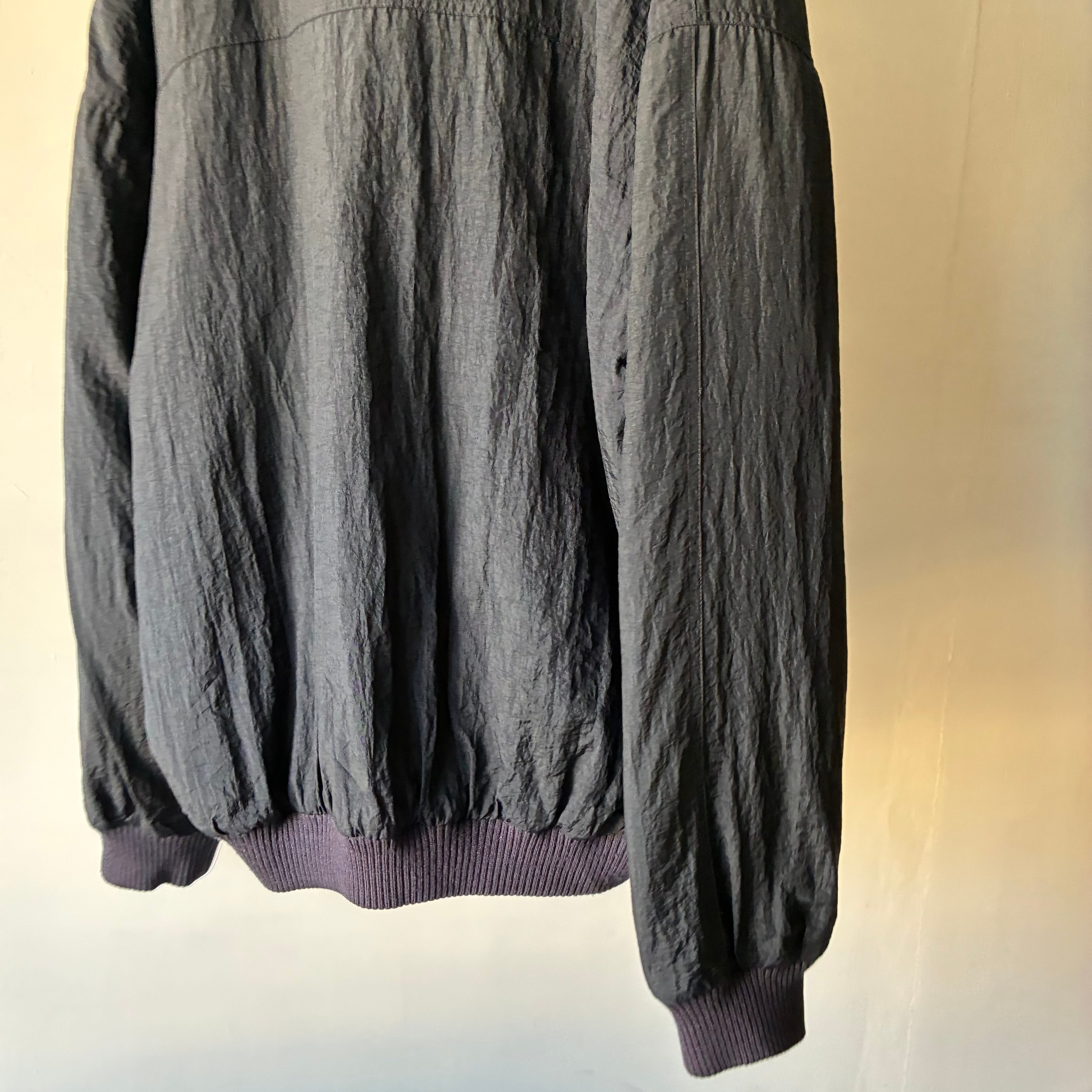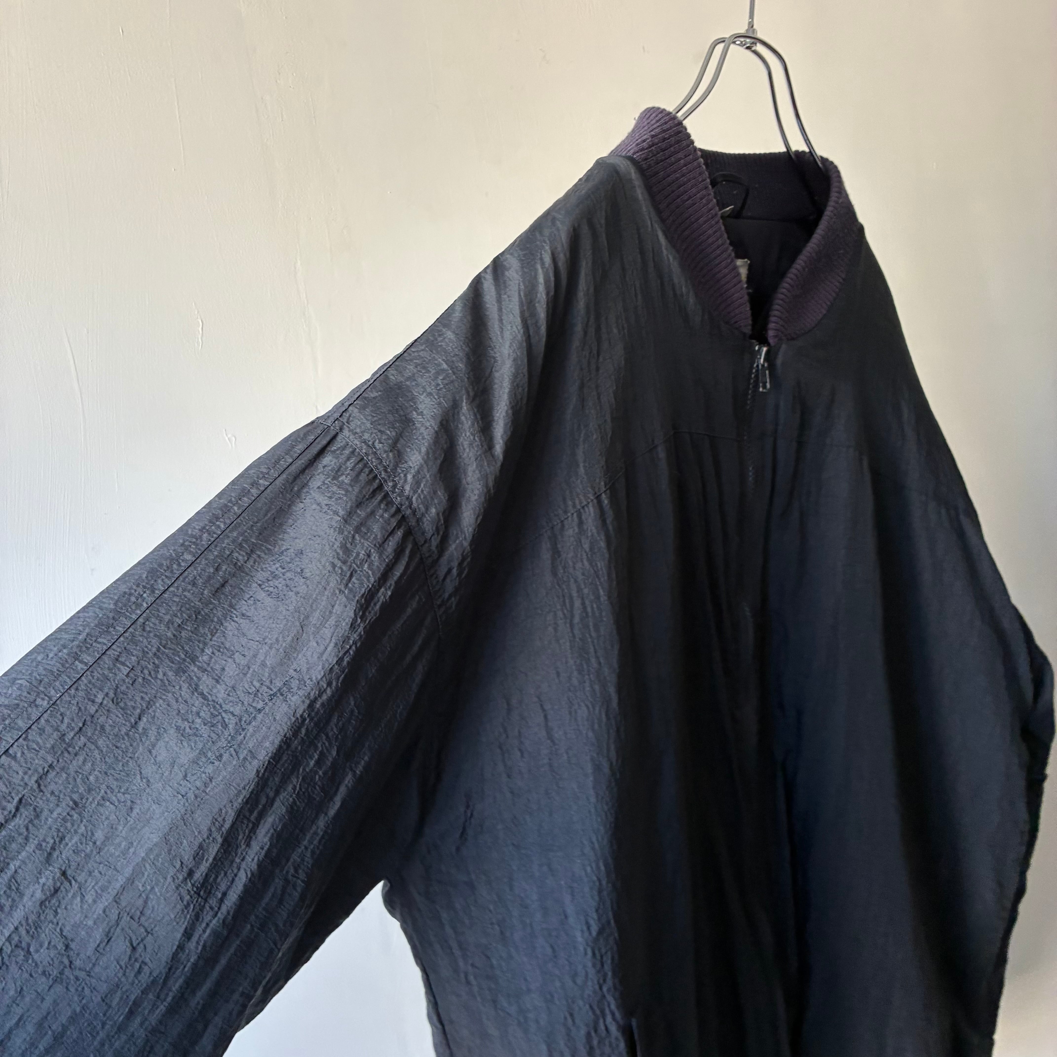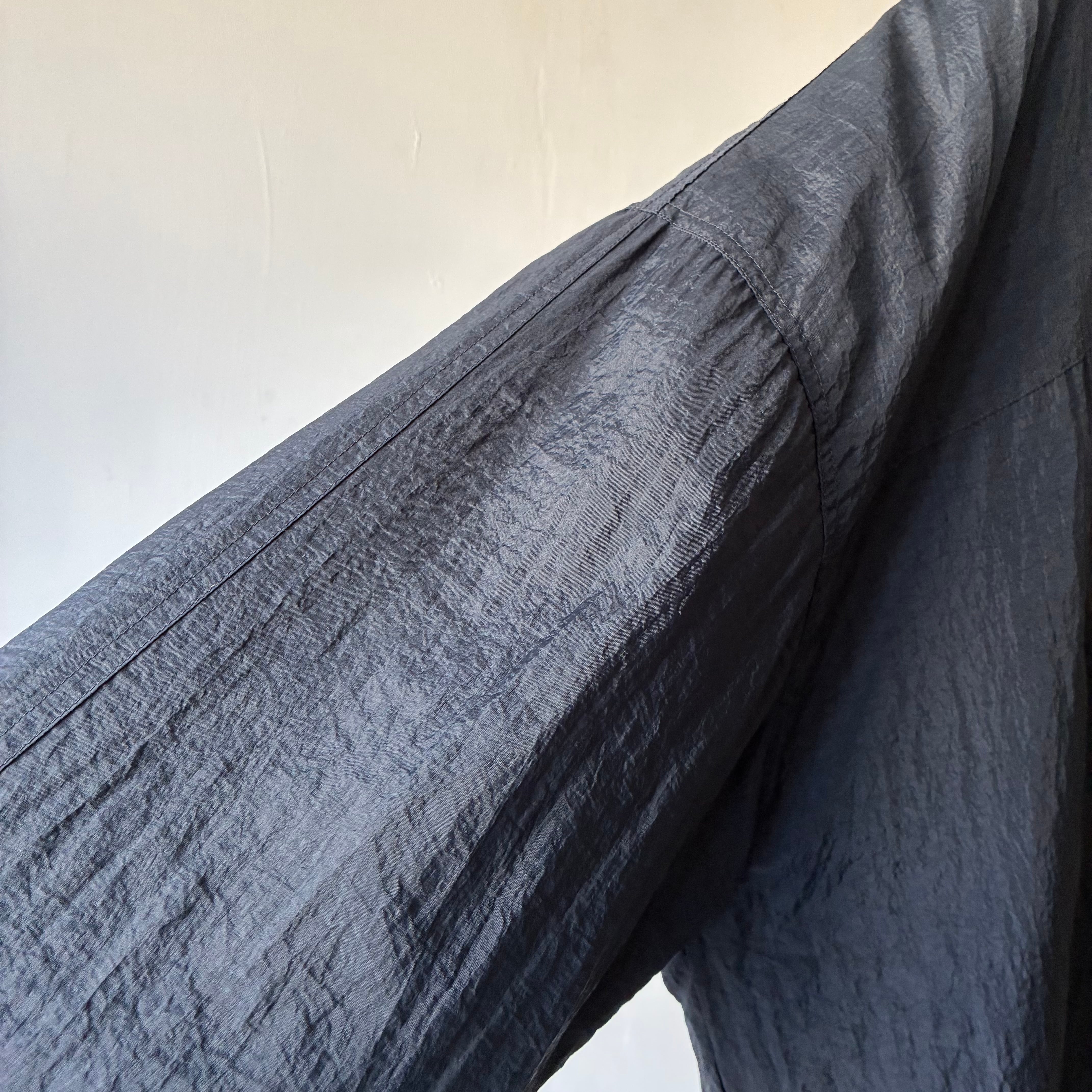 シボ感のあるナイロン生地が独特の表情を生み、無地ながら存在感のある一着に仕上がっています