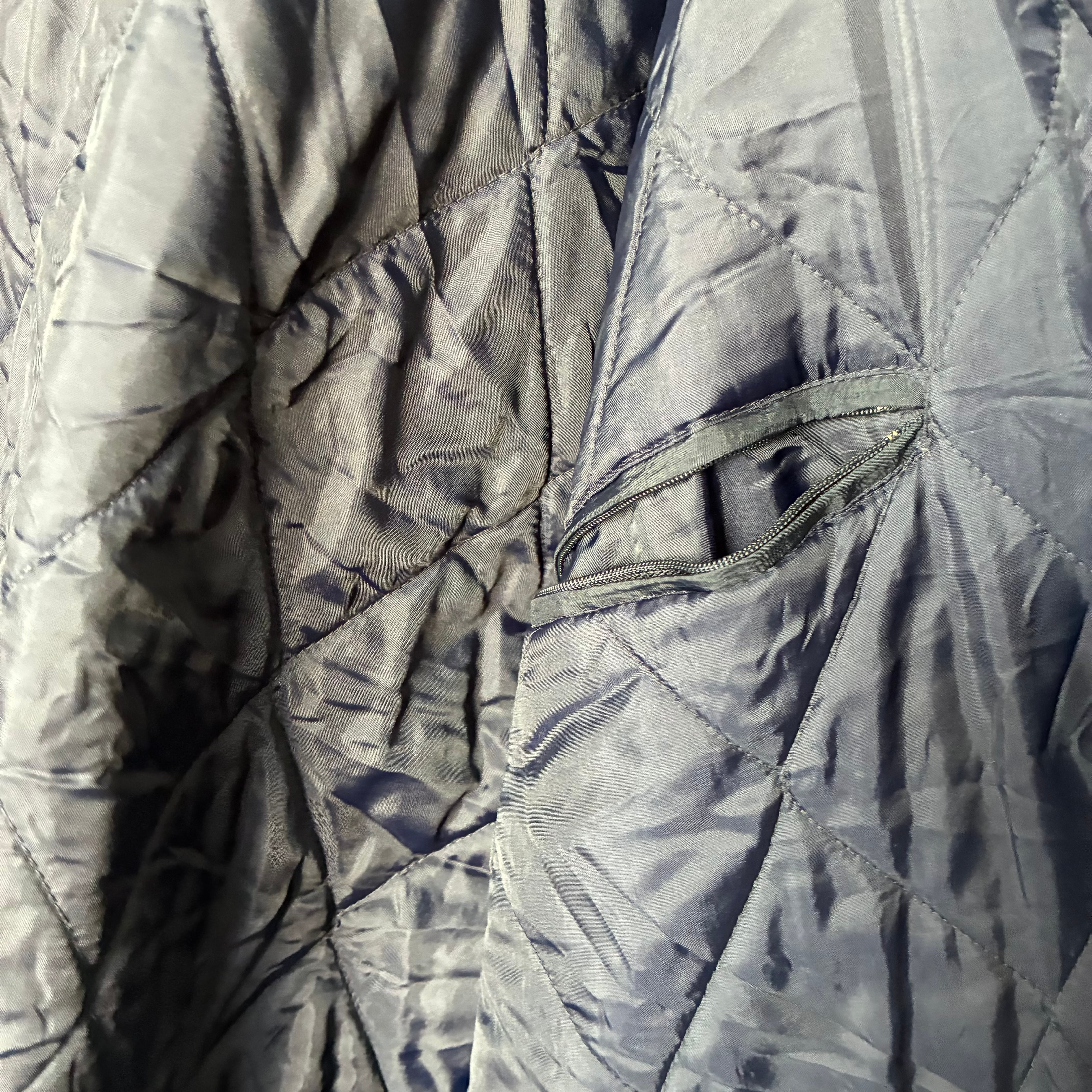 首元・袖口・裾には太めのリブが配されネイビー寄りの深いカラーリングが上品さをプラス