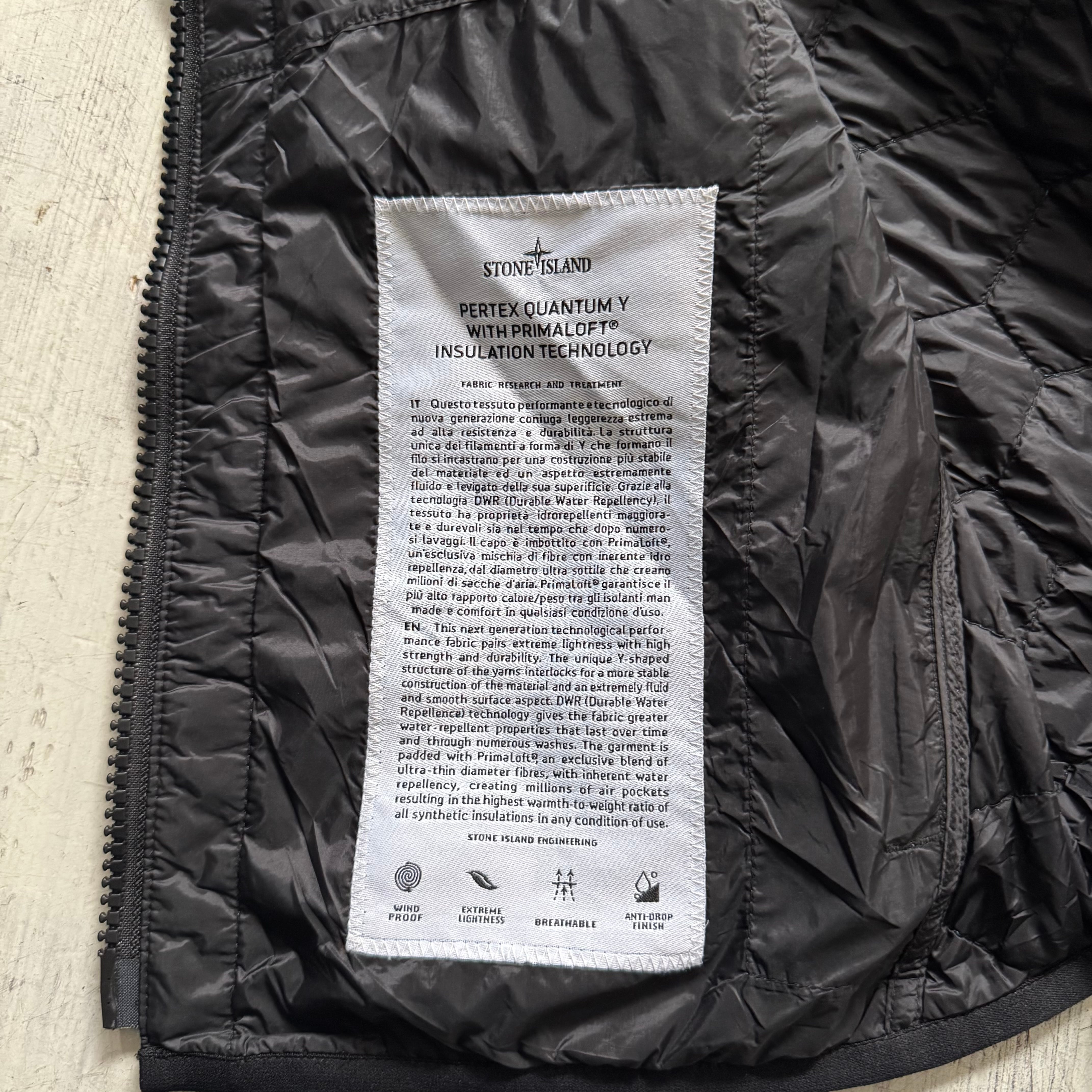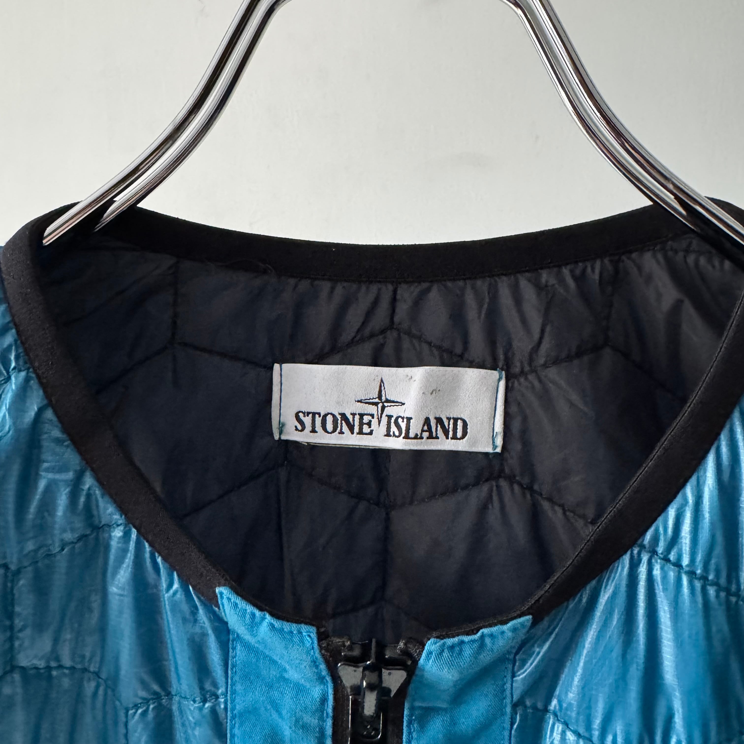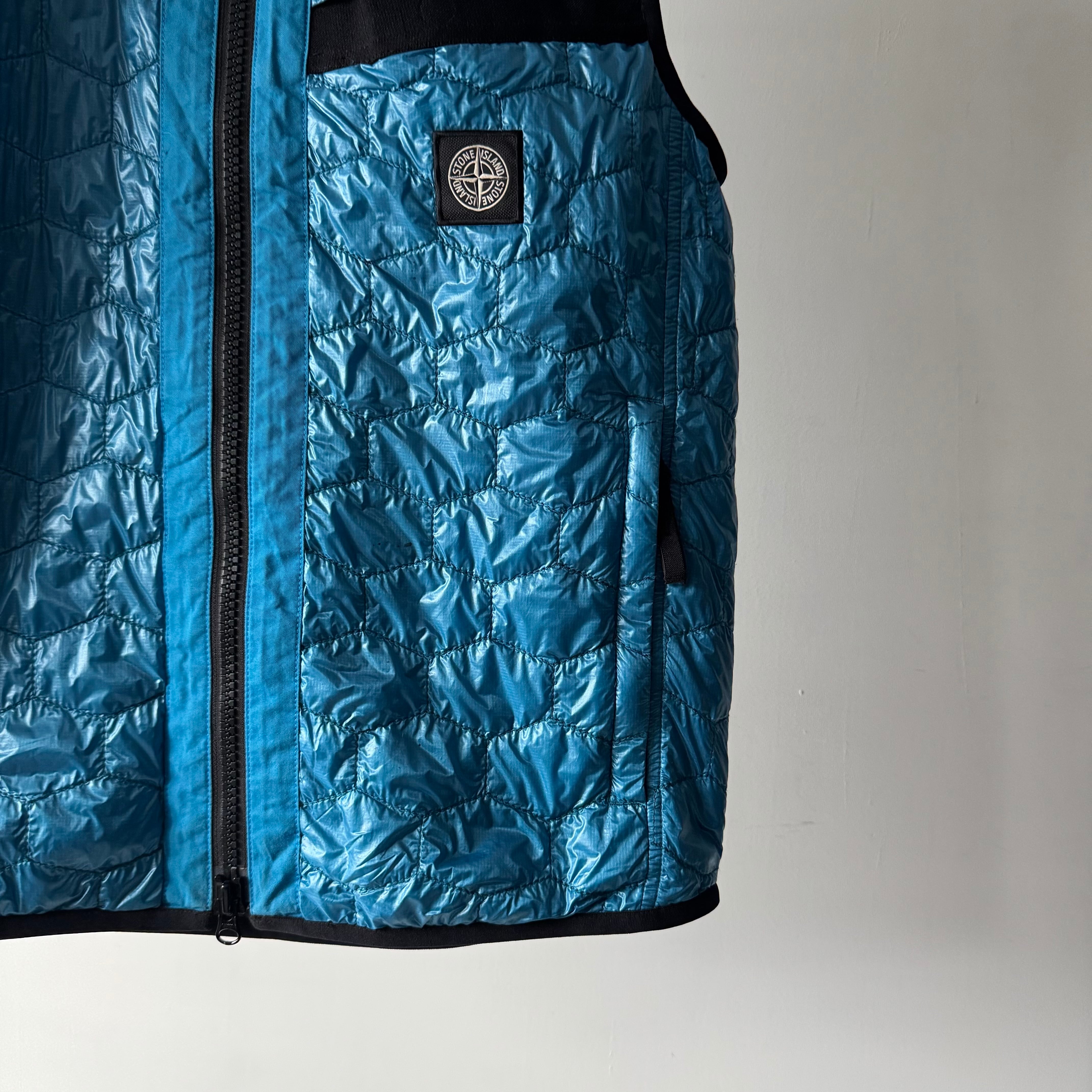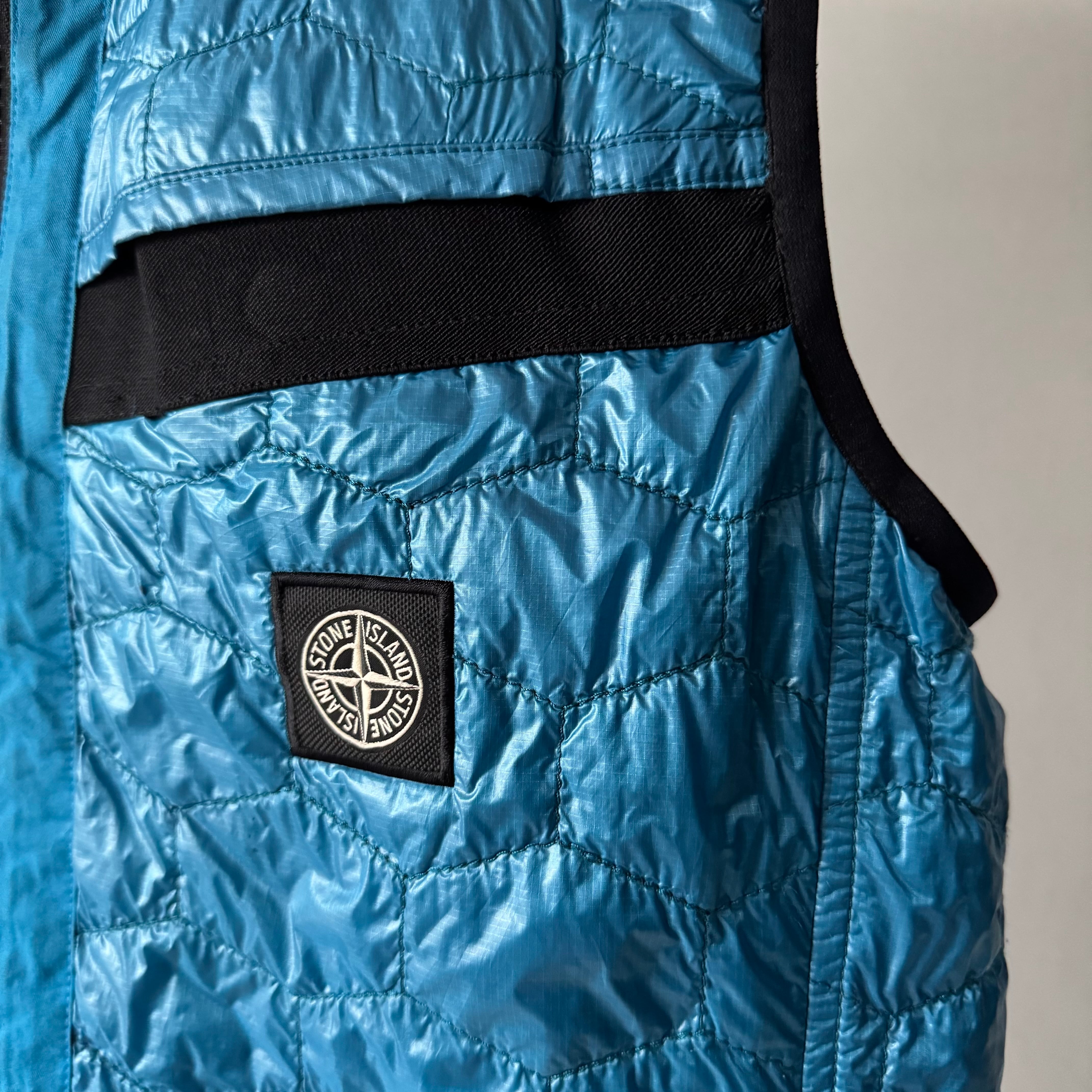 STONE ISLANDからPrimaLoftを使用したターコイズブルーのキルティングベスト