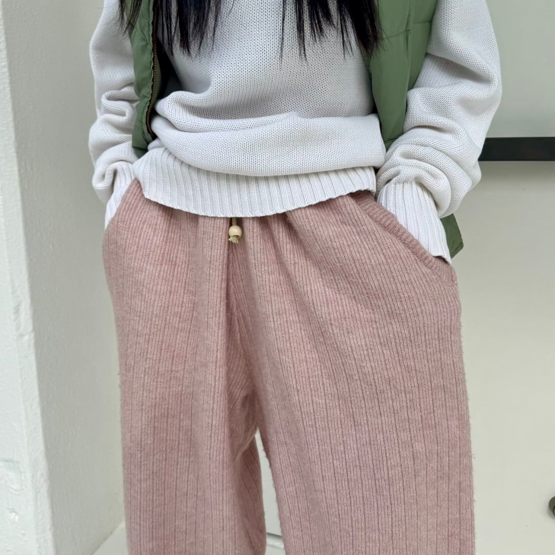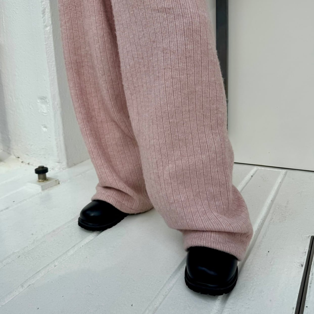 ふかふかな手触りで着心地良く楽に履けるカシミヤ混のニットパンツ