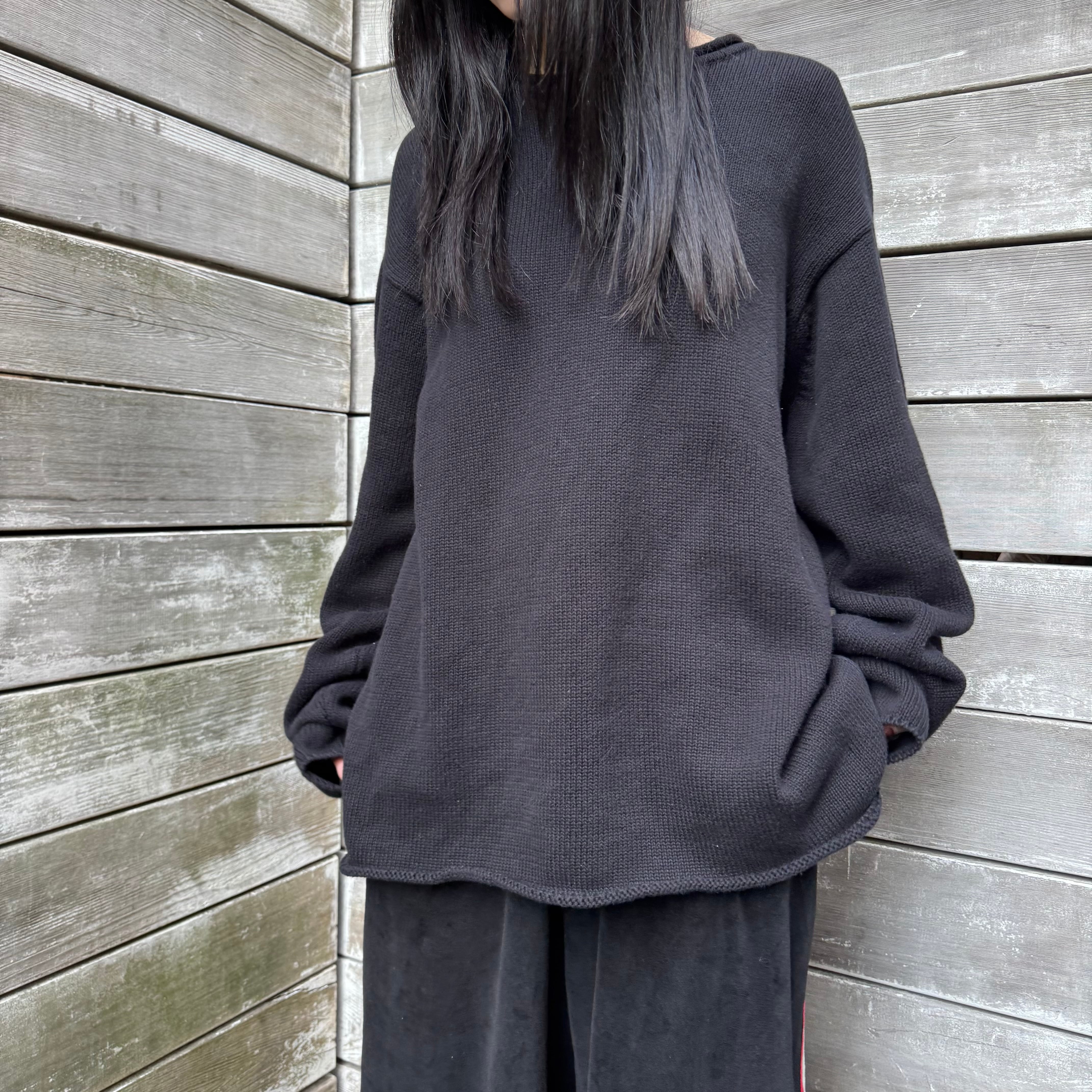やや広めにデザインされたロールネックラインが抜け感を生み、ほどよく落ちるショルダーラインがリラックスしたシルエットを演出