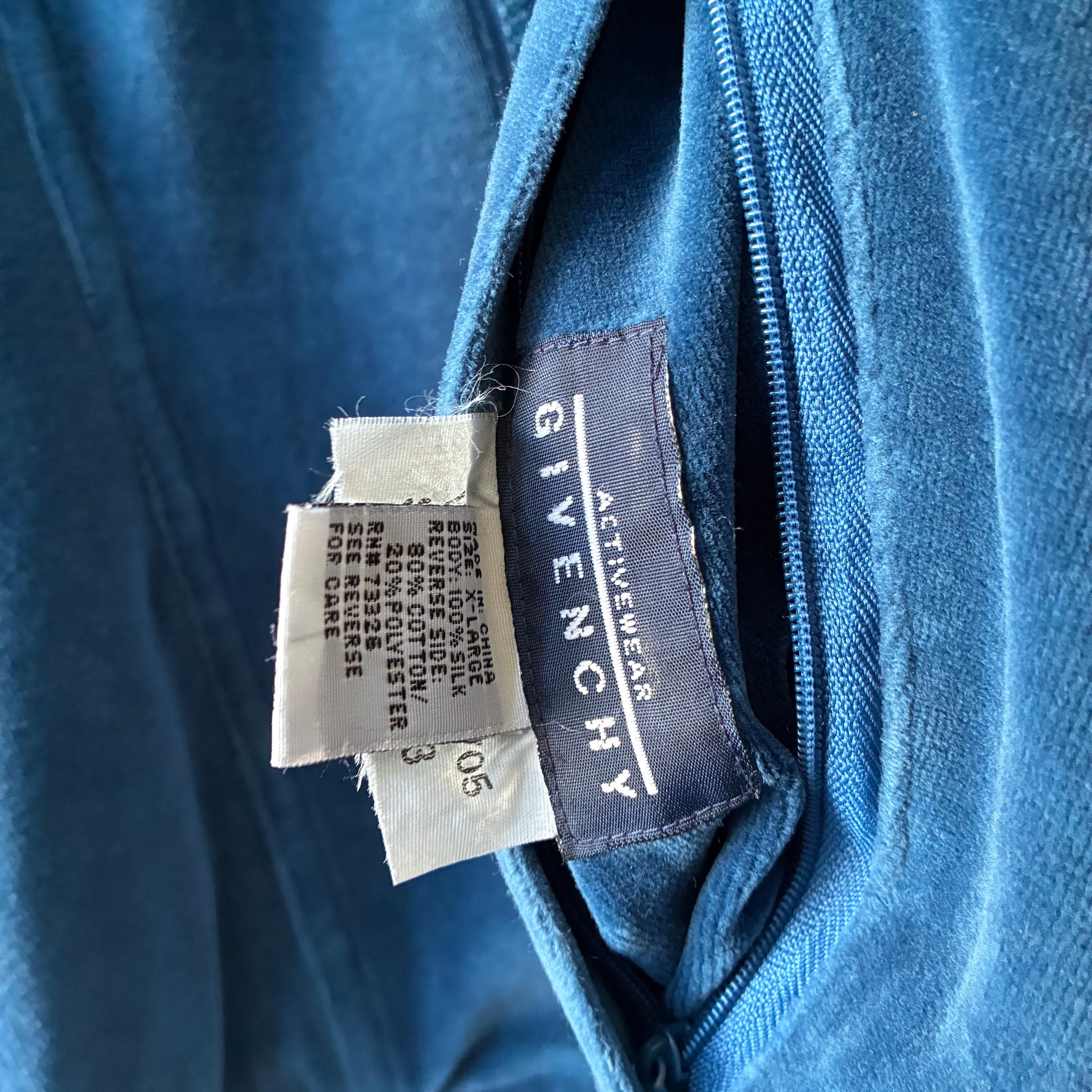 表面は深みのあるブルーカラーのベロア調素材を使用し胸元には控えめなロゴ刺繍、ジップにはGIVENCHY刻印入りトップを配し、上品でラグジュアリーな雰囲気が際立ちます