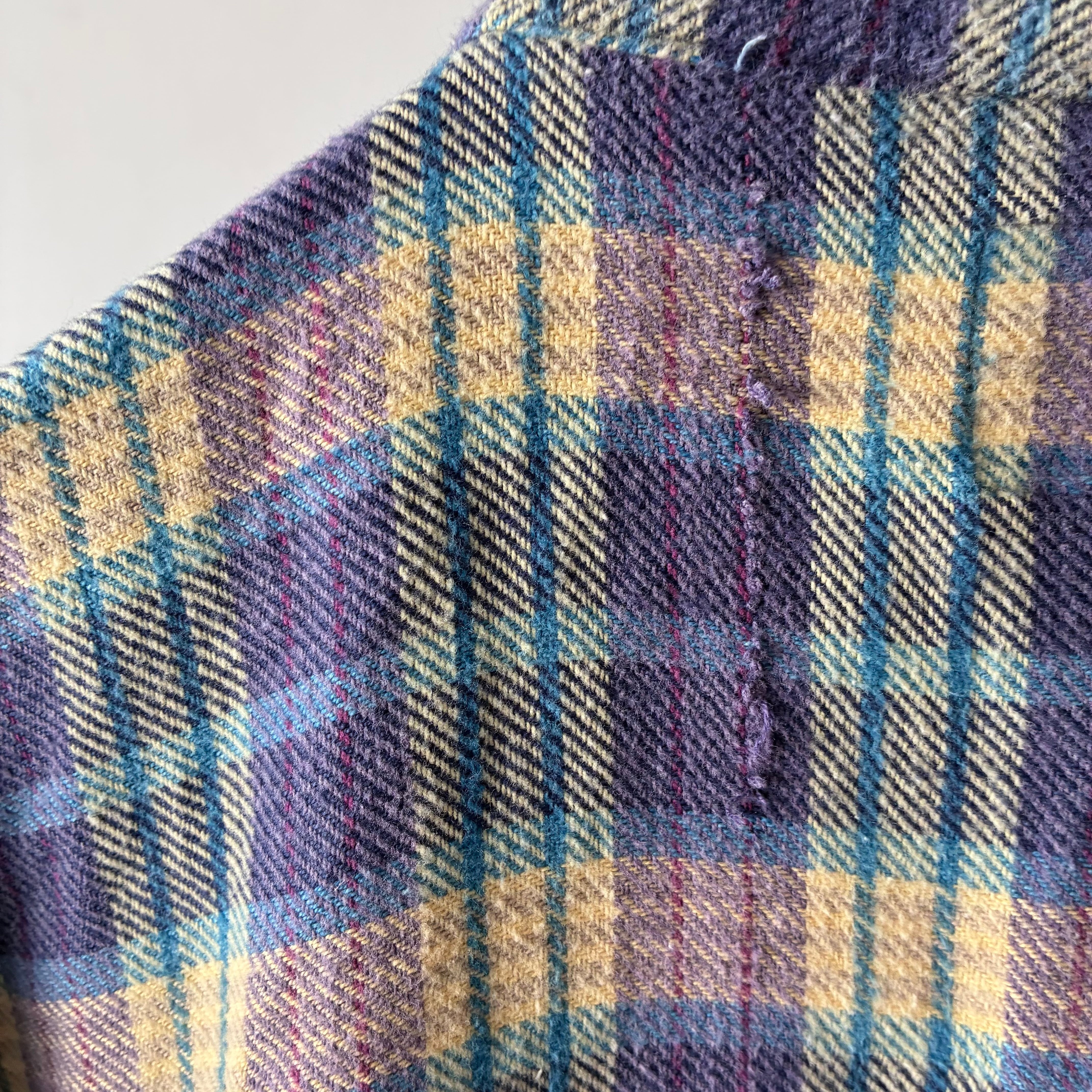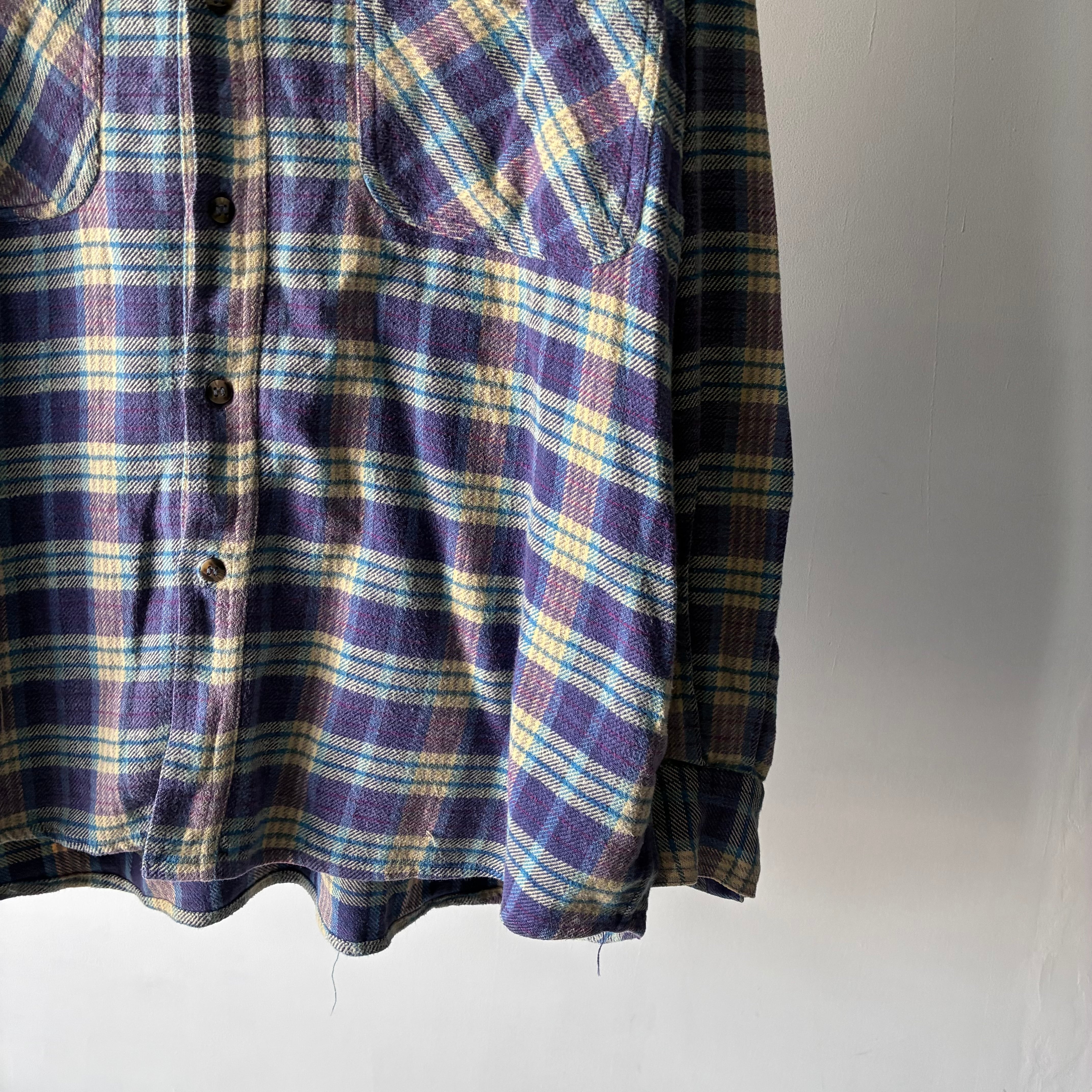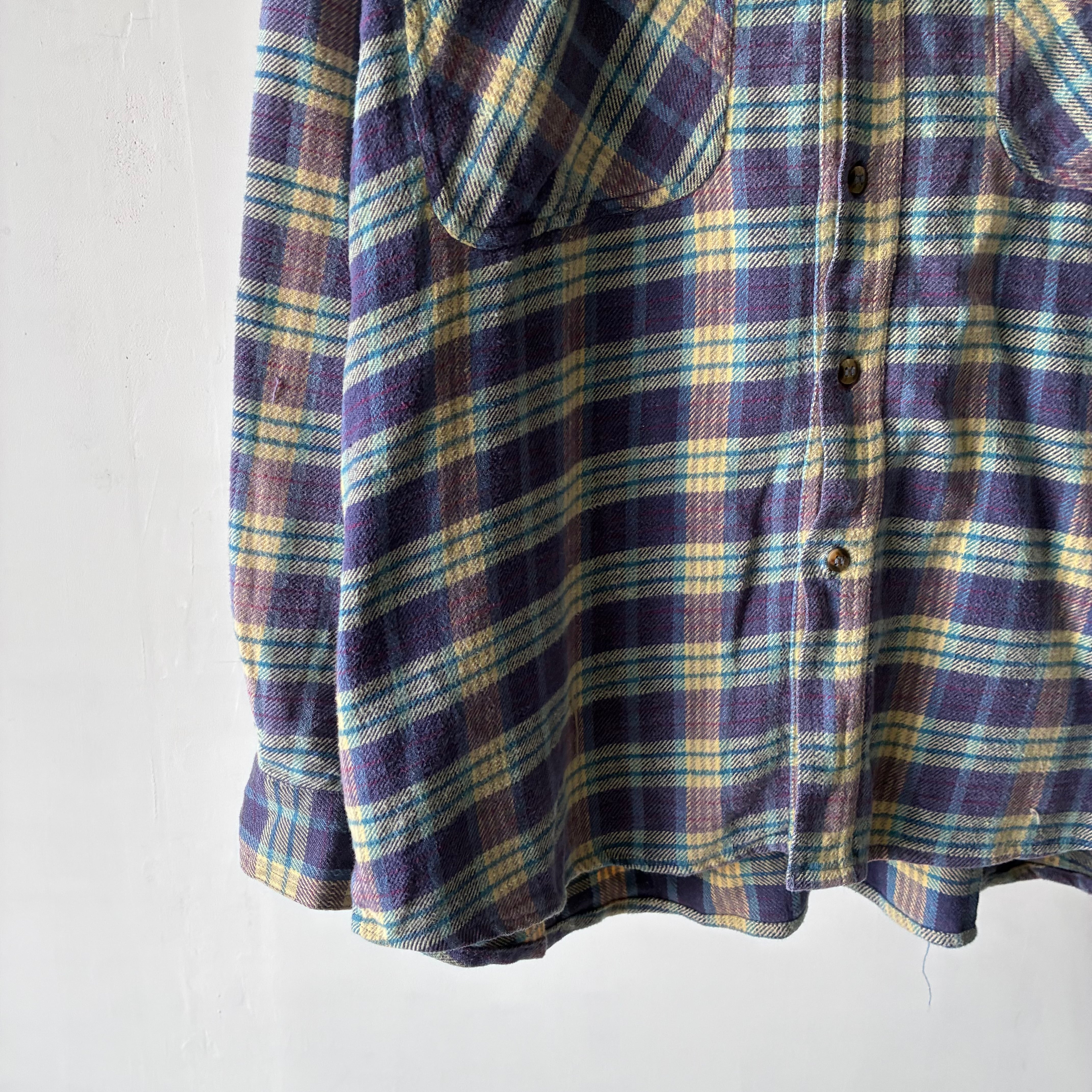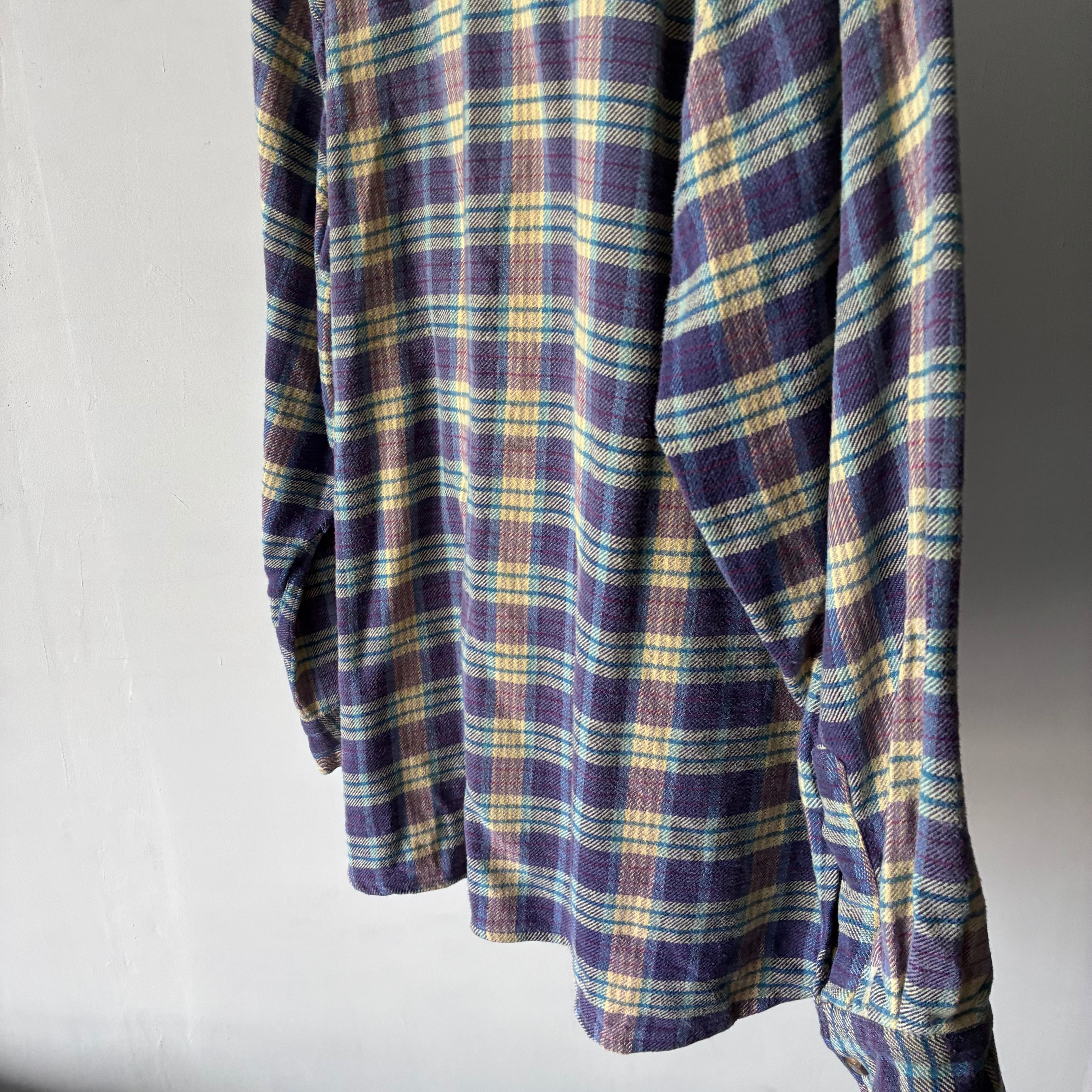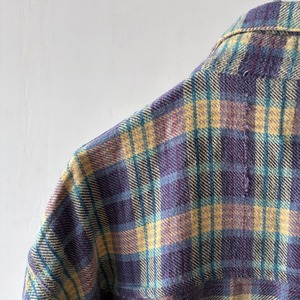 落ち着いたパープル×イエロー×ブルーを基調とした、雰囲気の良いチェック柄ネルシャツ