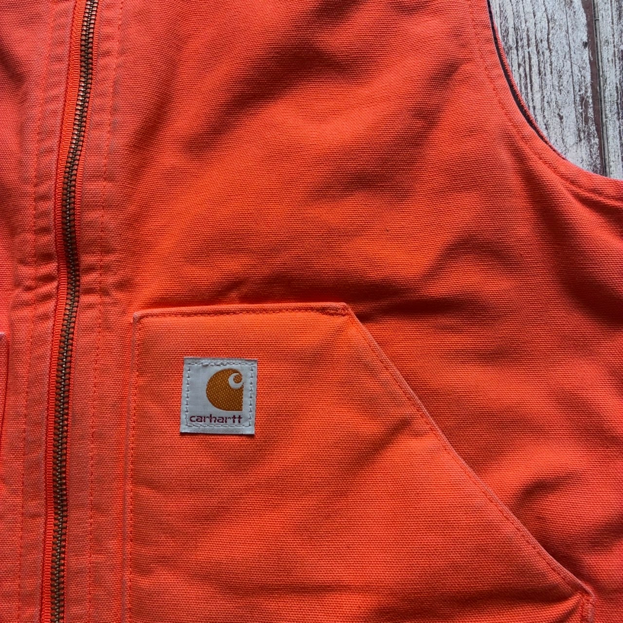 様々なレイヤードが楽しめてコーデのアクセントとして最適なカーハートのオレンジダックベスト