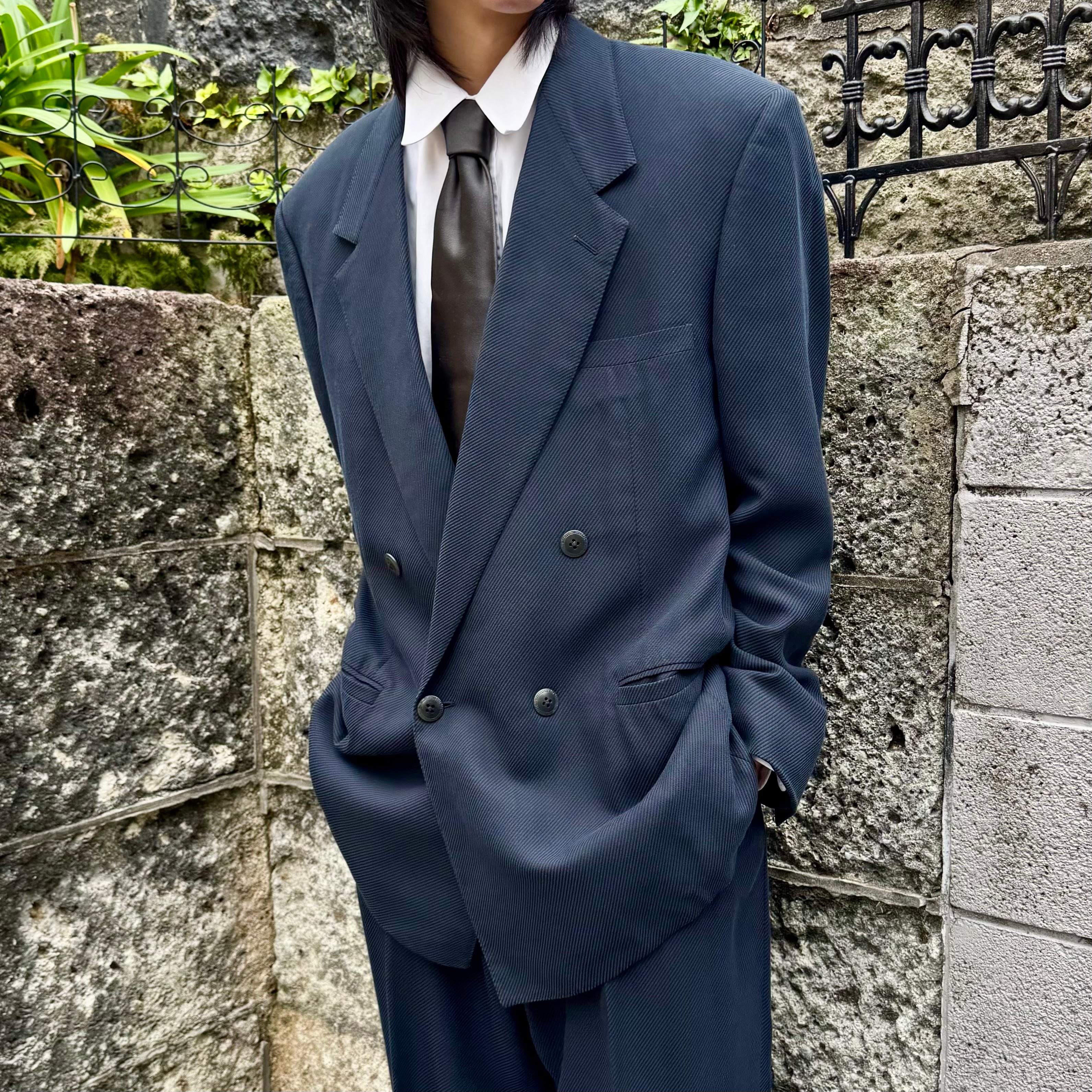 イタリアのクラシカルなダブルスーツならではのゆとりある身幅で大柄の方にもオススメな1着となっています