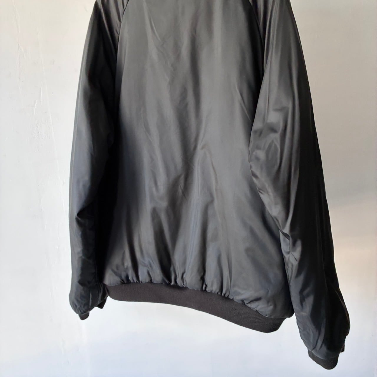 リバーシブル仕様でB面はベーシックに使えるオールブラックカラーのナイロンシェル
