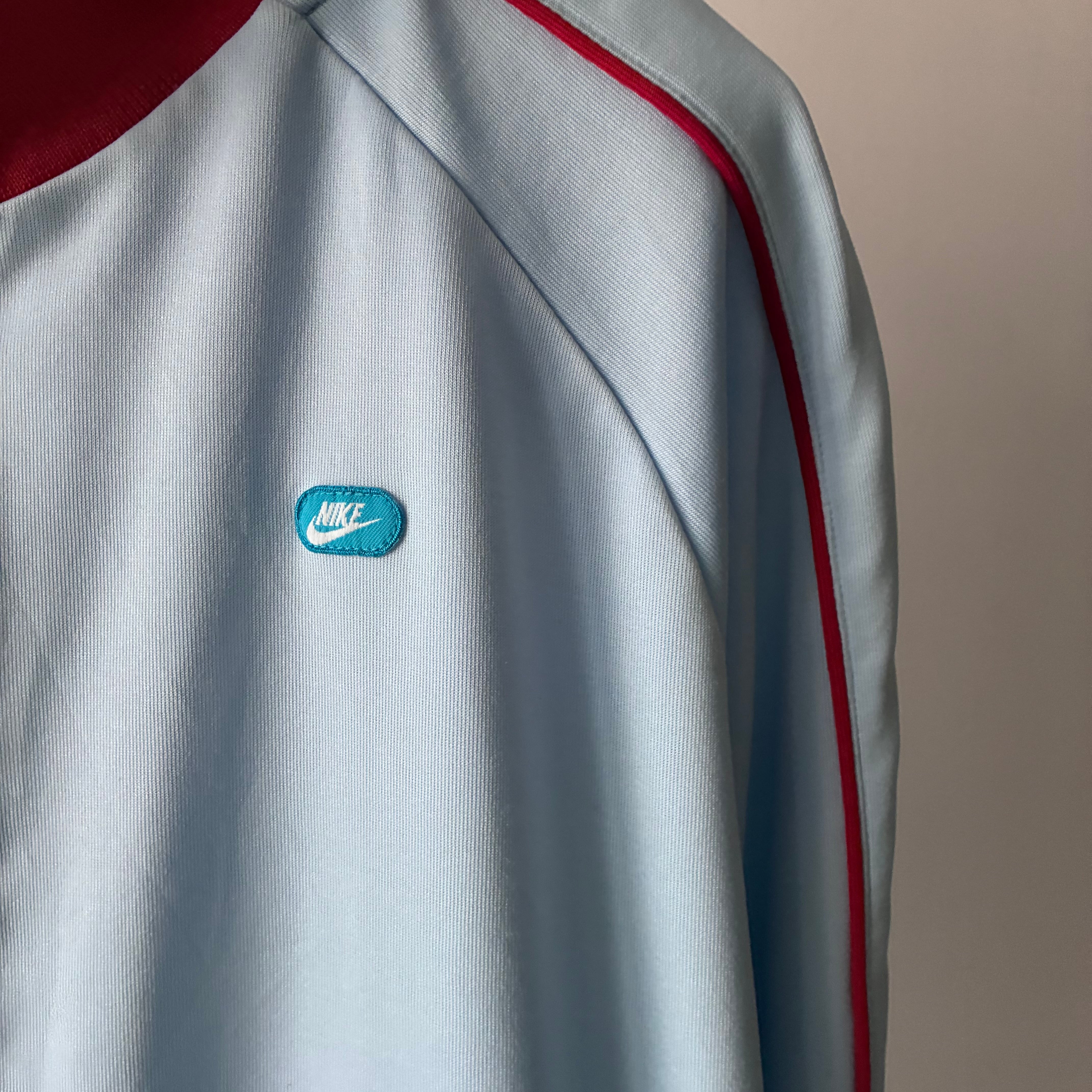 胸元にはワンポイントのNIKEロゴ刺繍、ジップトップには当時らしい丸型チャームを採用