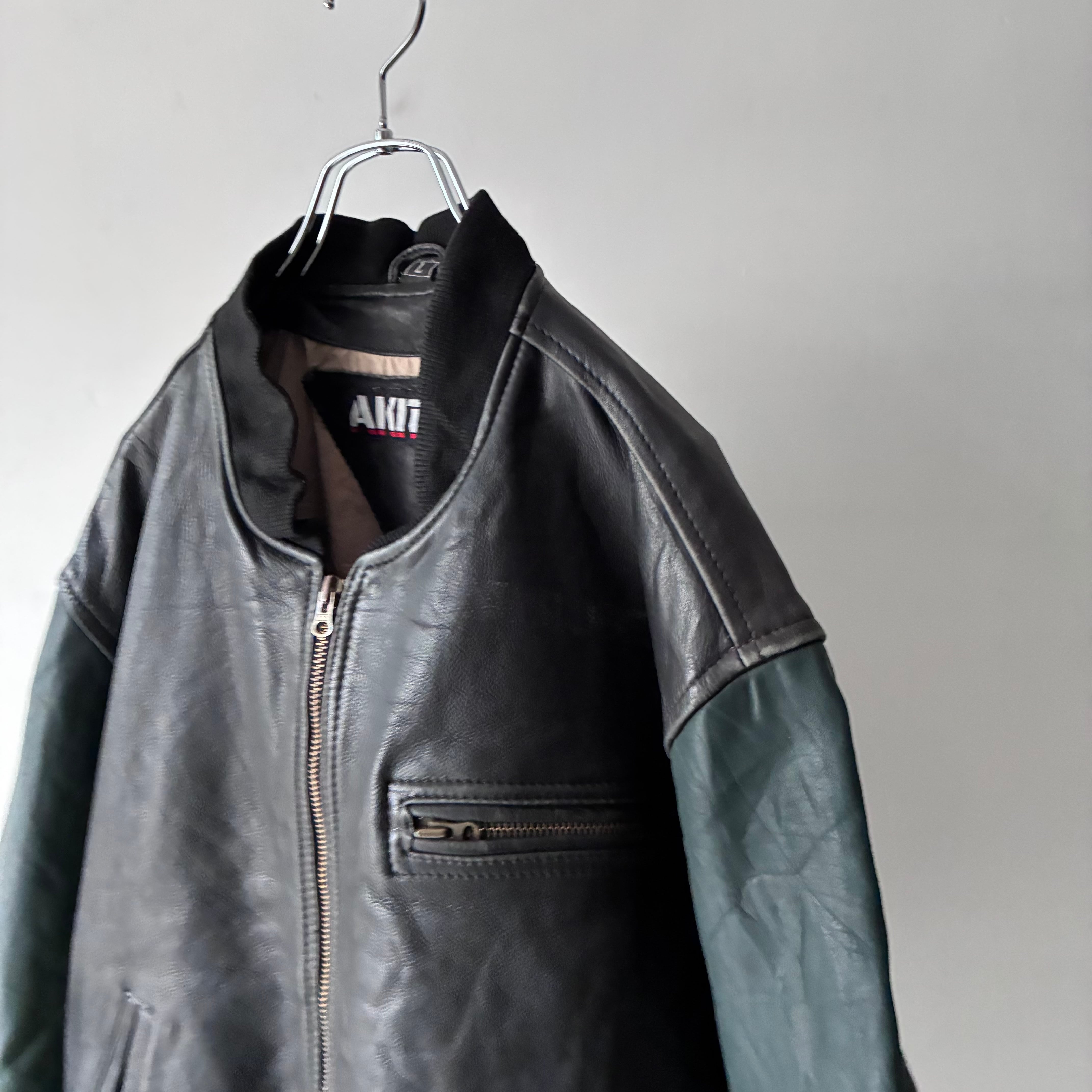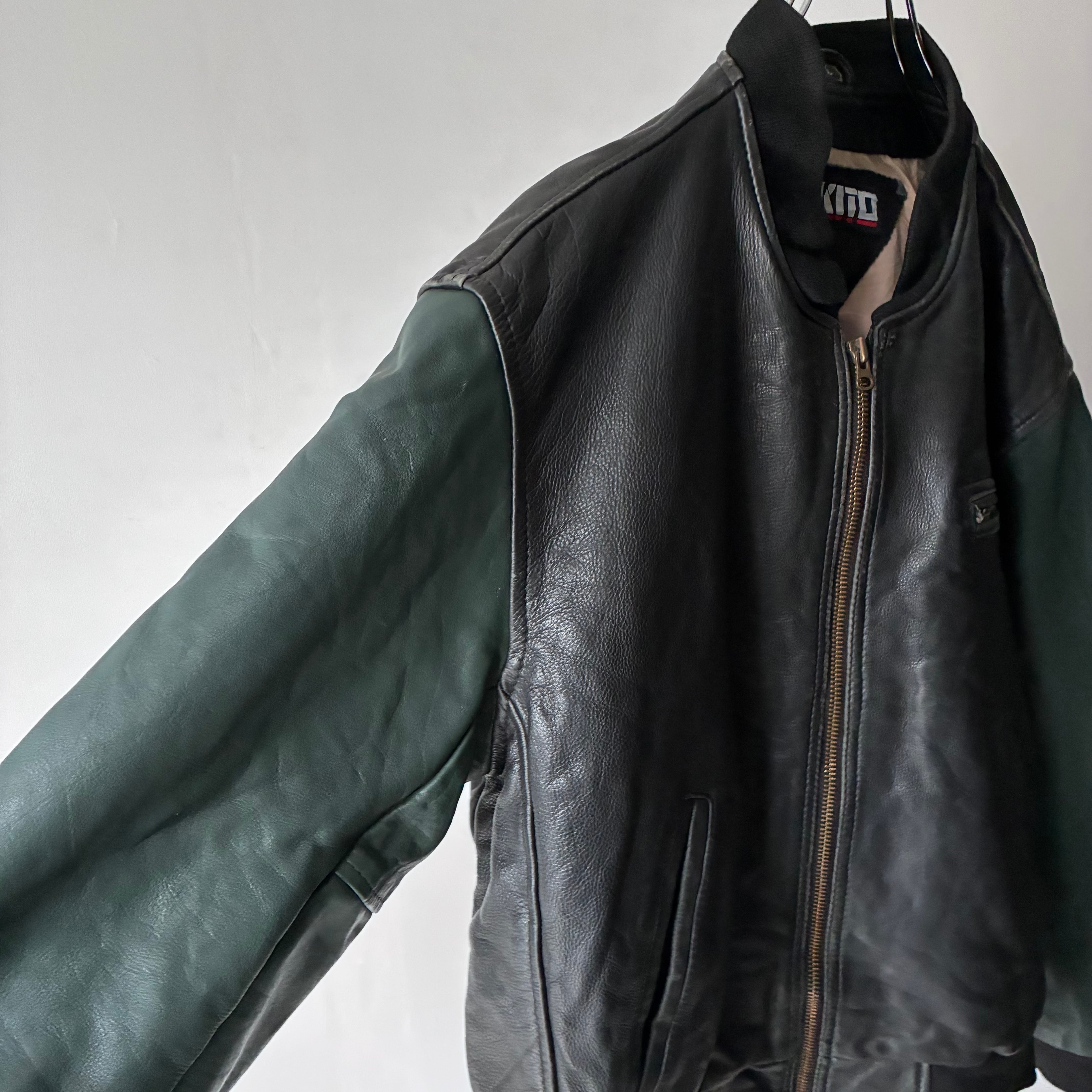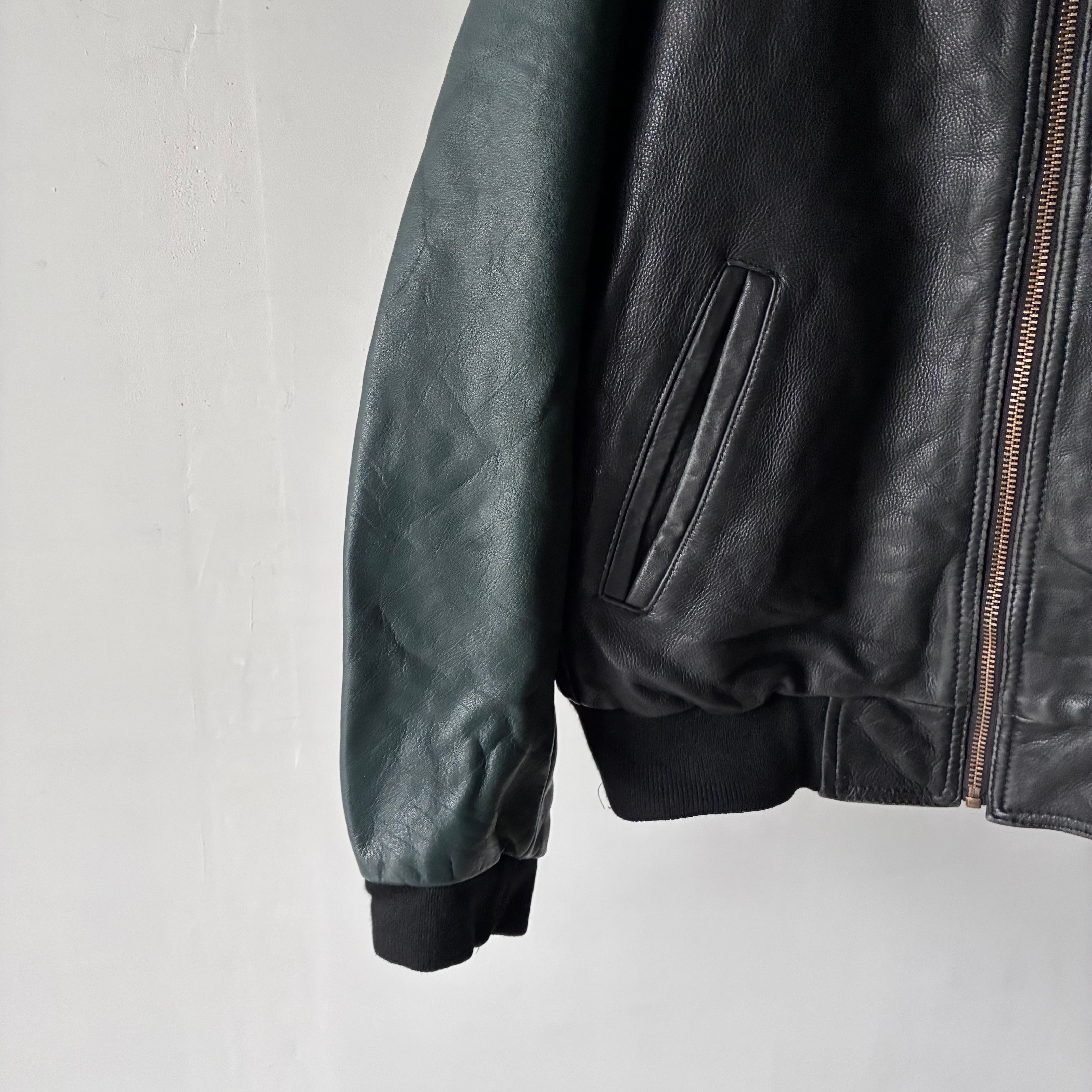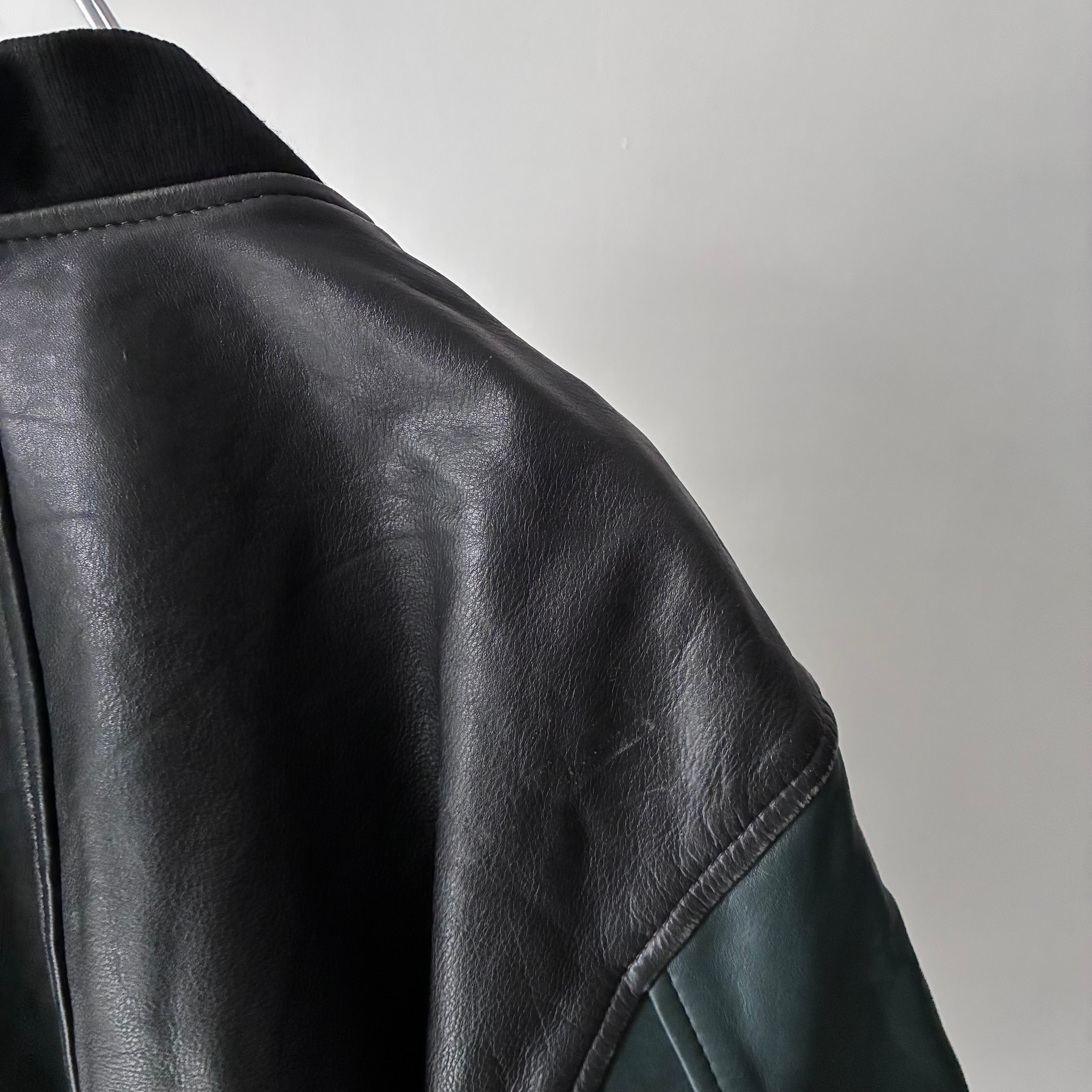 上質なレザーを使用したリブ付きブルゾンタイプの2トーンレザー