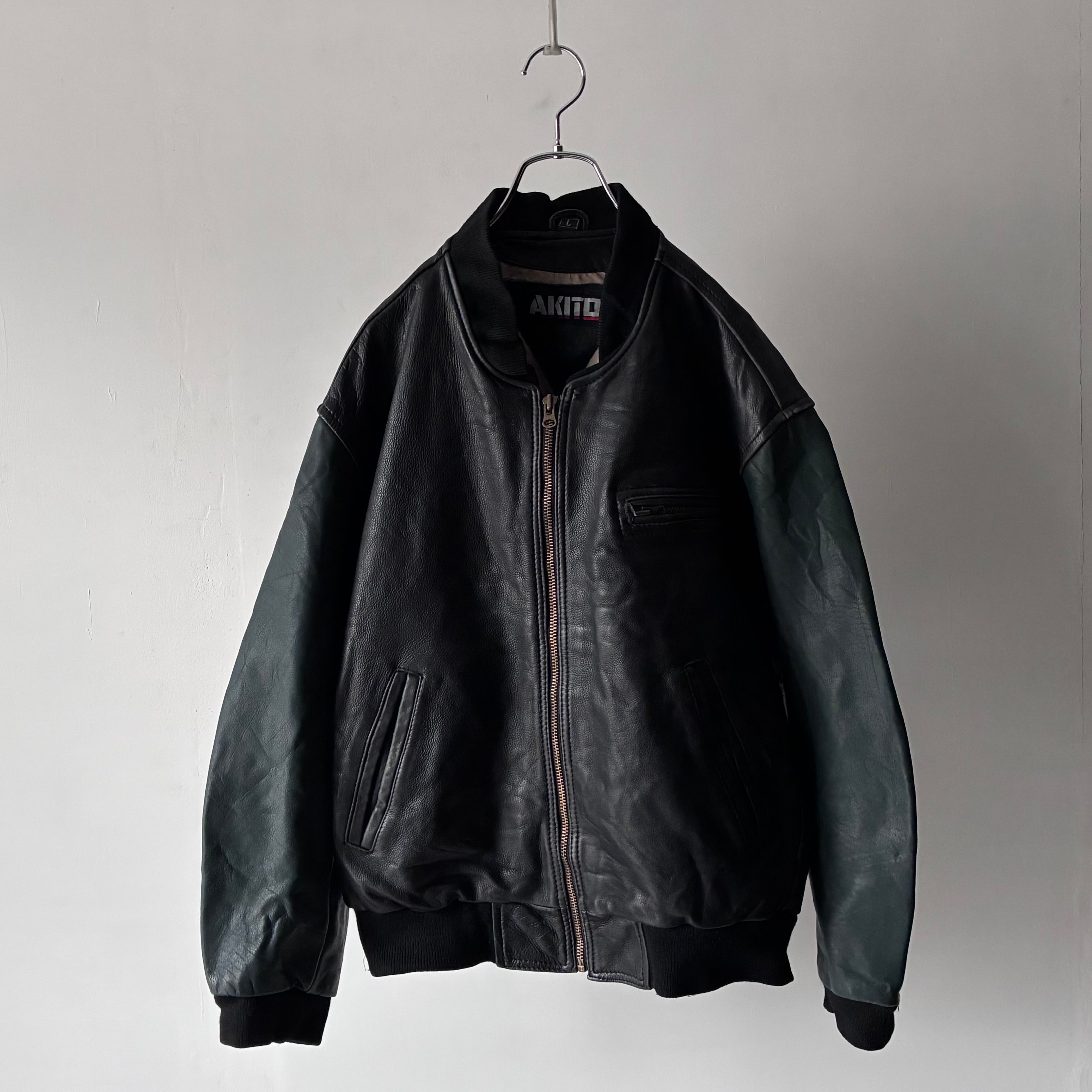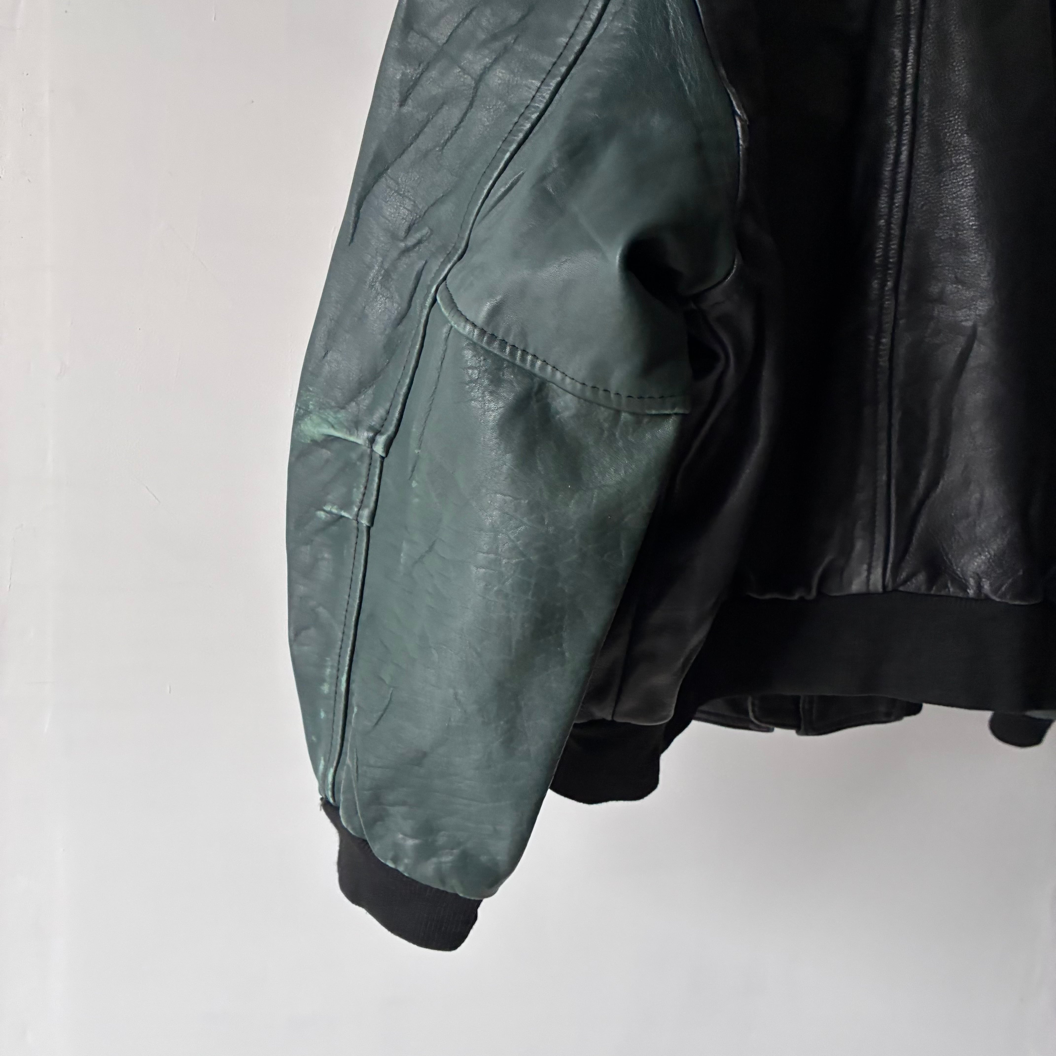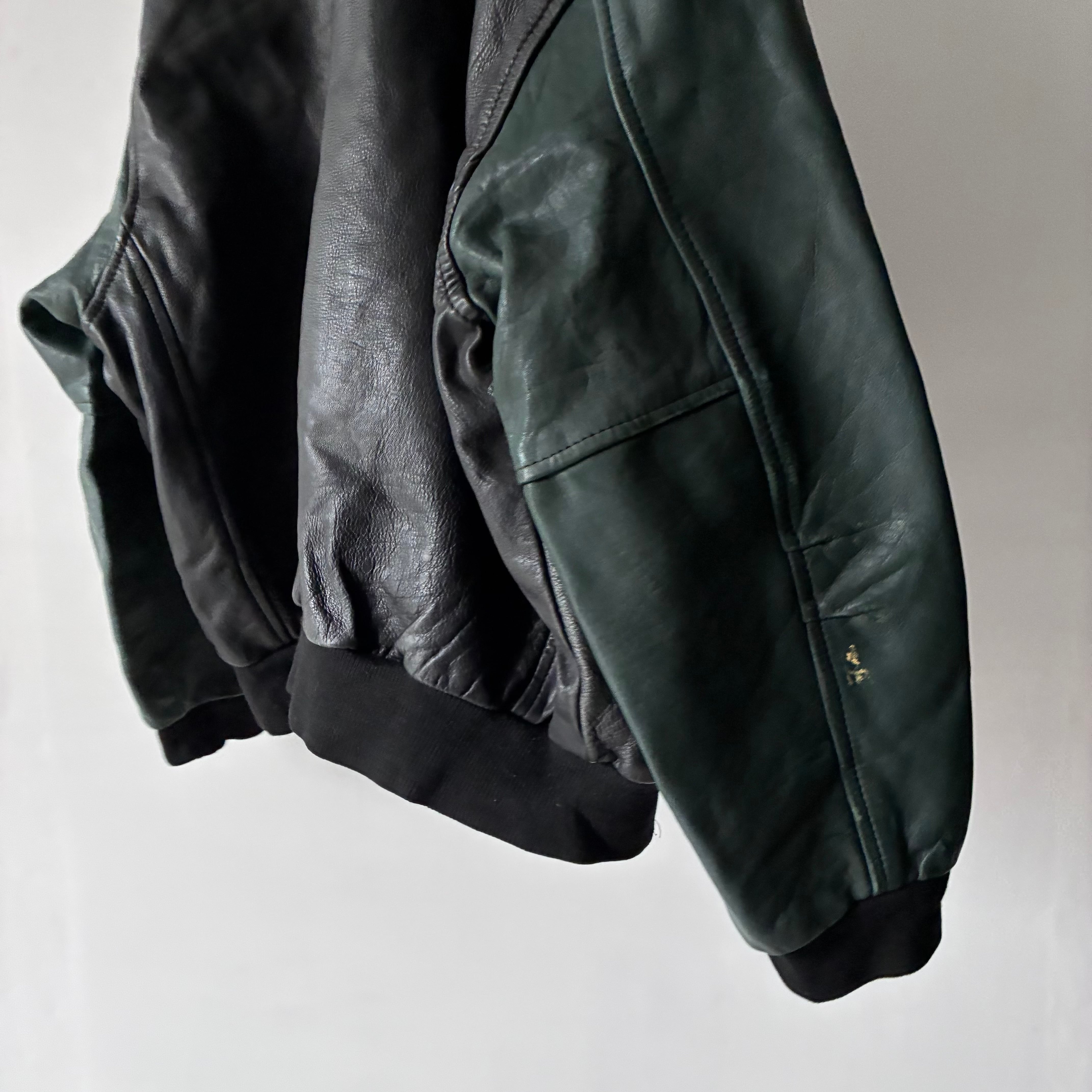 上質なレザーを使用したリブ付きブルゾンタイプの2トーンレザー
