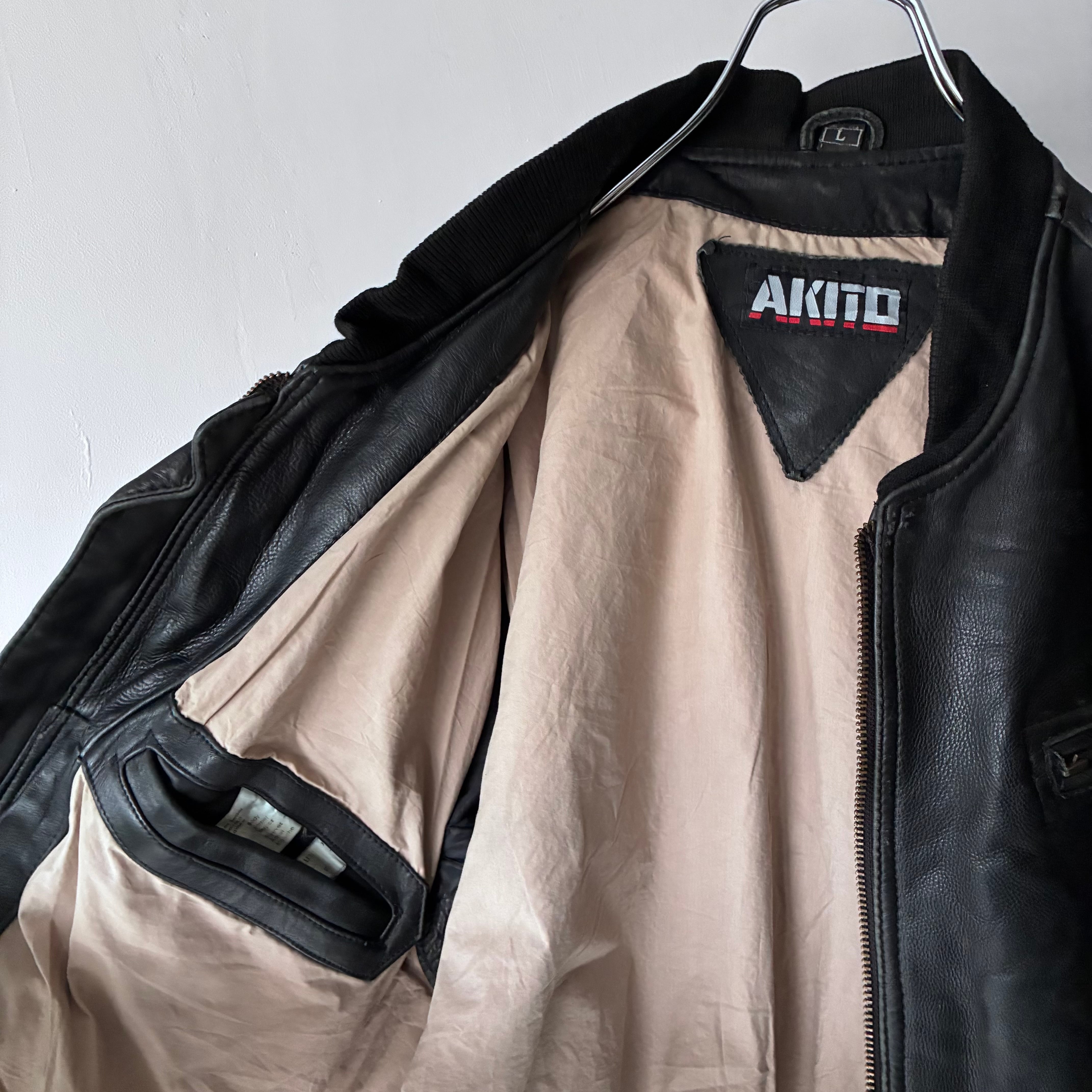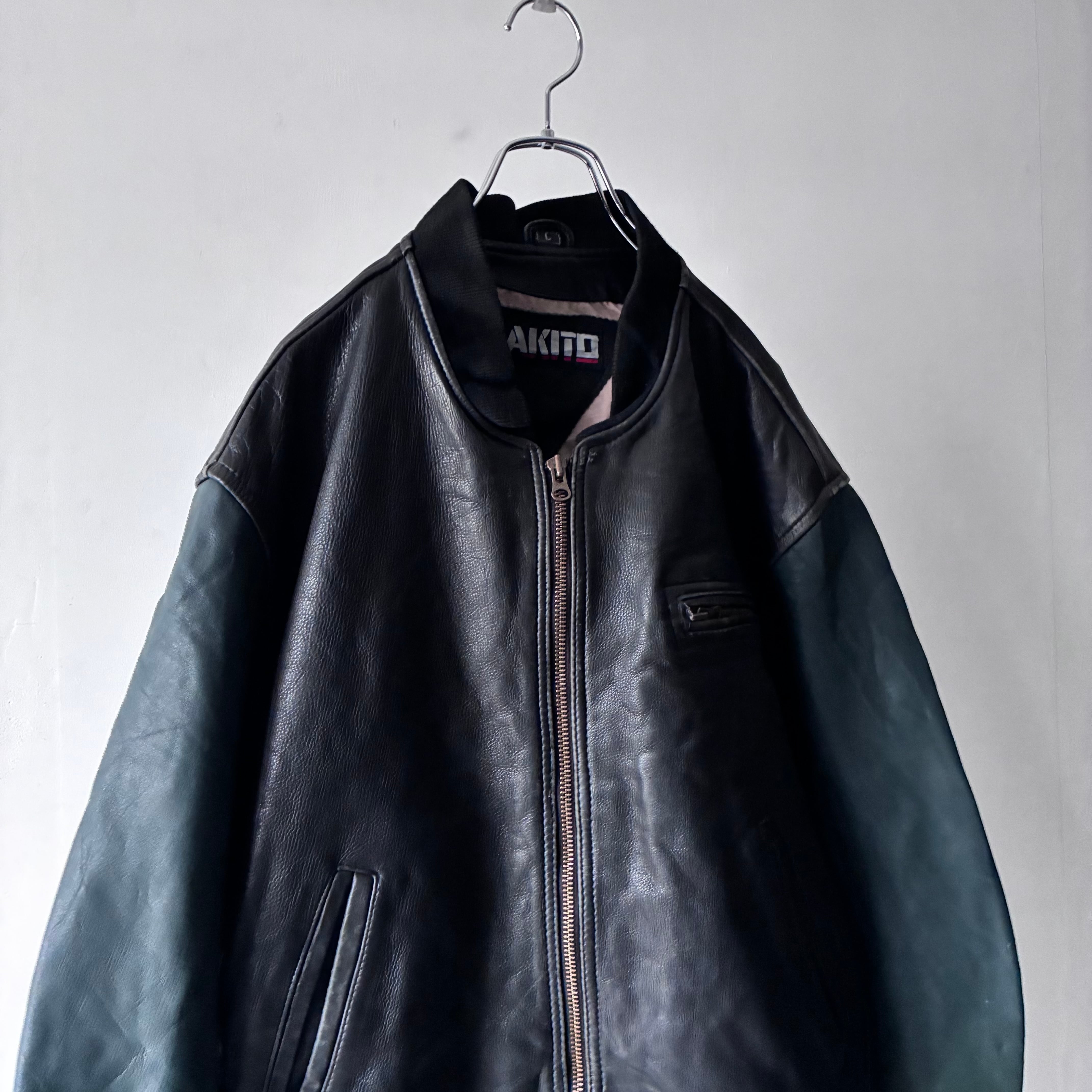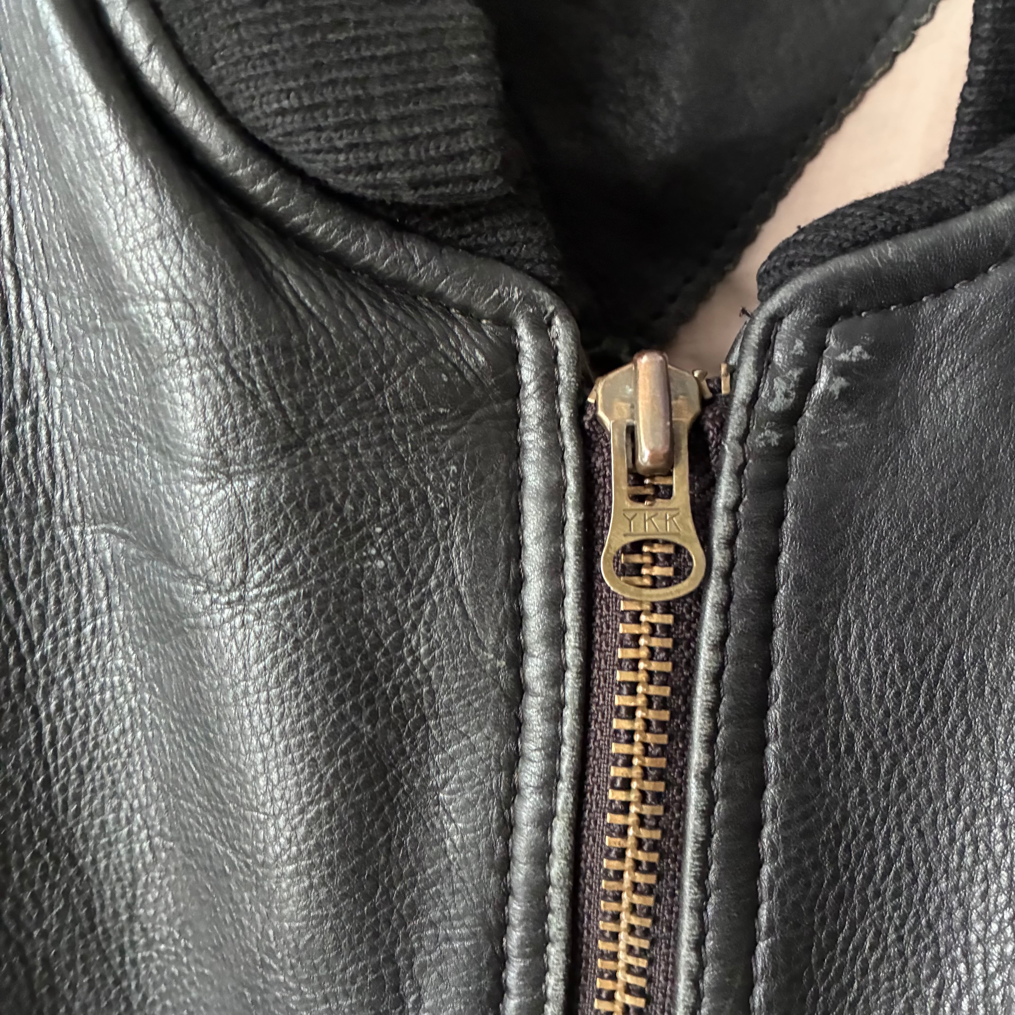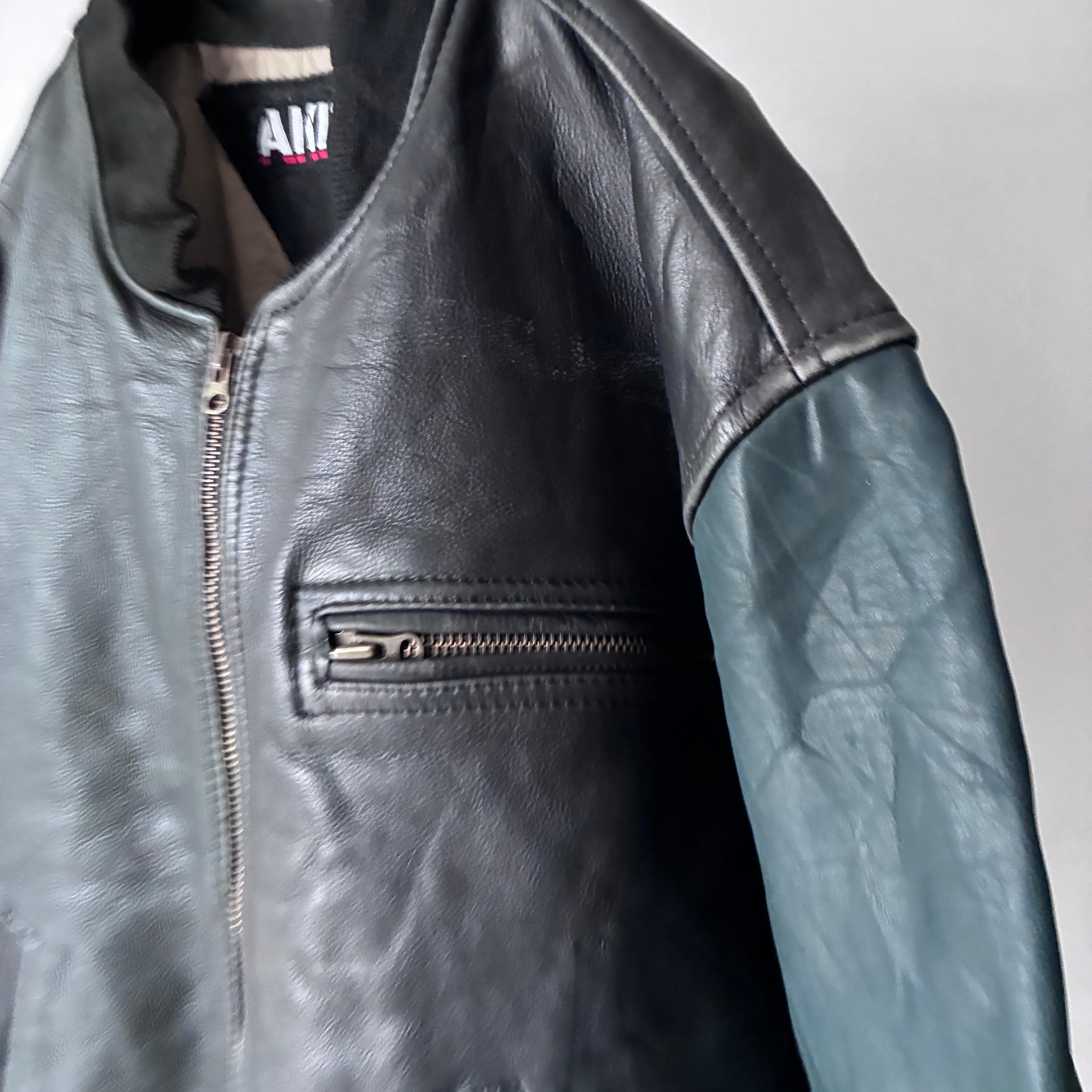 上質なレザーを使用したリブ付きブルゾンタイプの2トーンレザー