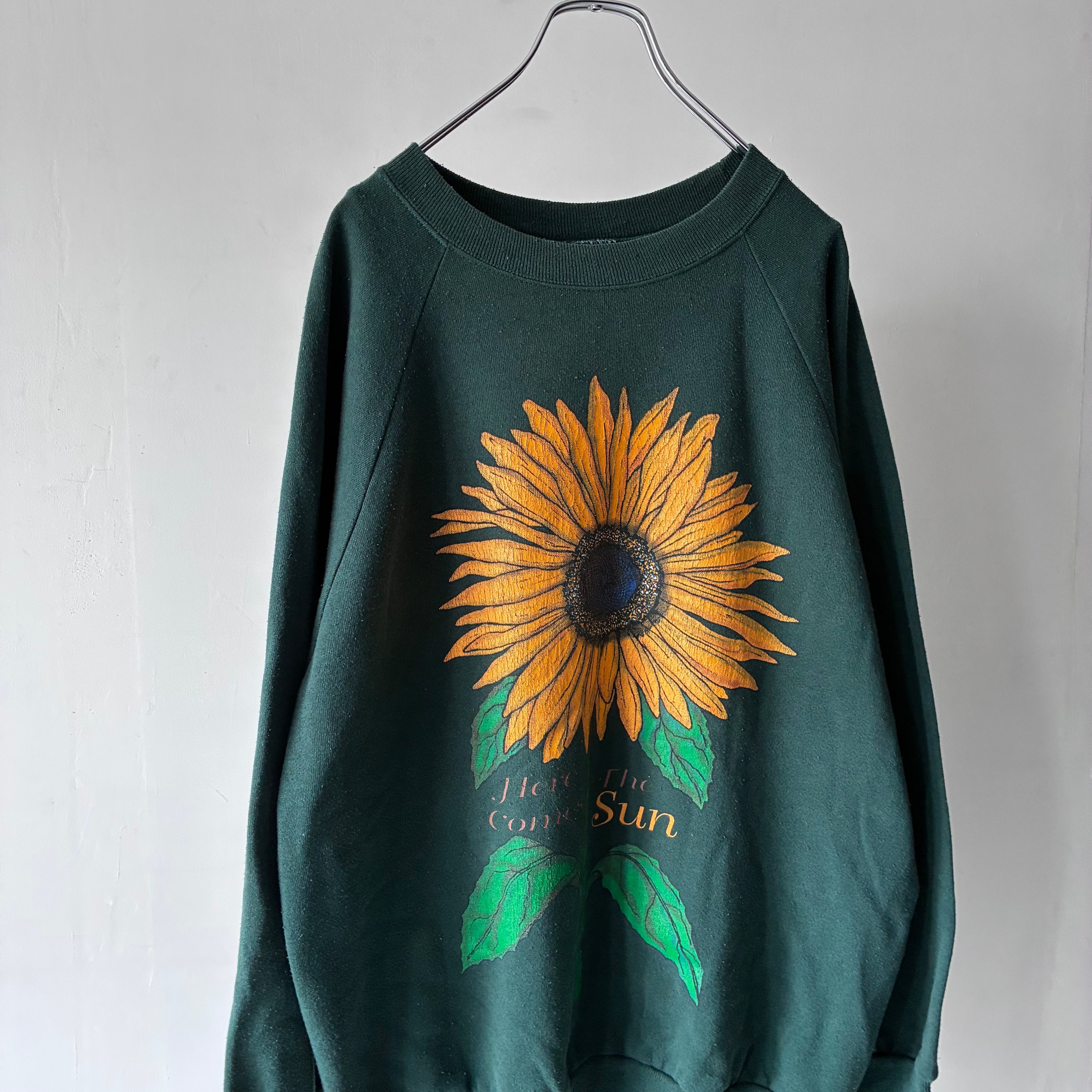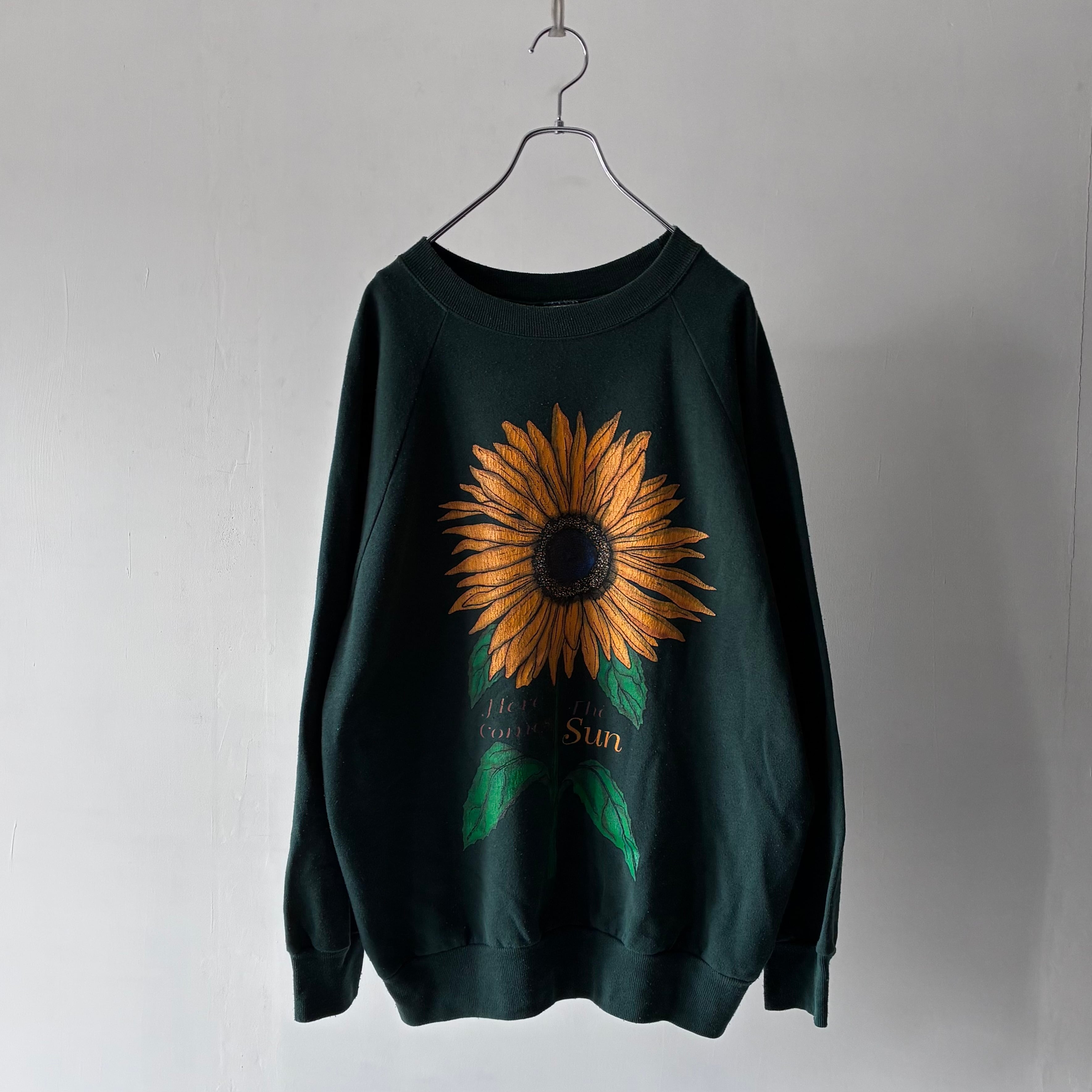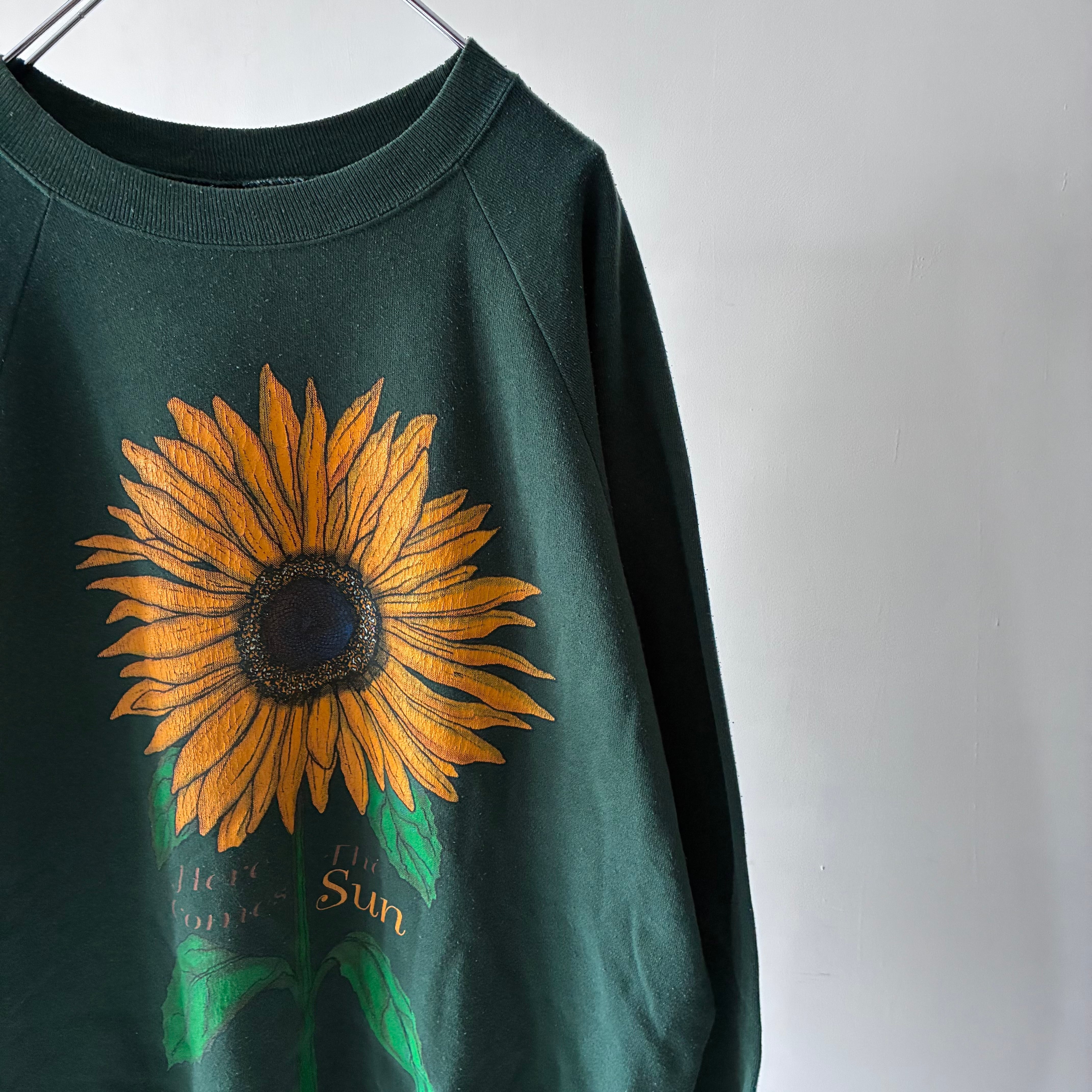 90’s USA製の雰囲気が色濃く漂う、ひまわりプリントスウェット