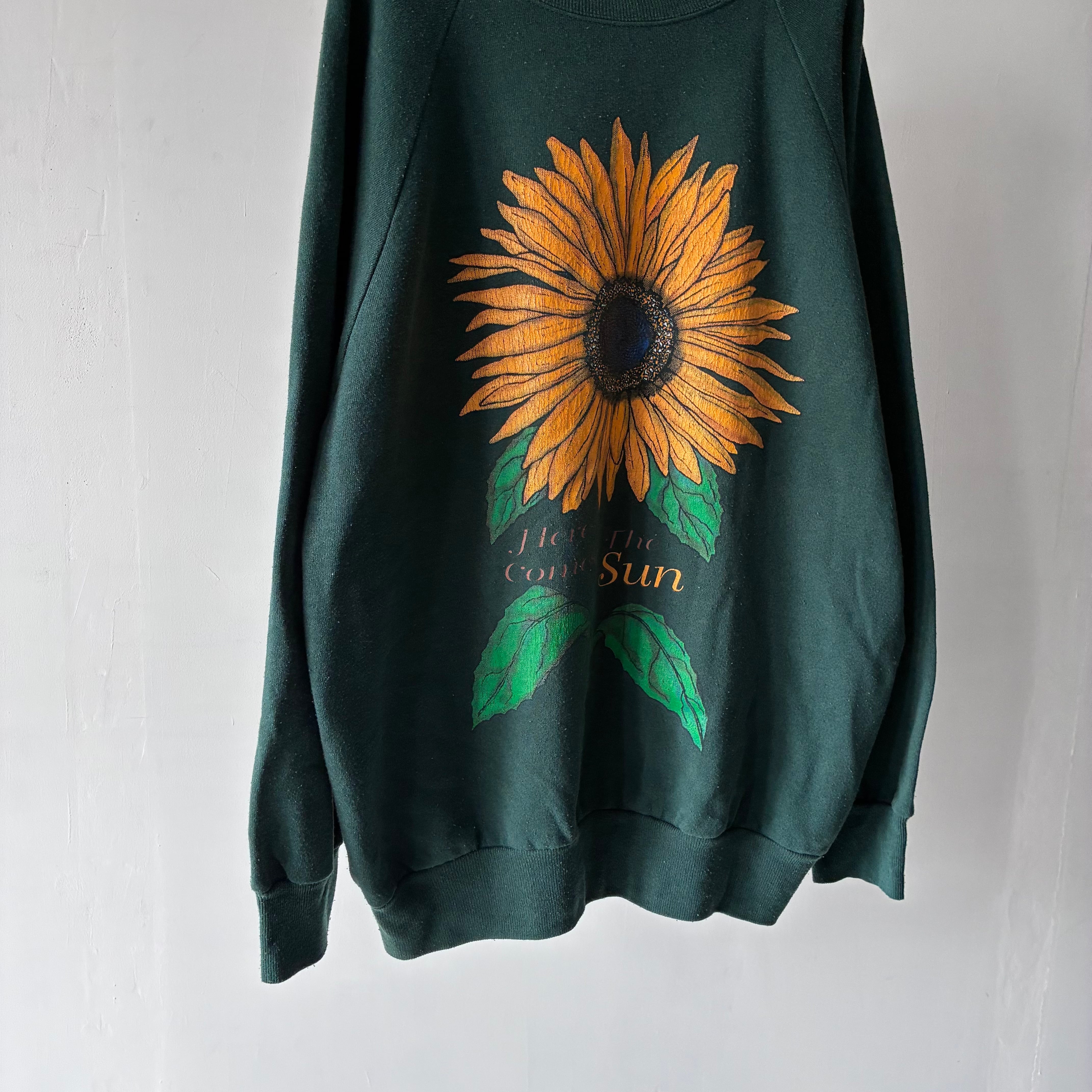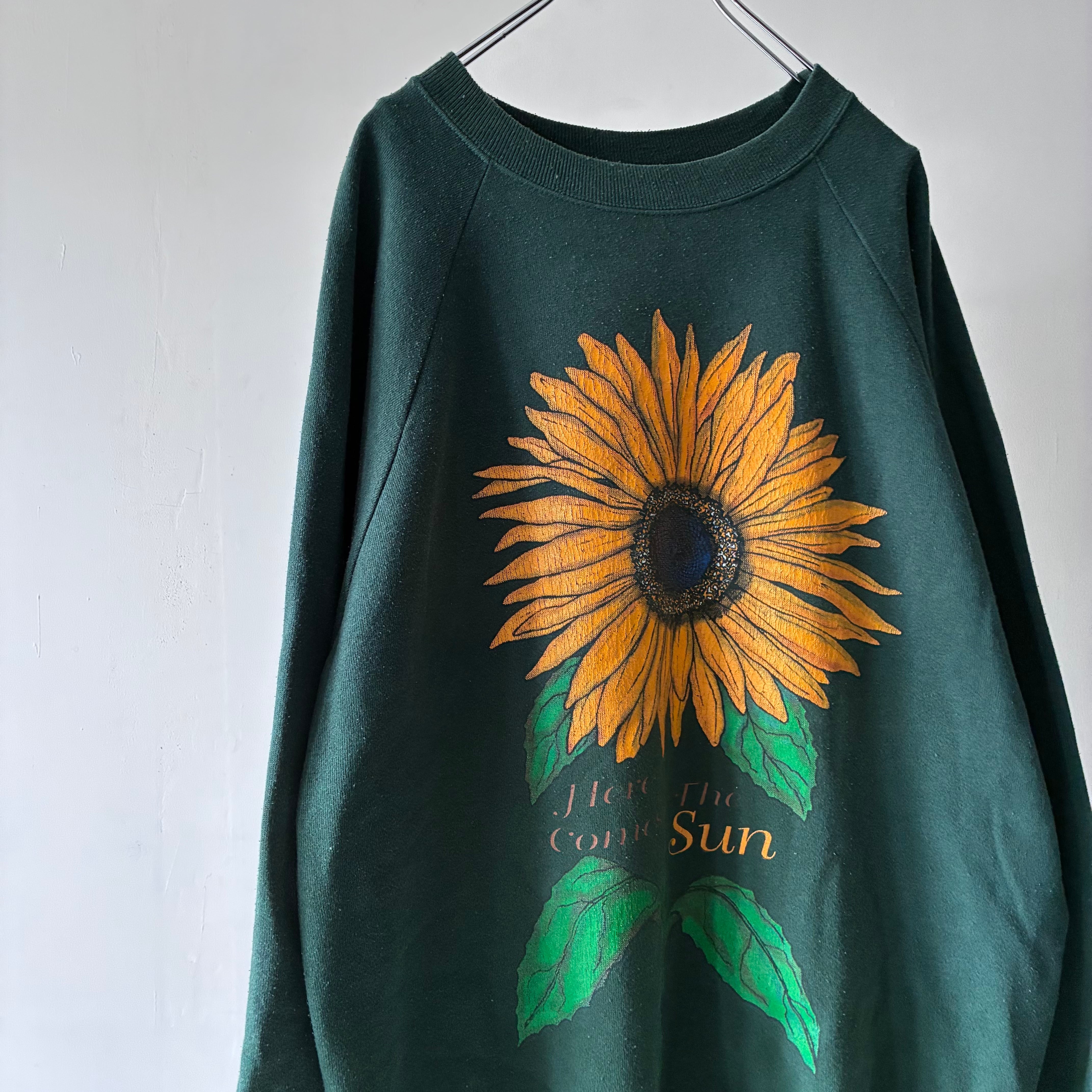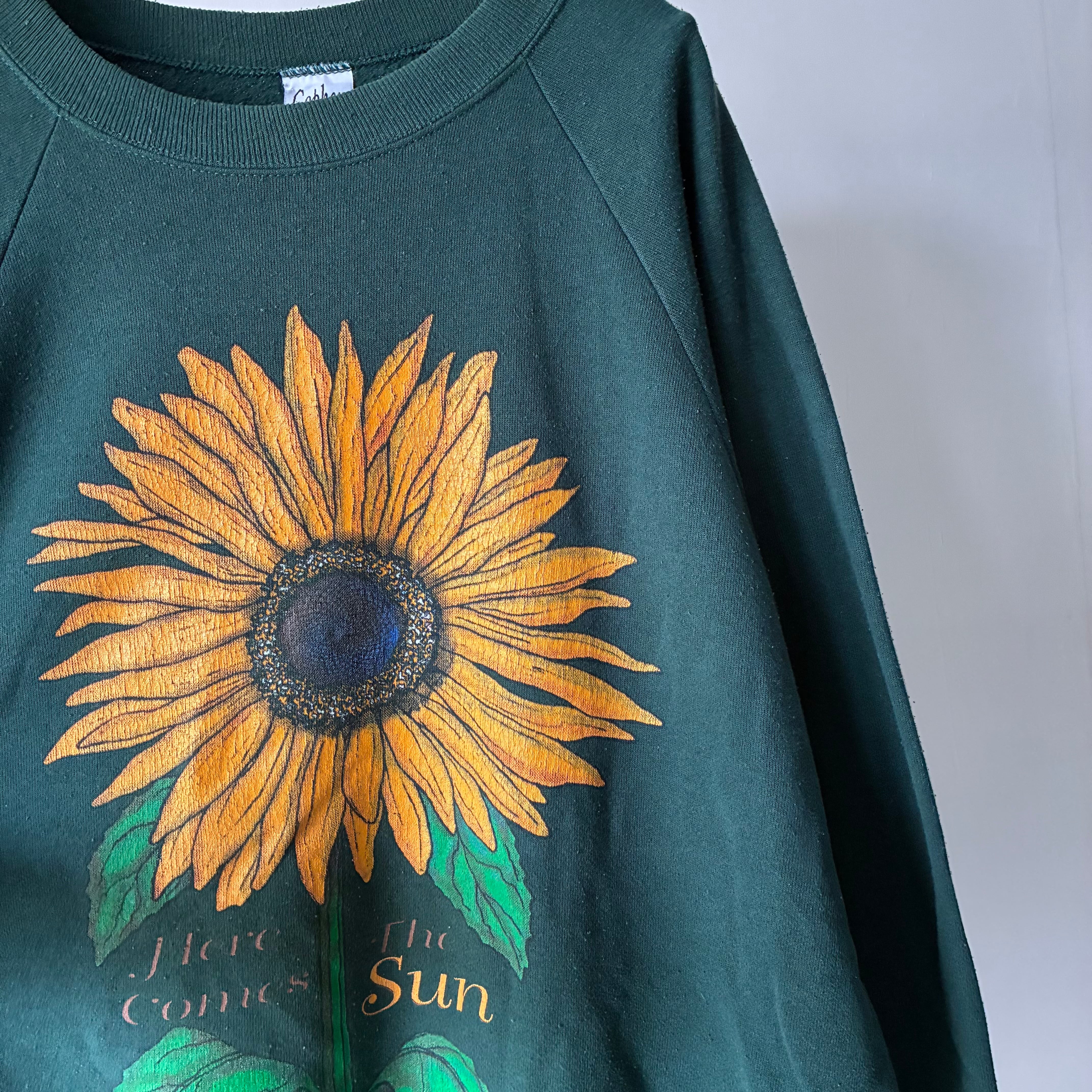 90’s USA製の雰囲気が色濃く漂う、ひまわりプリントスウェット