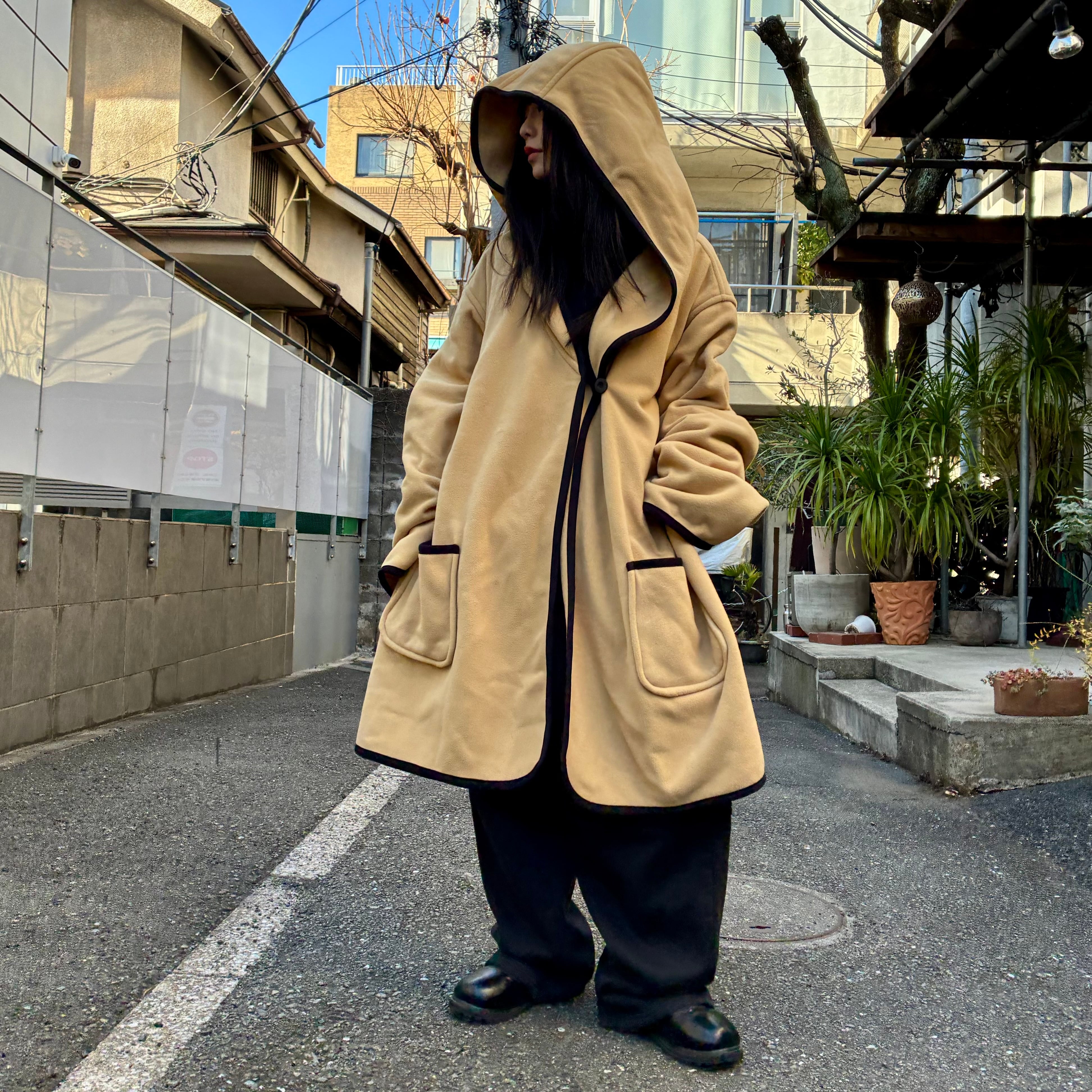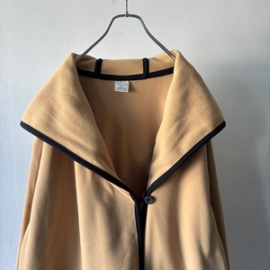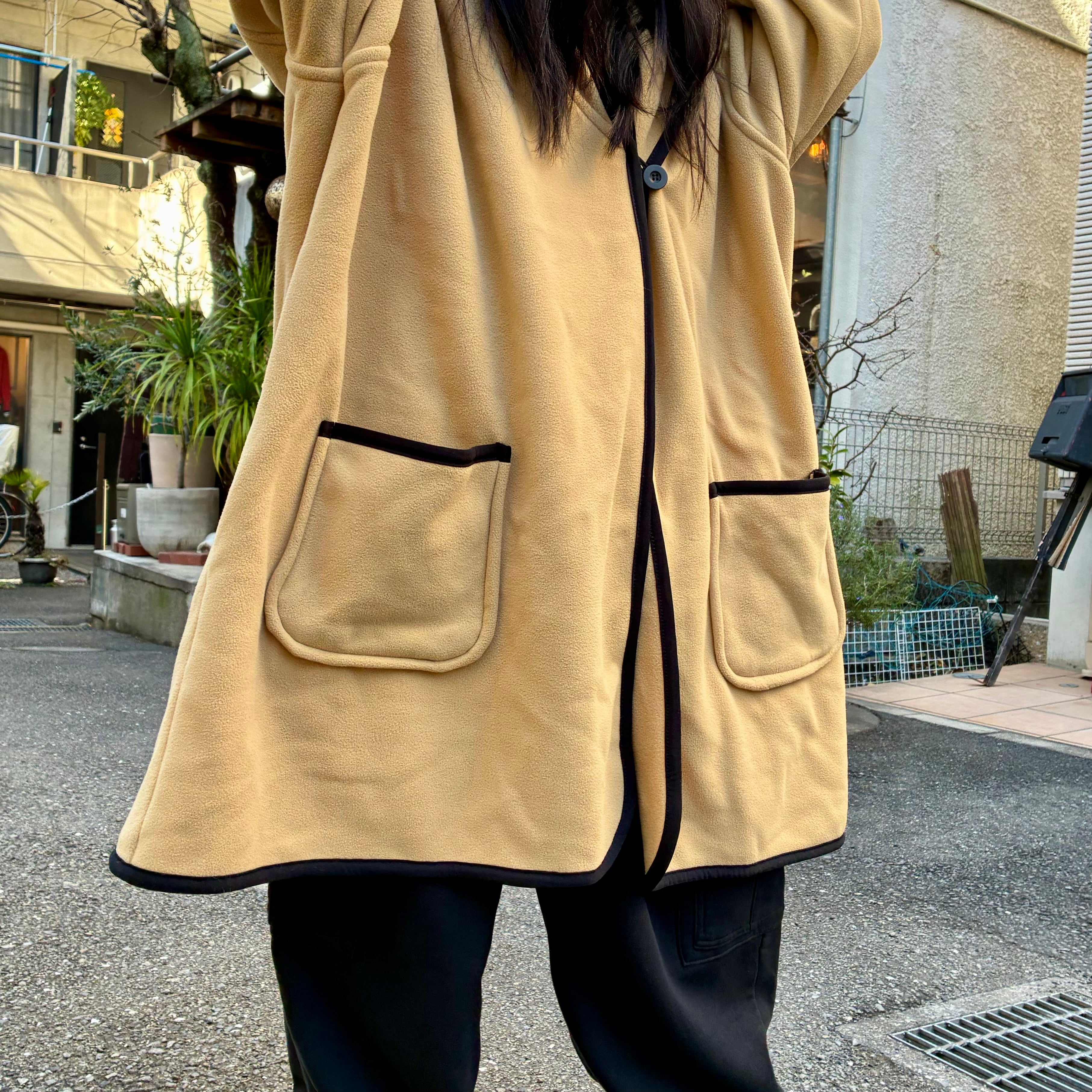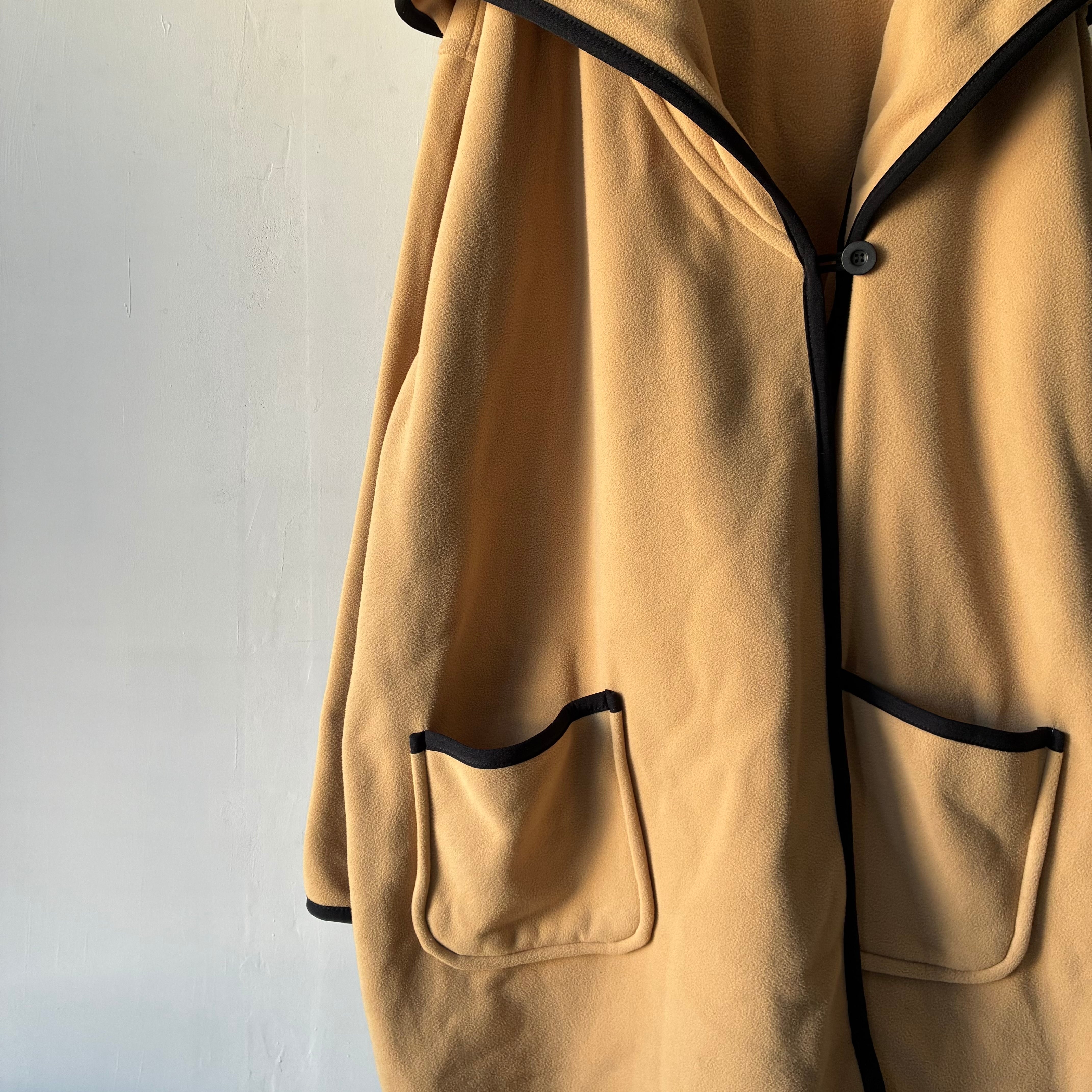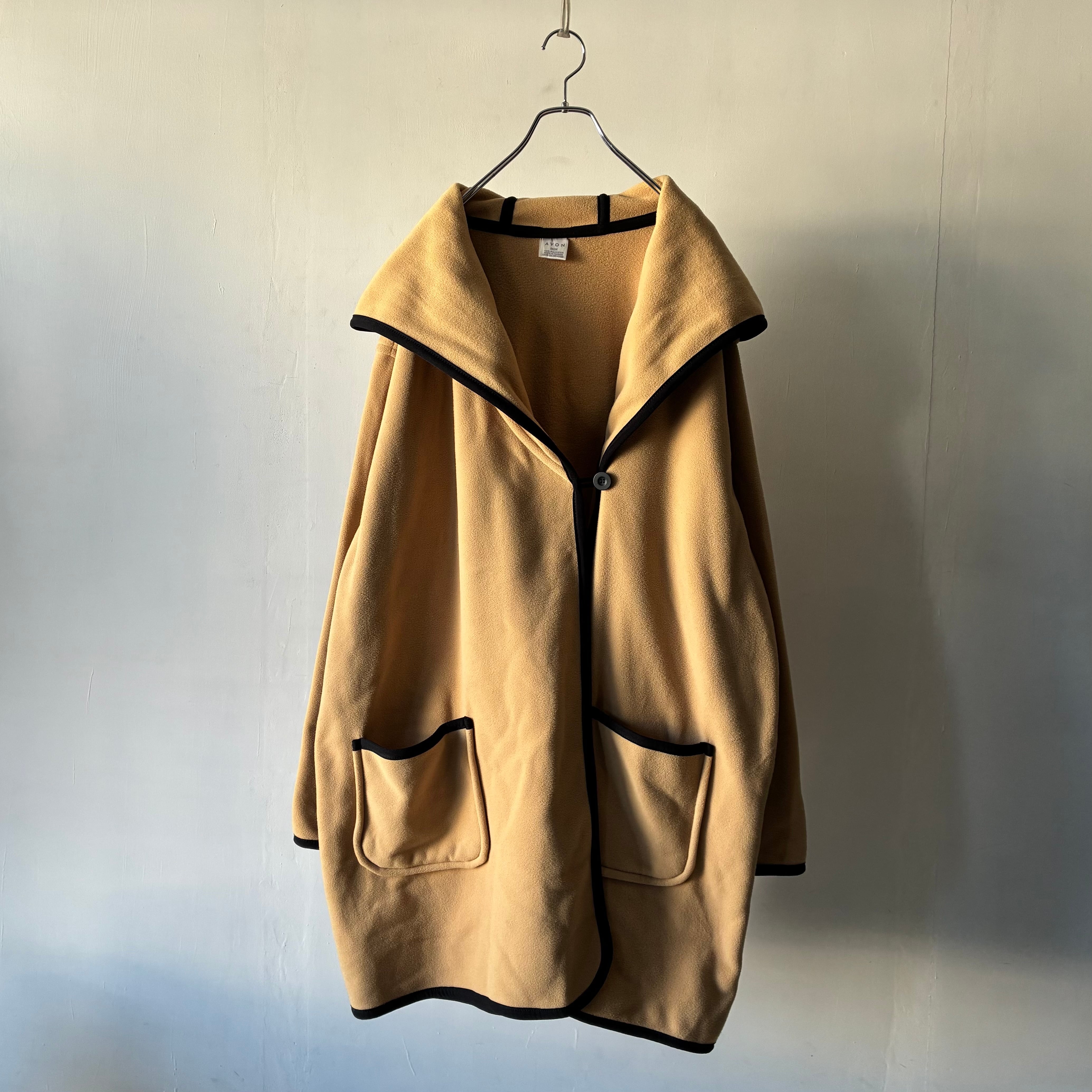 ボタン1つ留めのラップジャケットのような作りでオーバーサイズながらエレガントな雰囲気のある1着