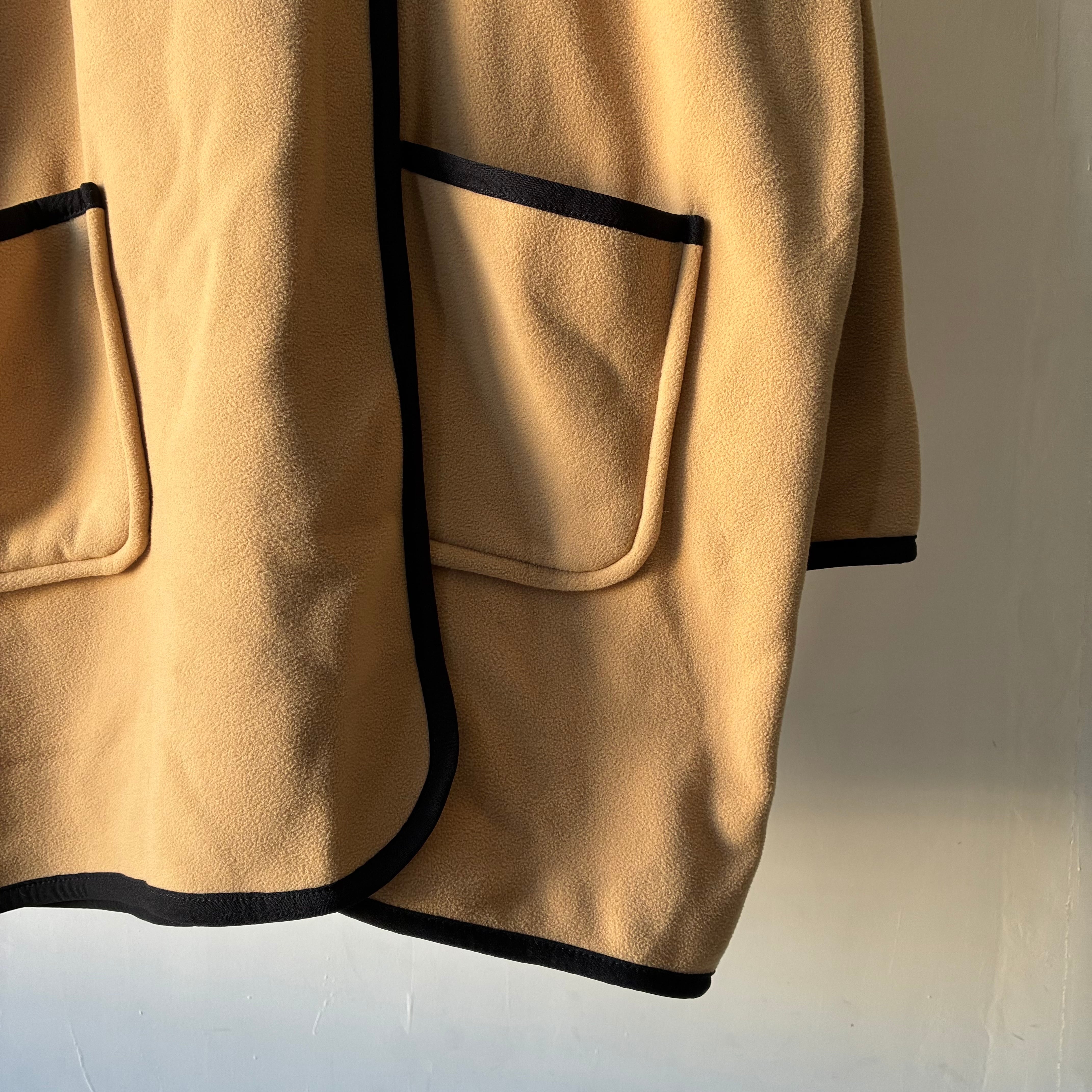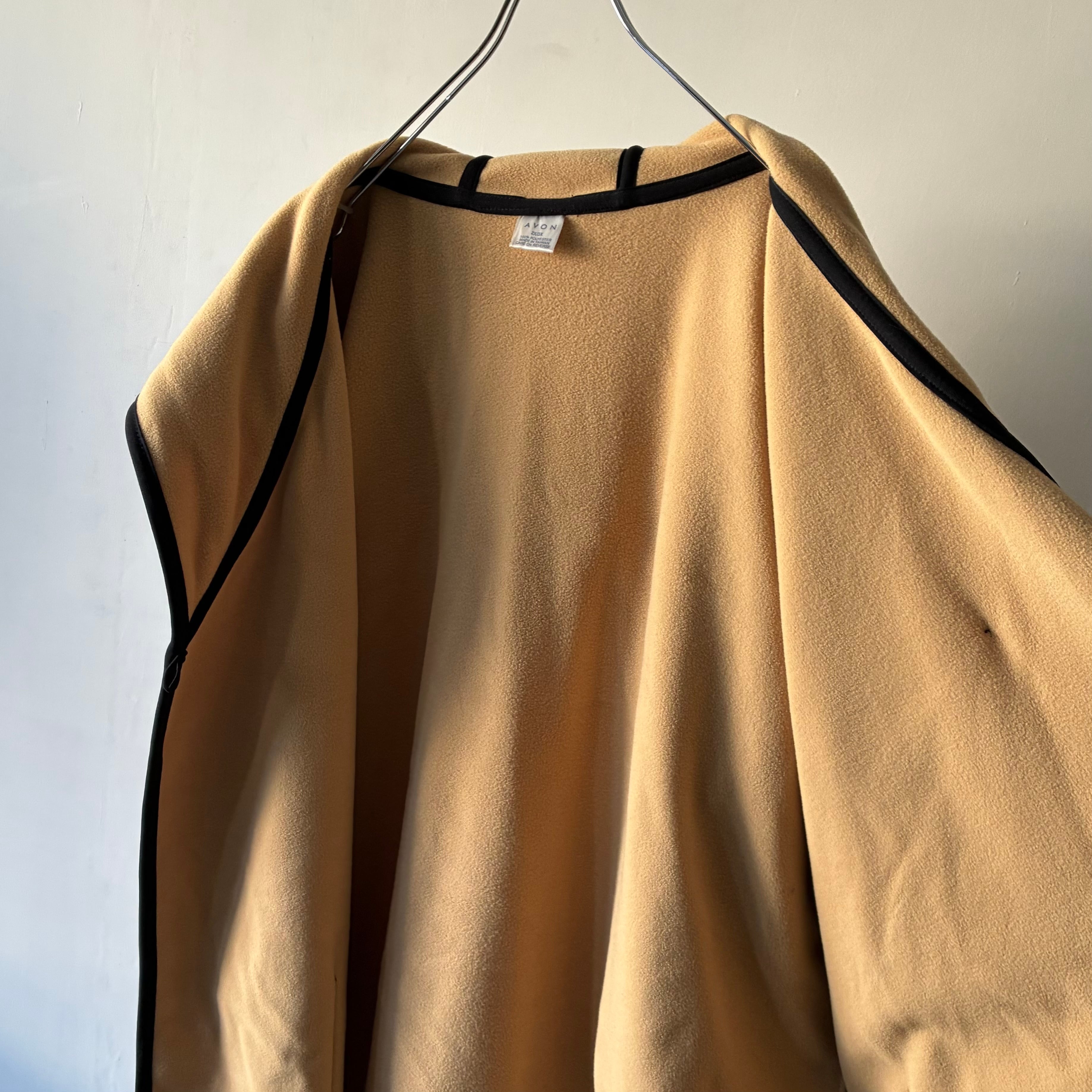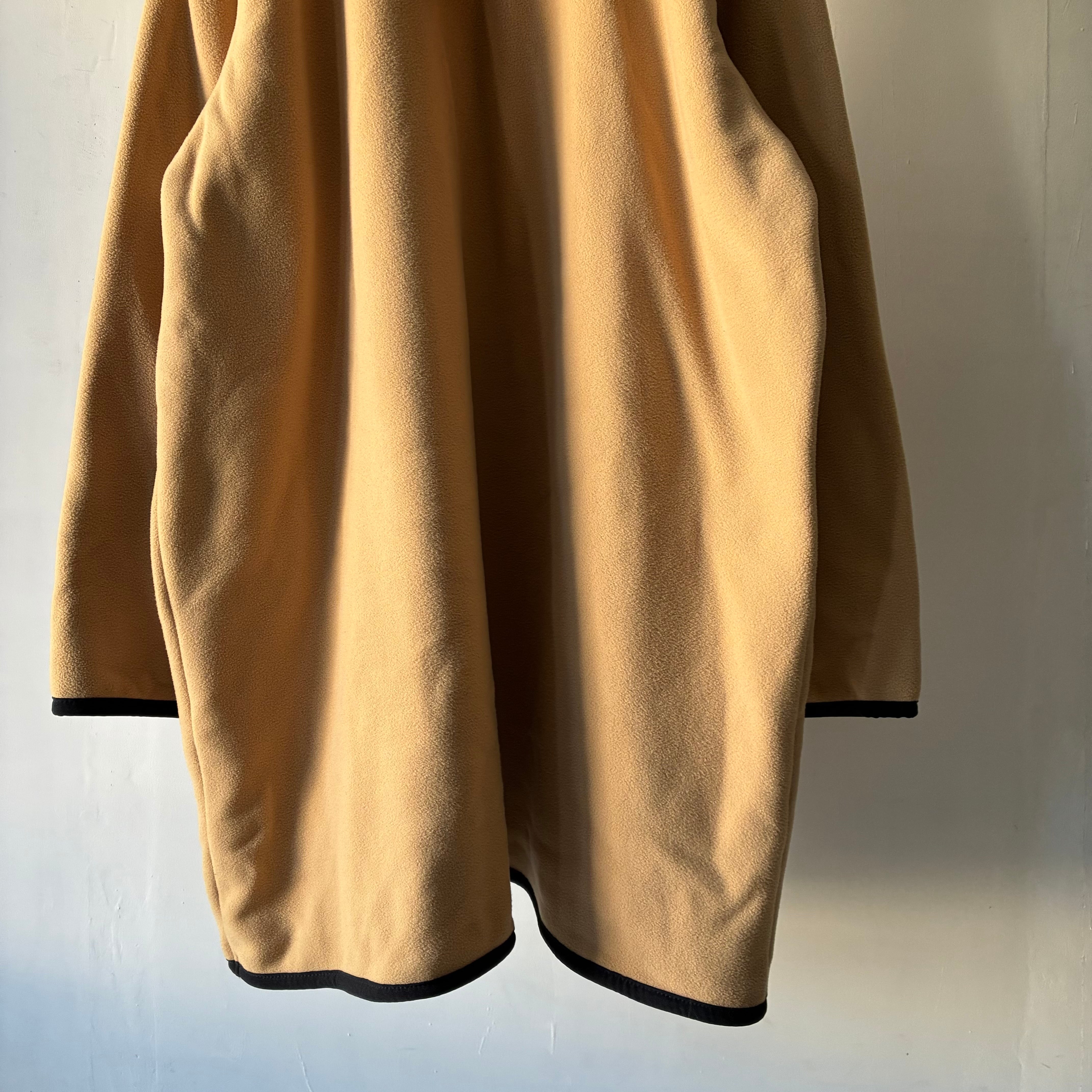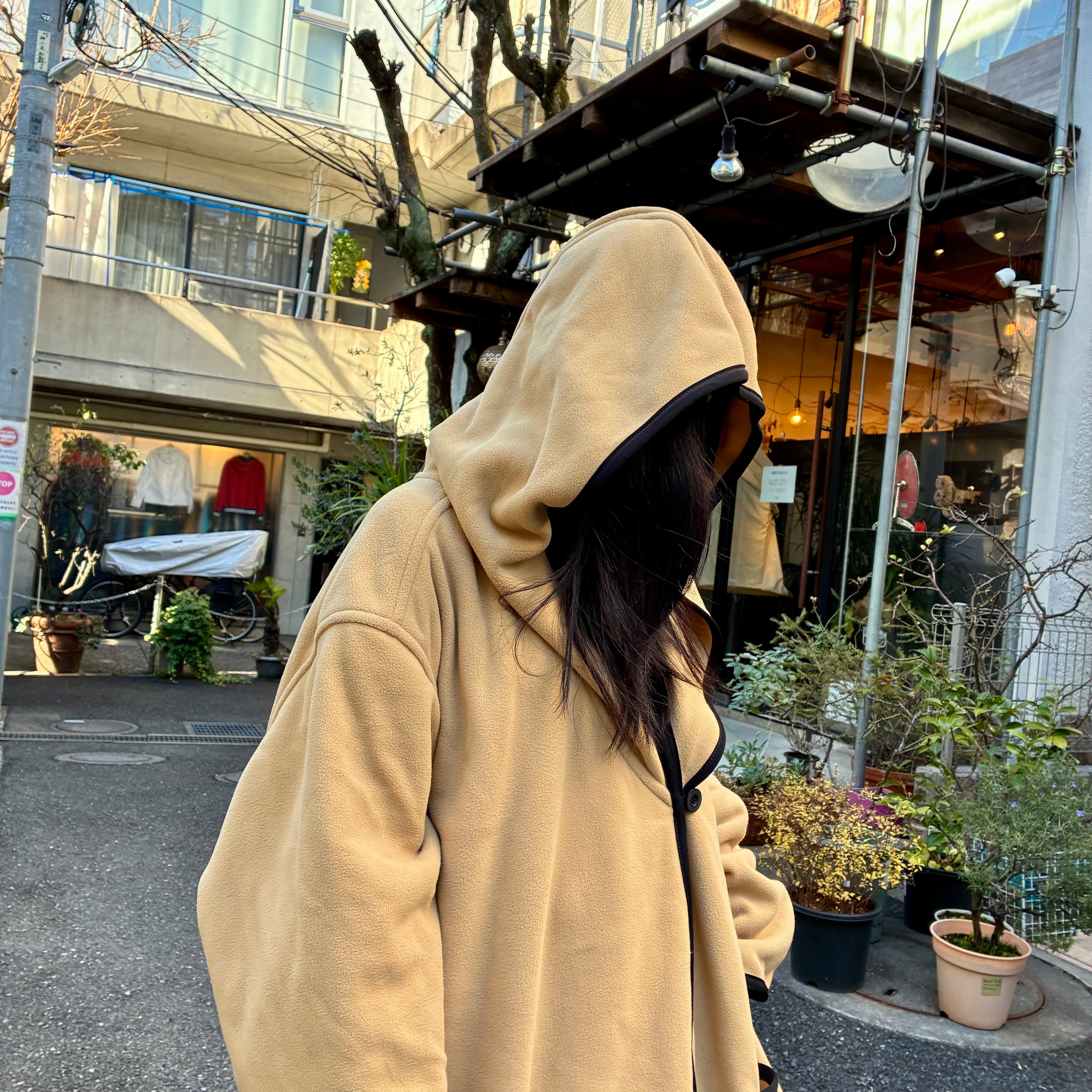 ボタン1つ留めのラップジャケットのような作りでオーバーサイズながらエレガントな雰囲気のある1着