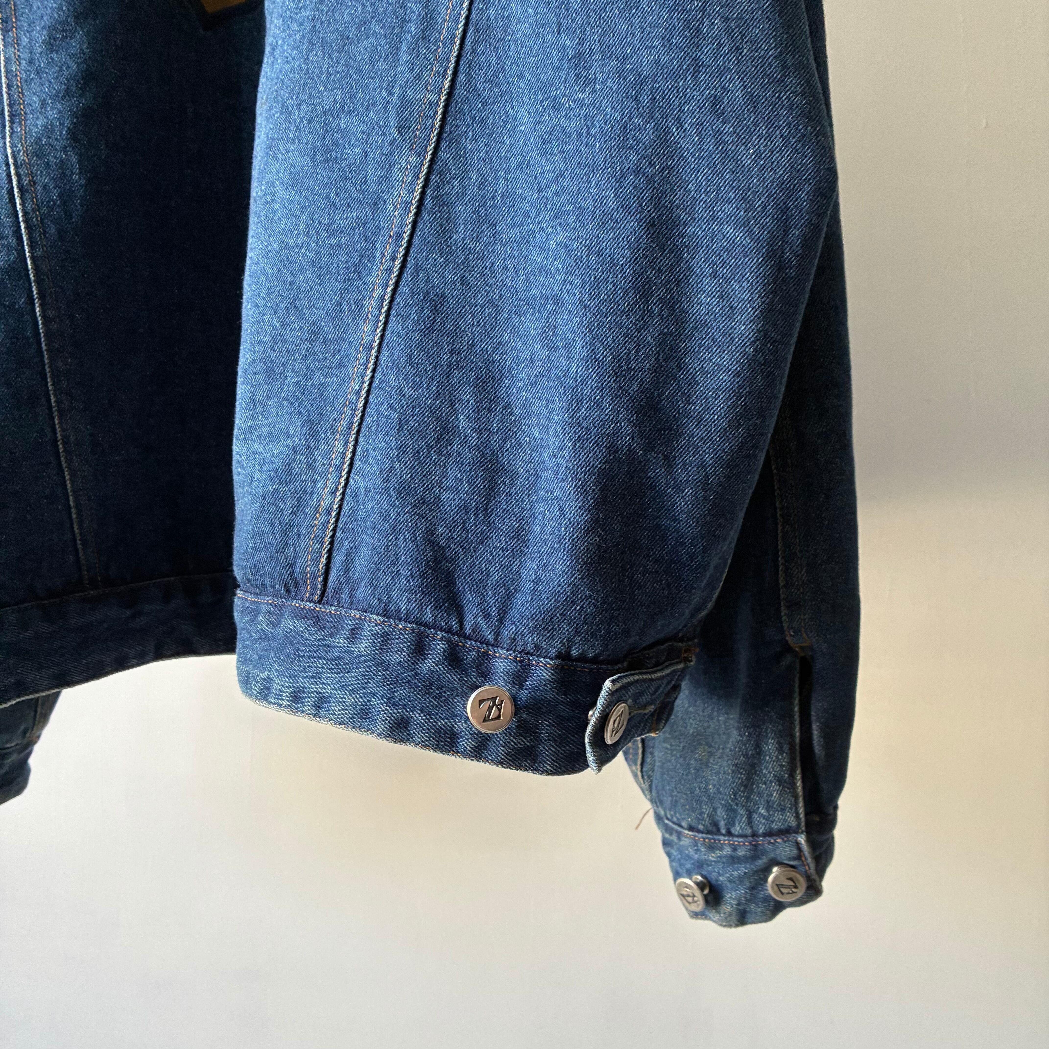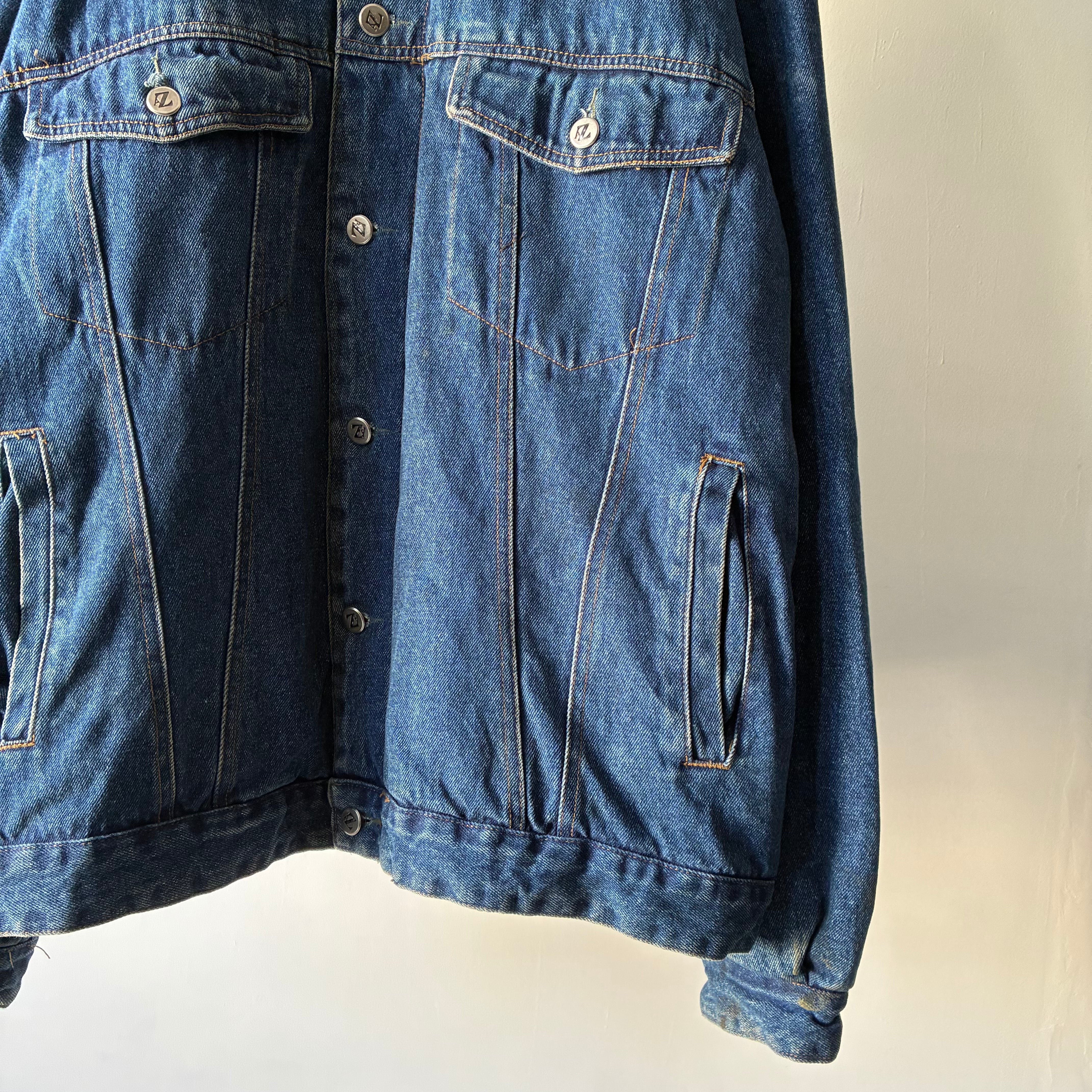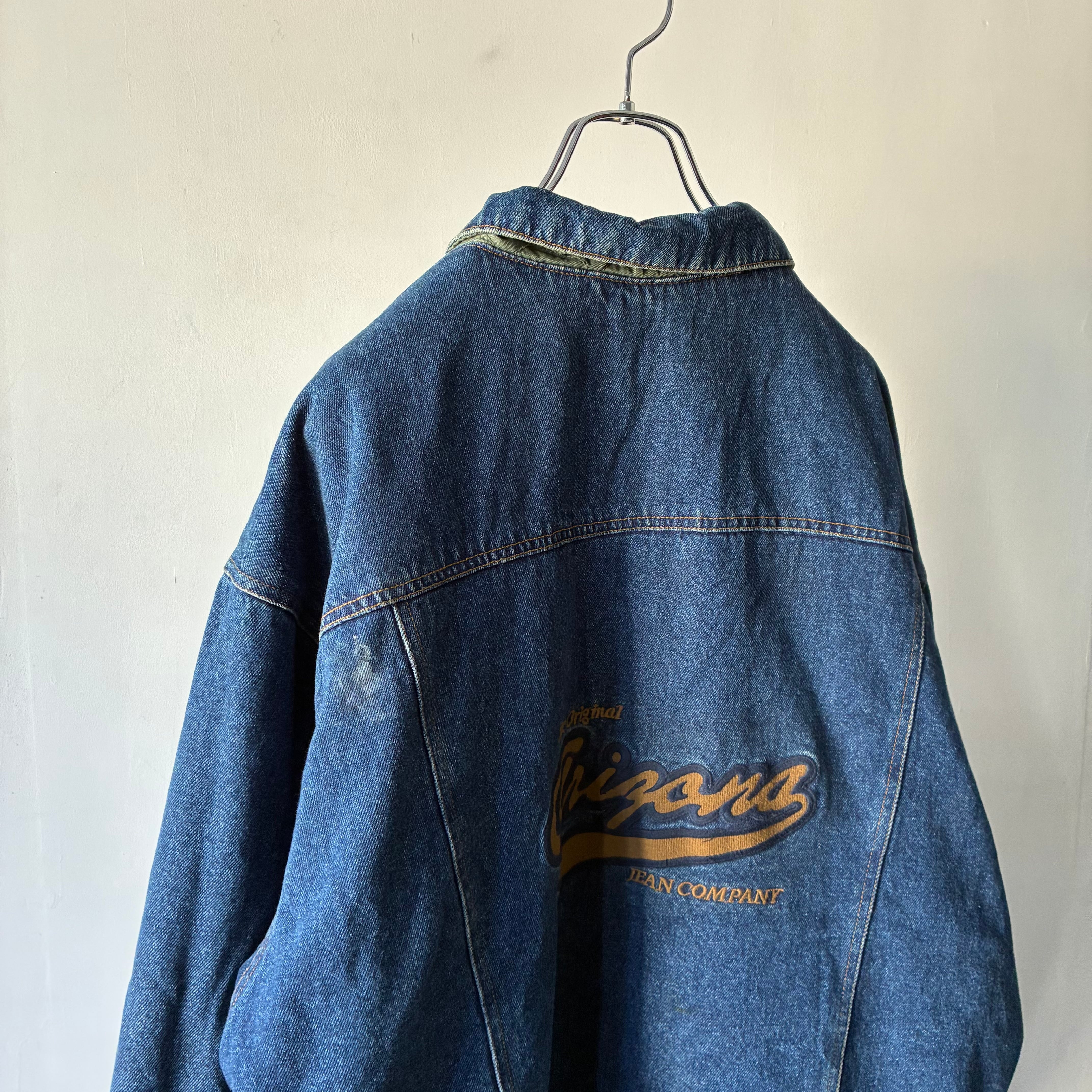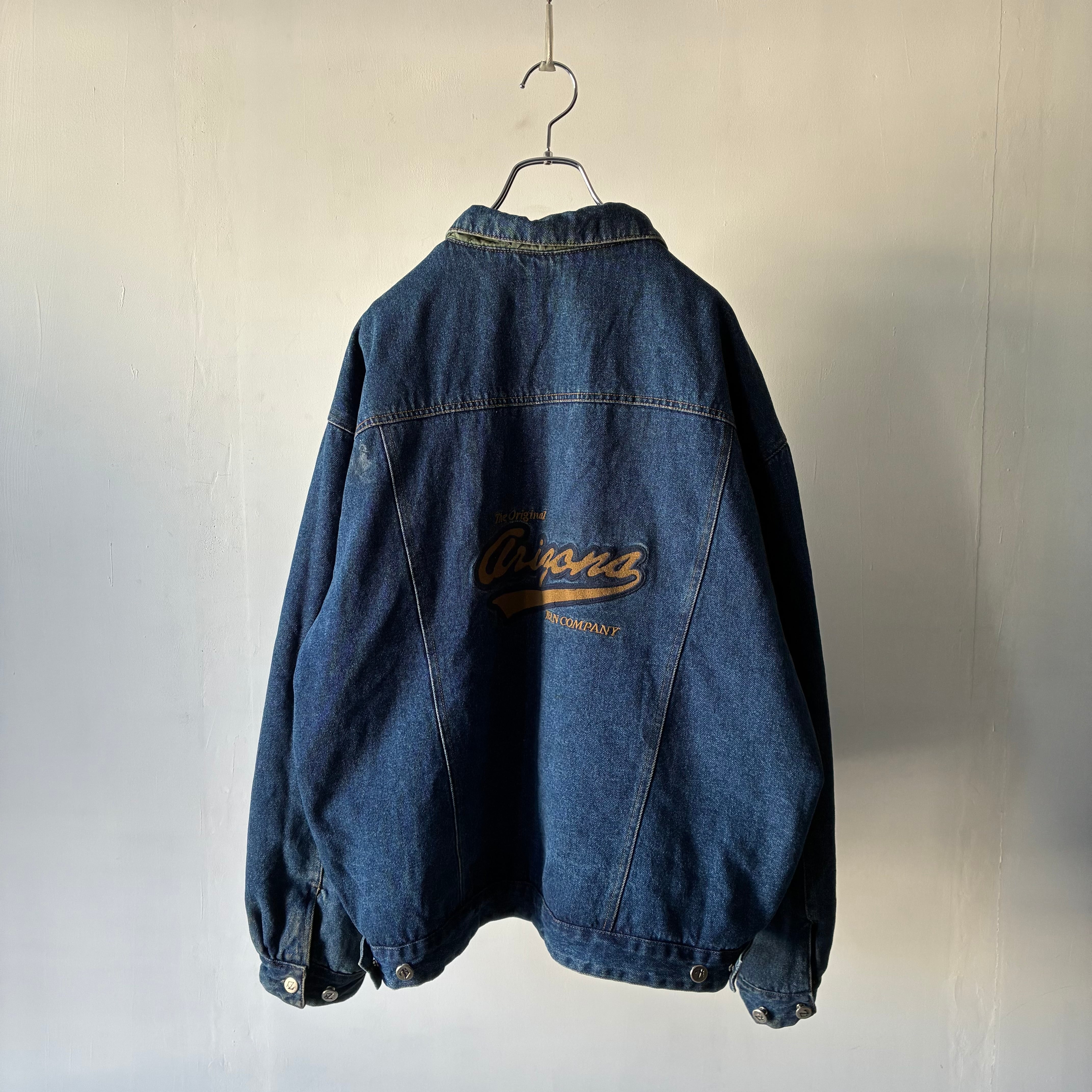 スタジャンライクなバックのロゴデザインがスタイリッシュなデニムトラッカージャケット