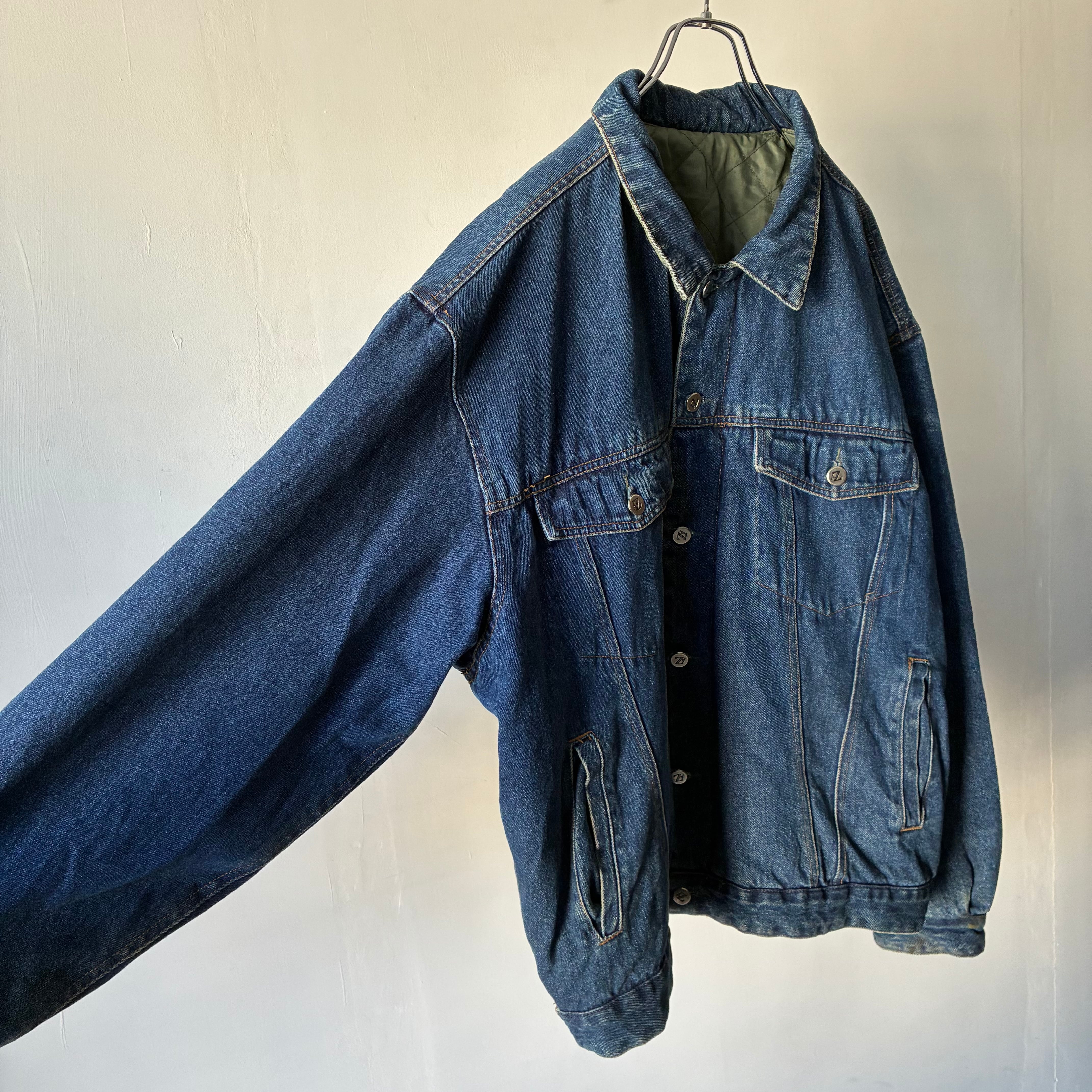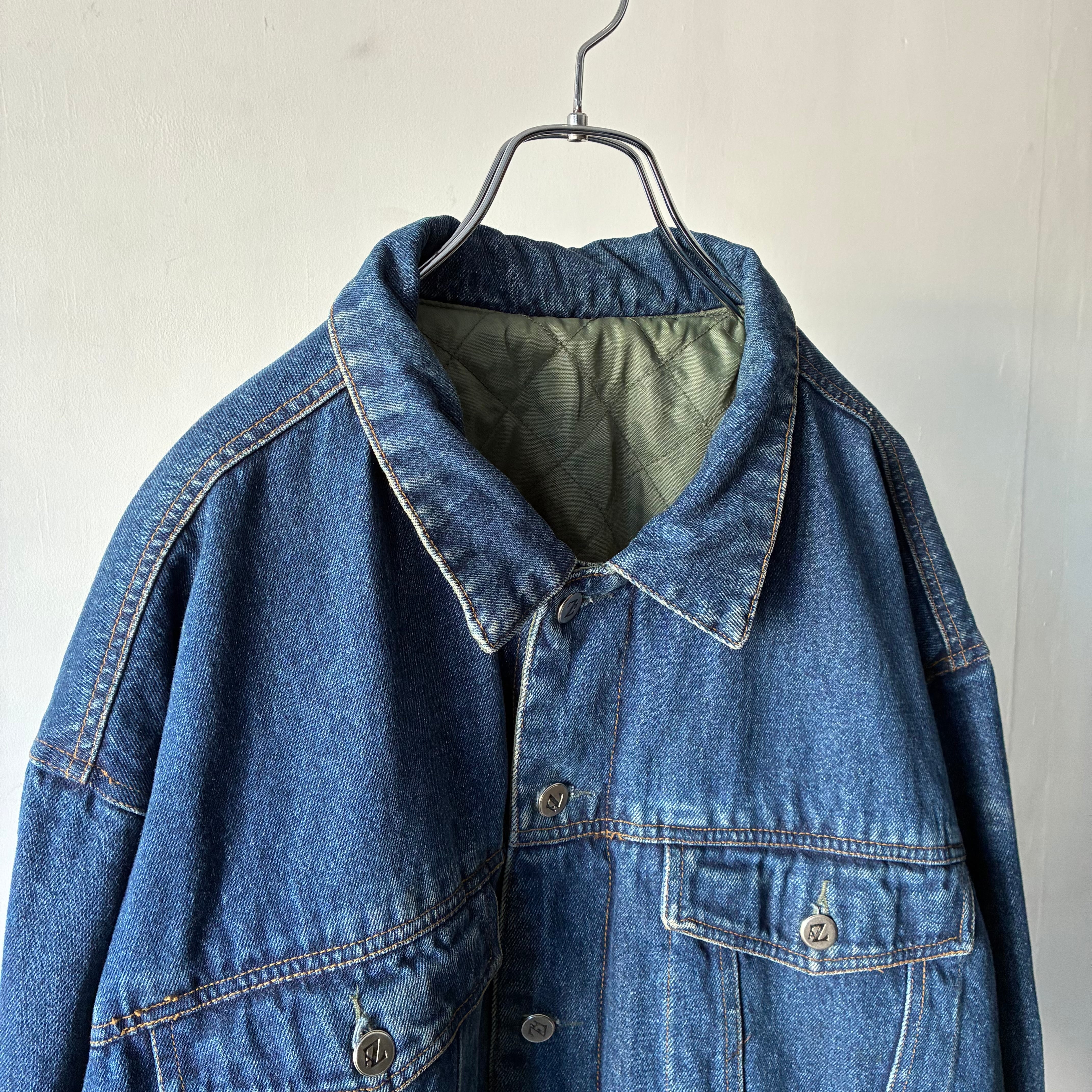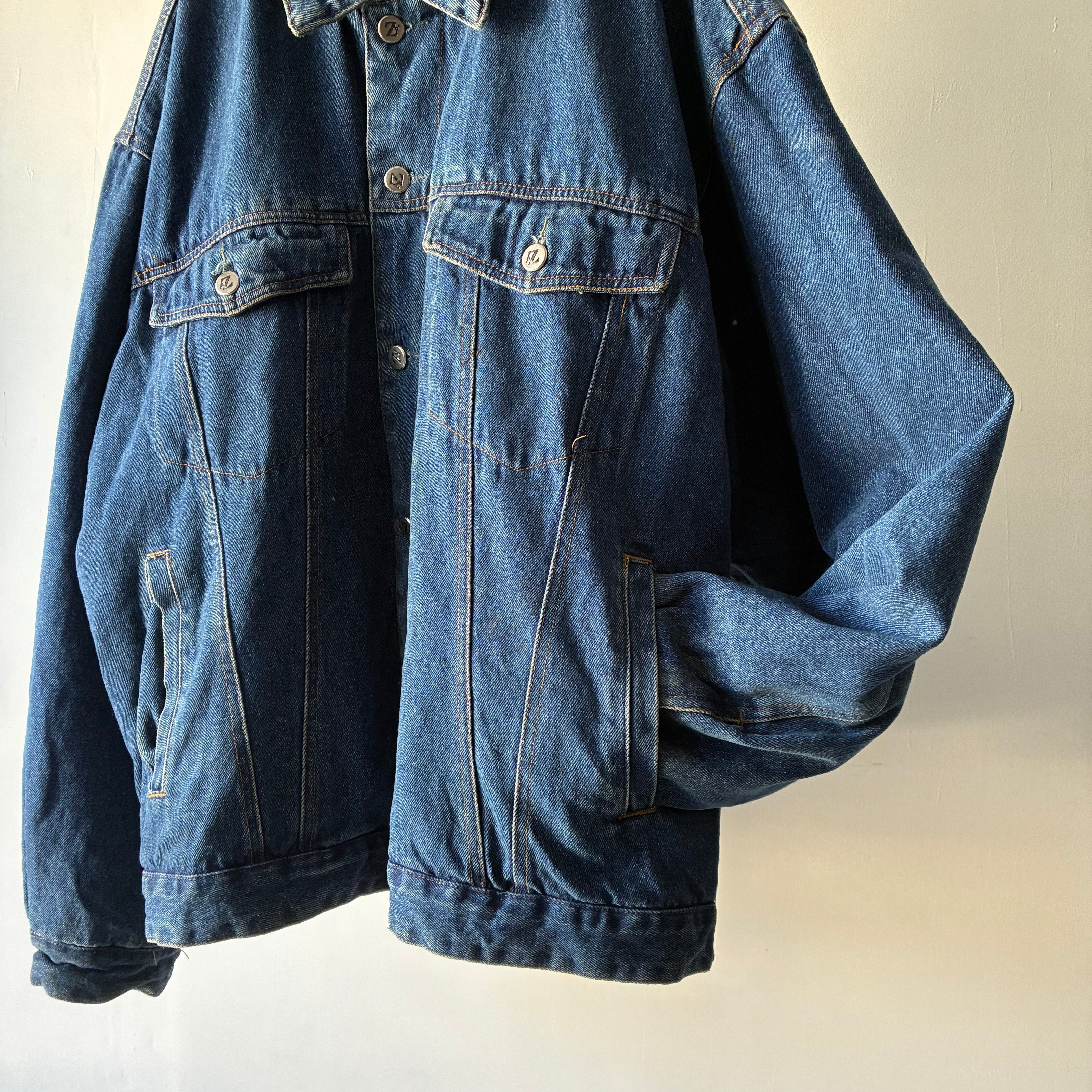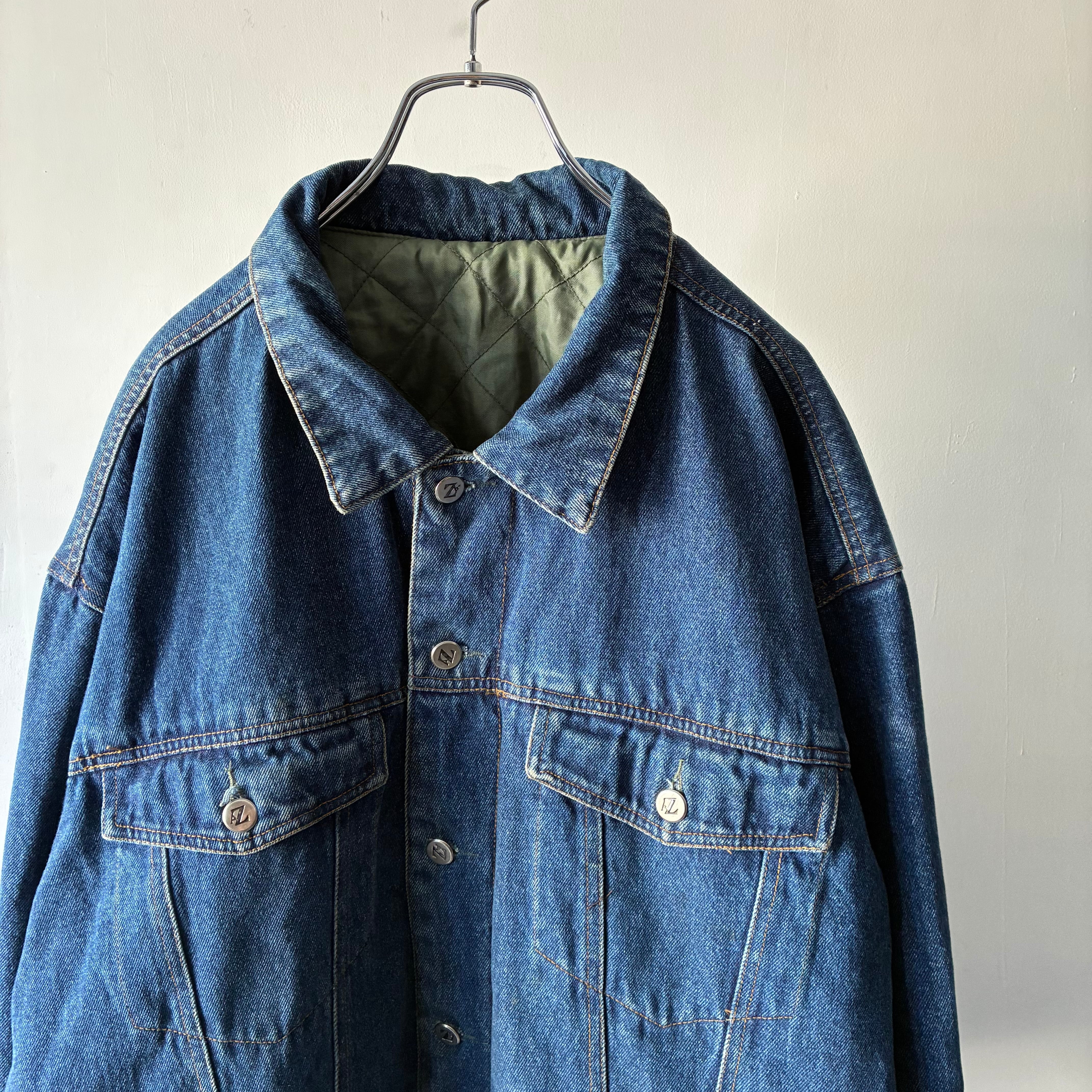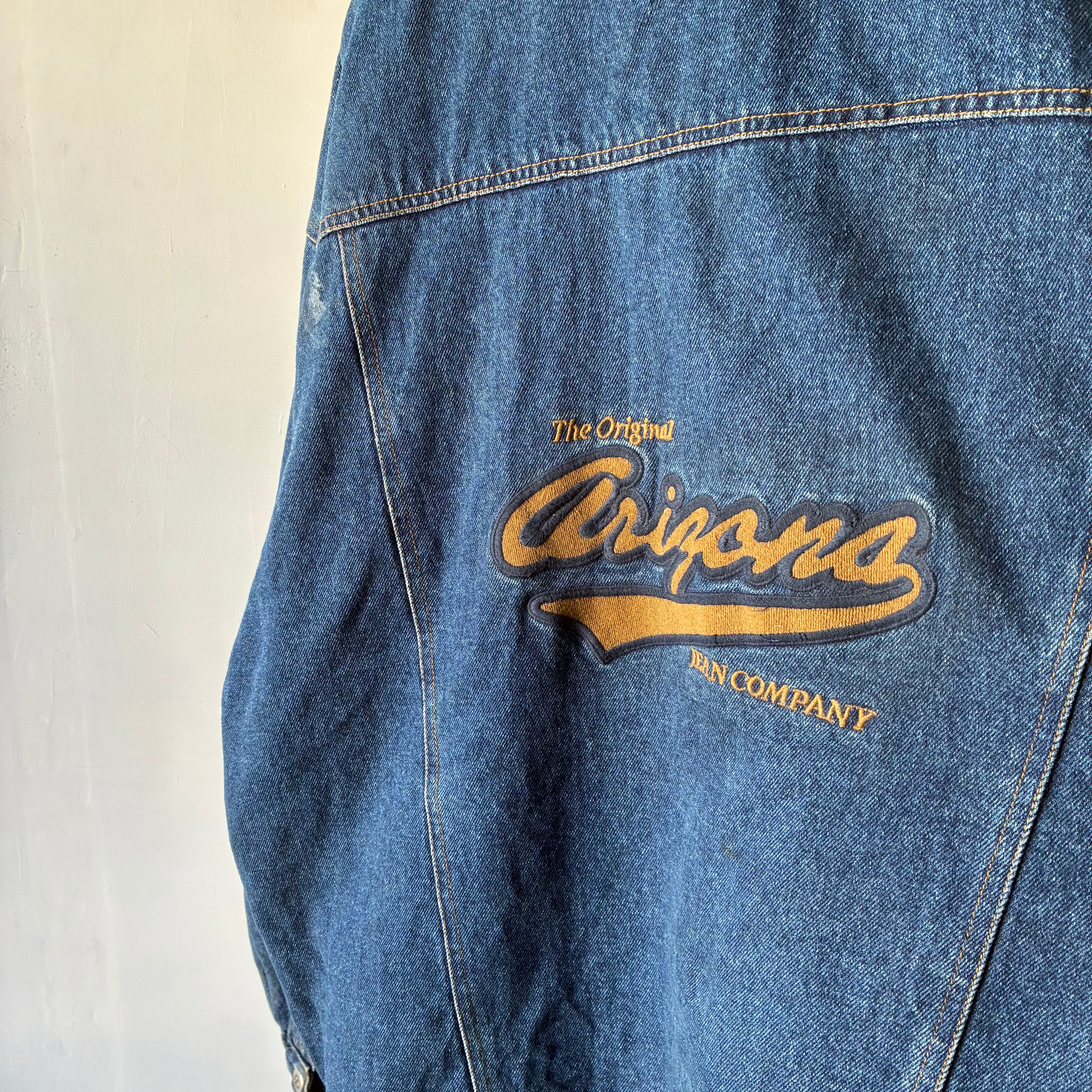 スタジャンライクなバックのロゴデザインがスタイリッシュなデニムトラッカージャケット