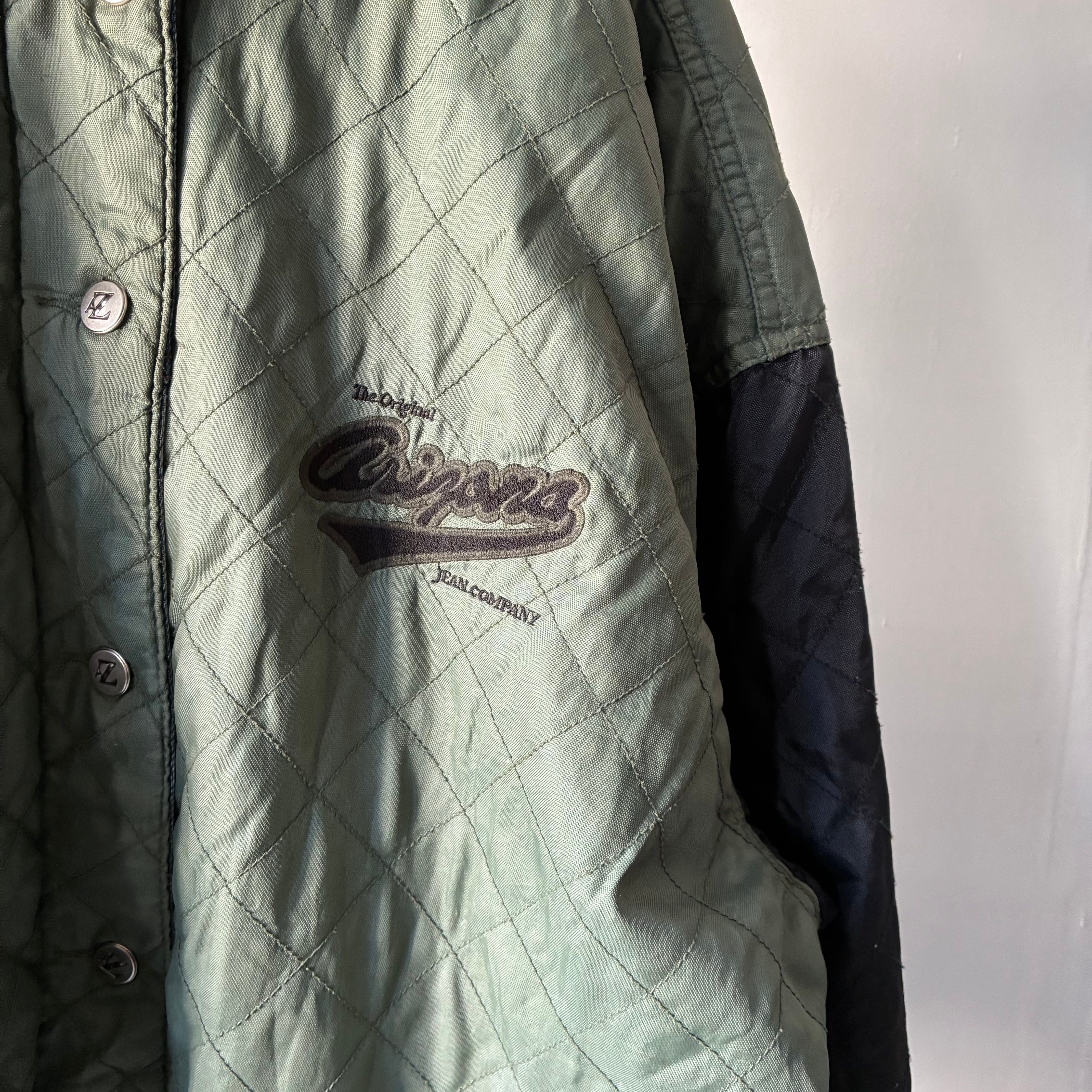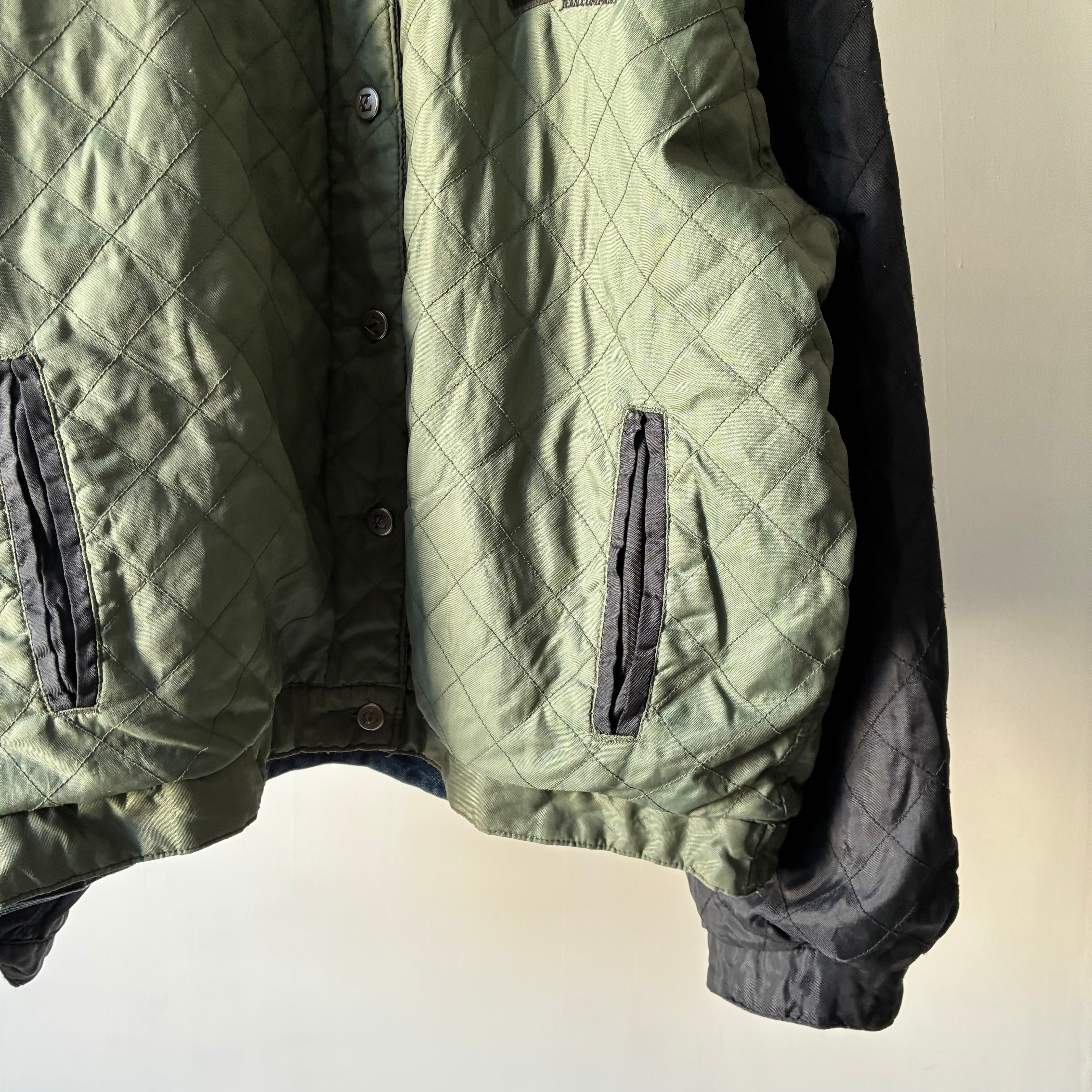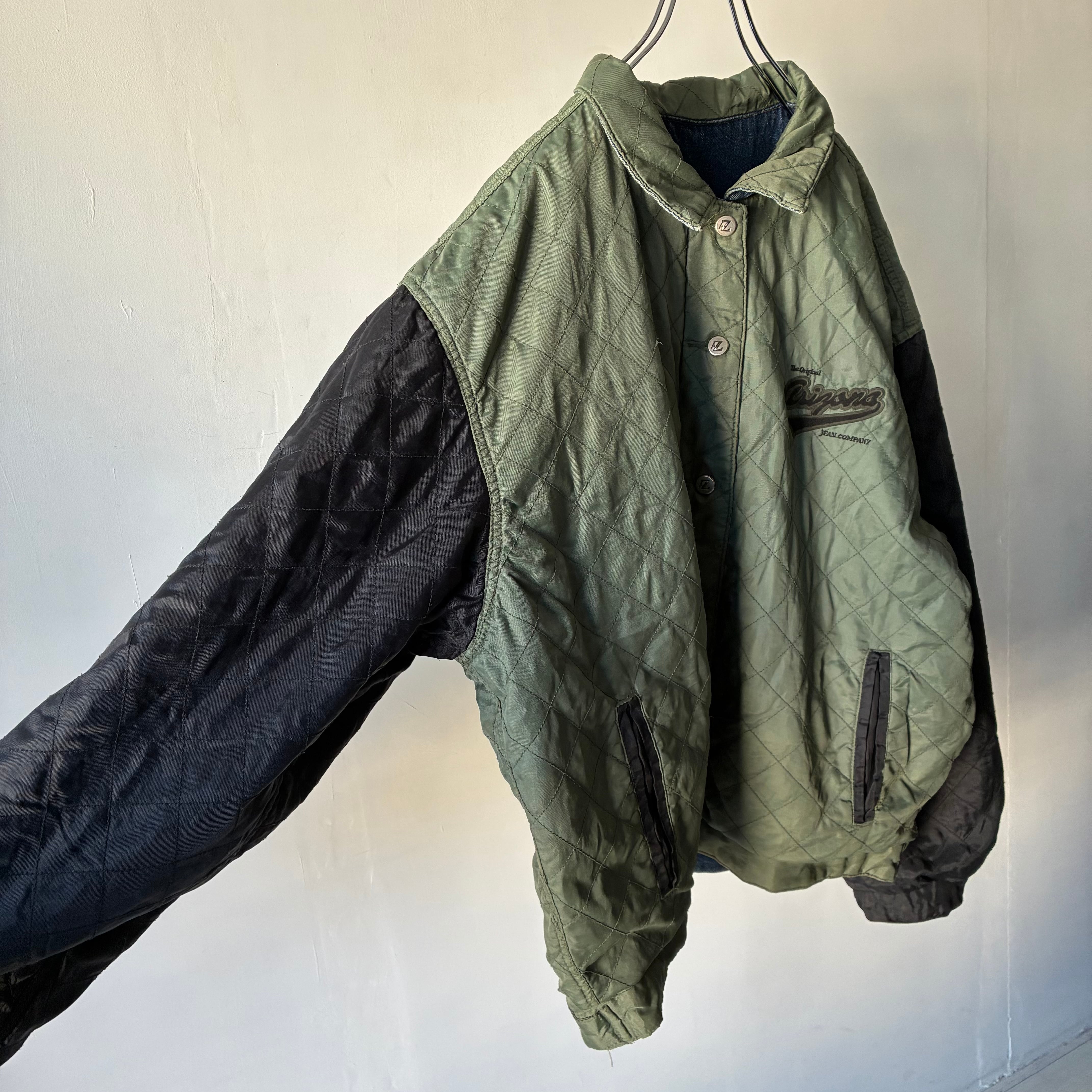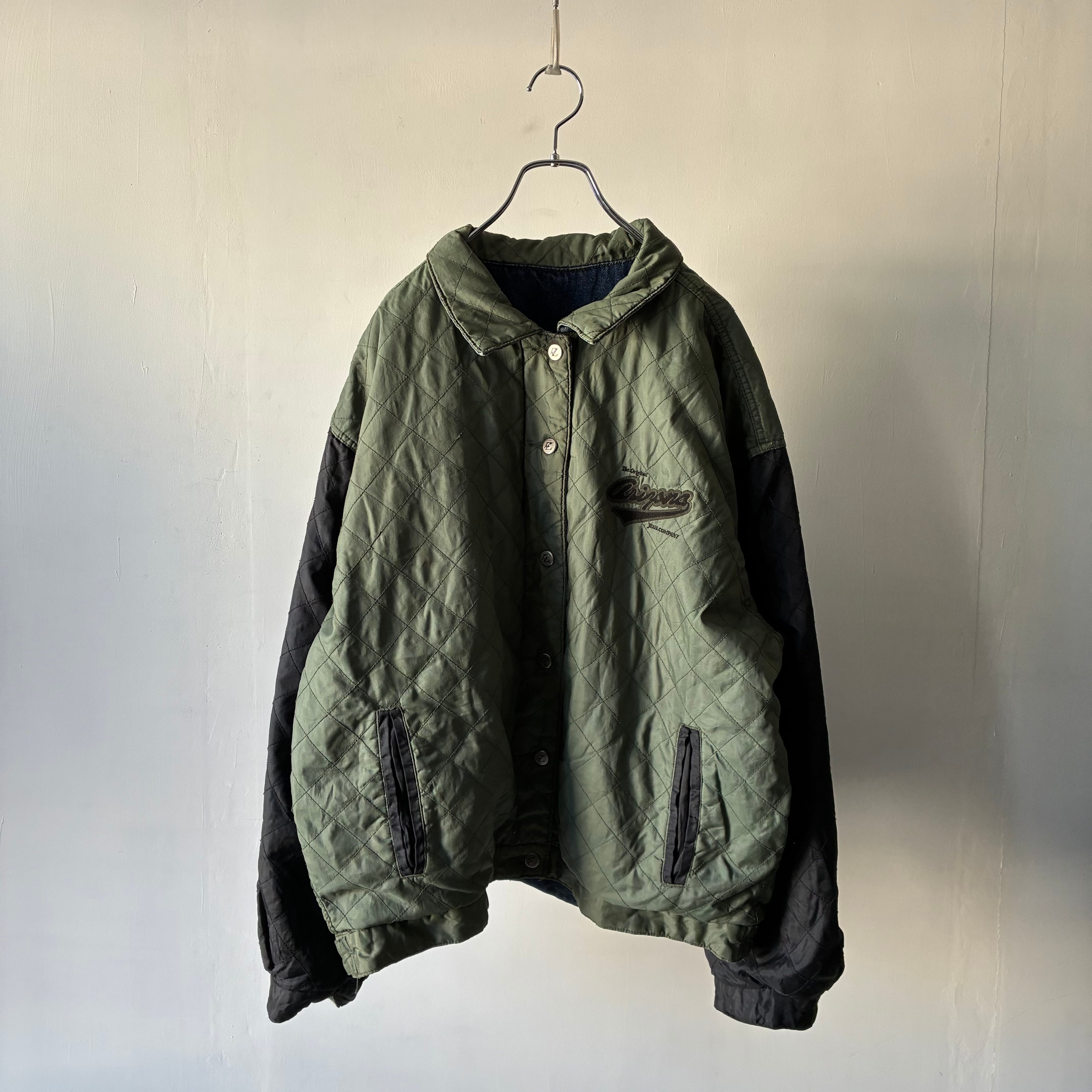 リバーシブル仕様の作りになっていてB面はバイカラーかつ胸元にロゴの入ったキルティングボディ