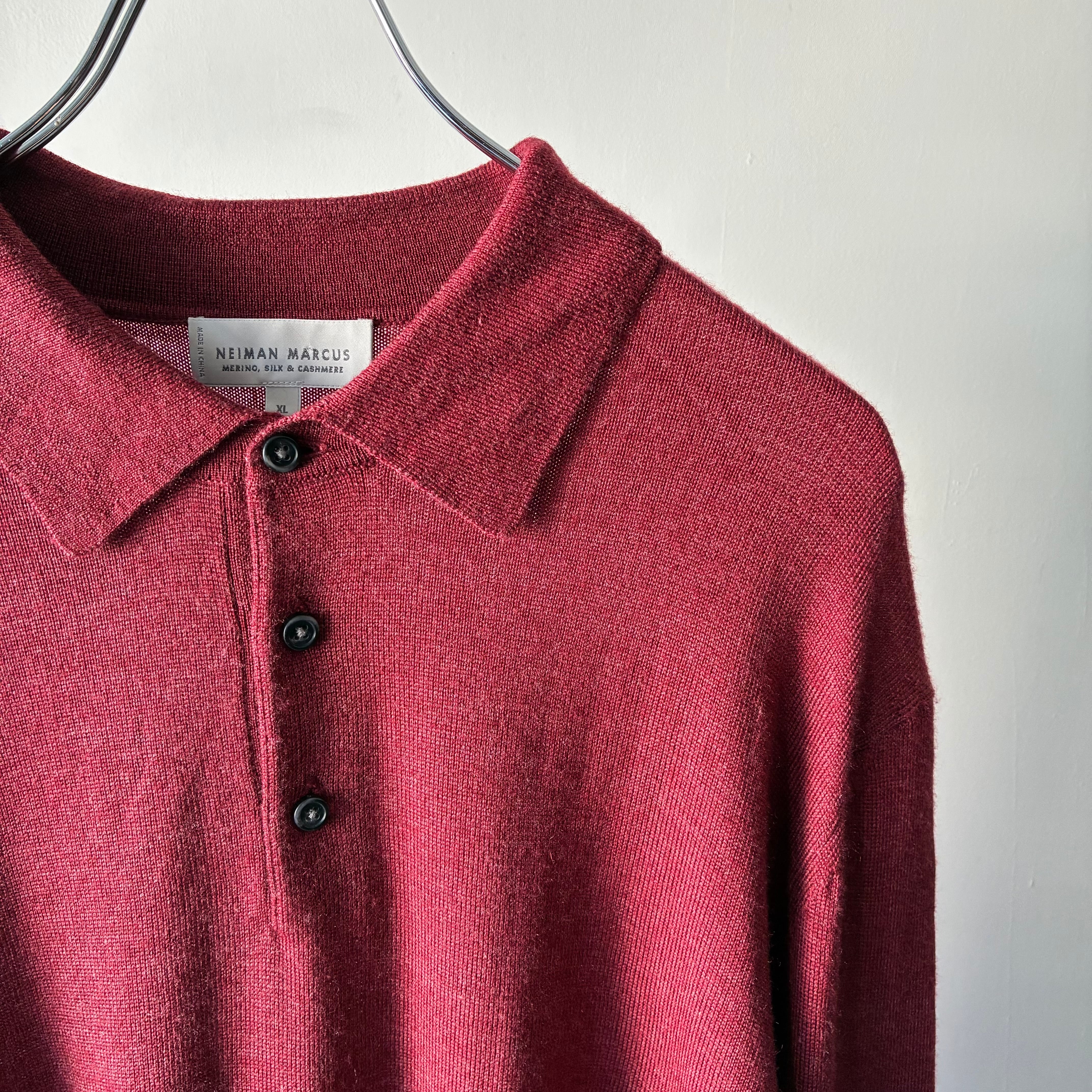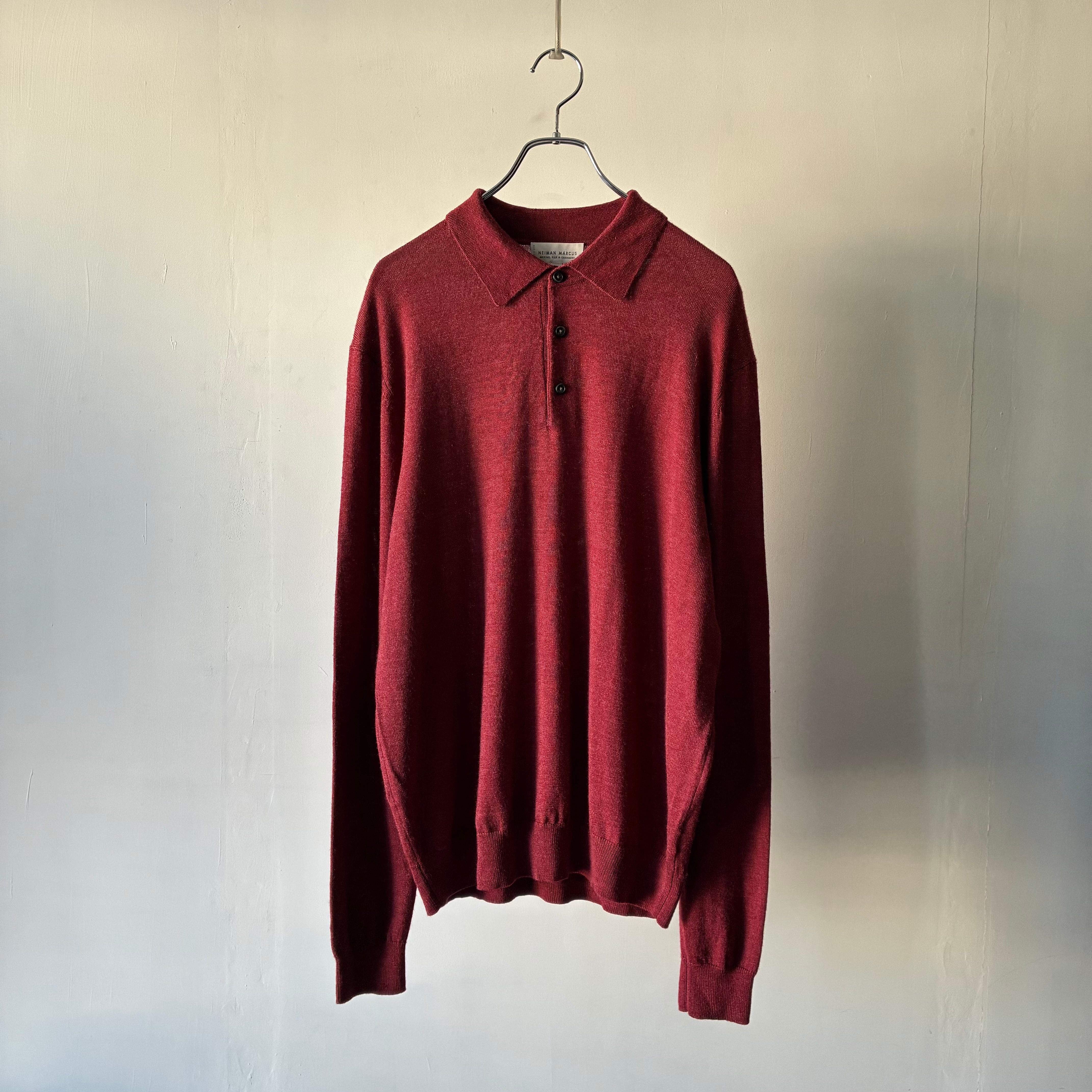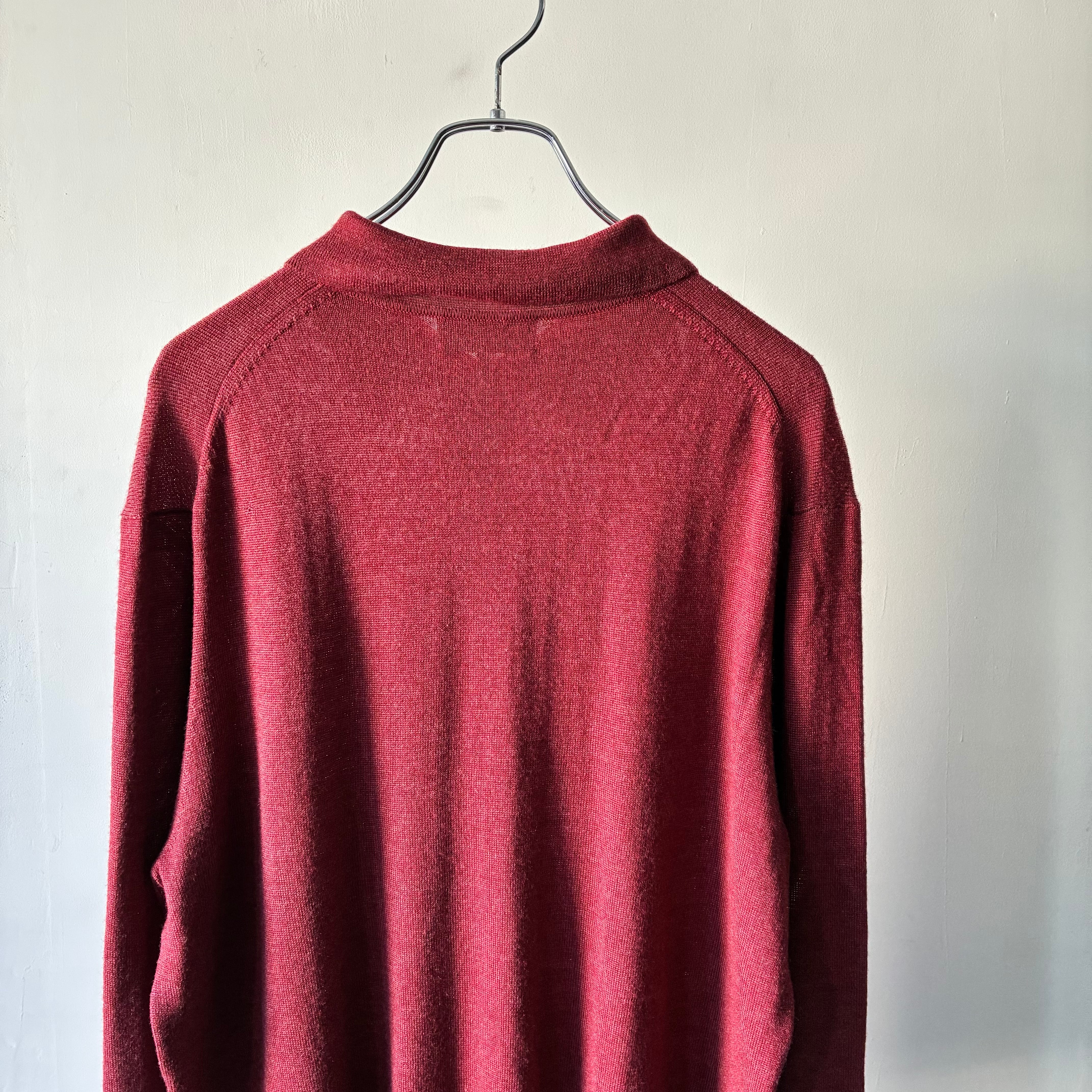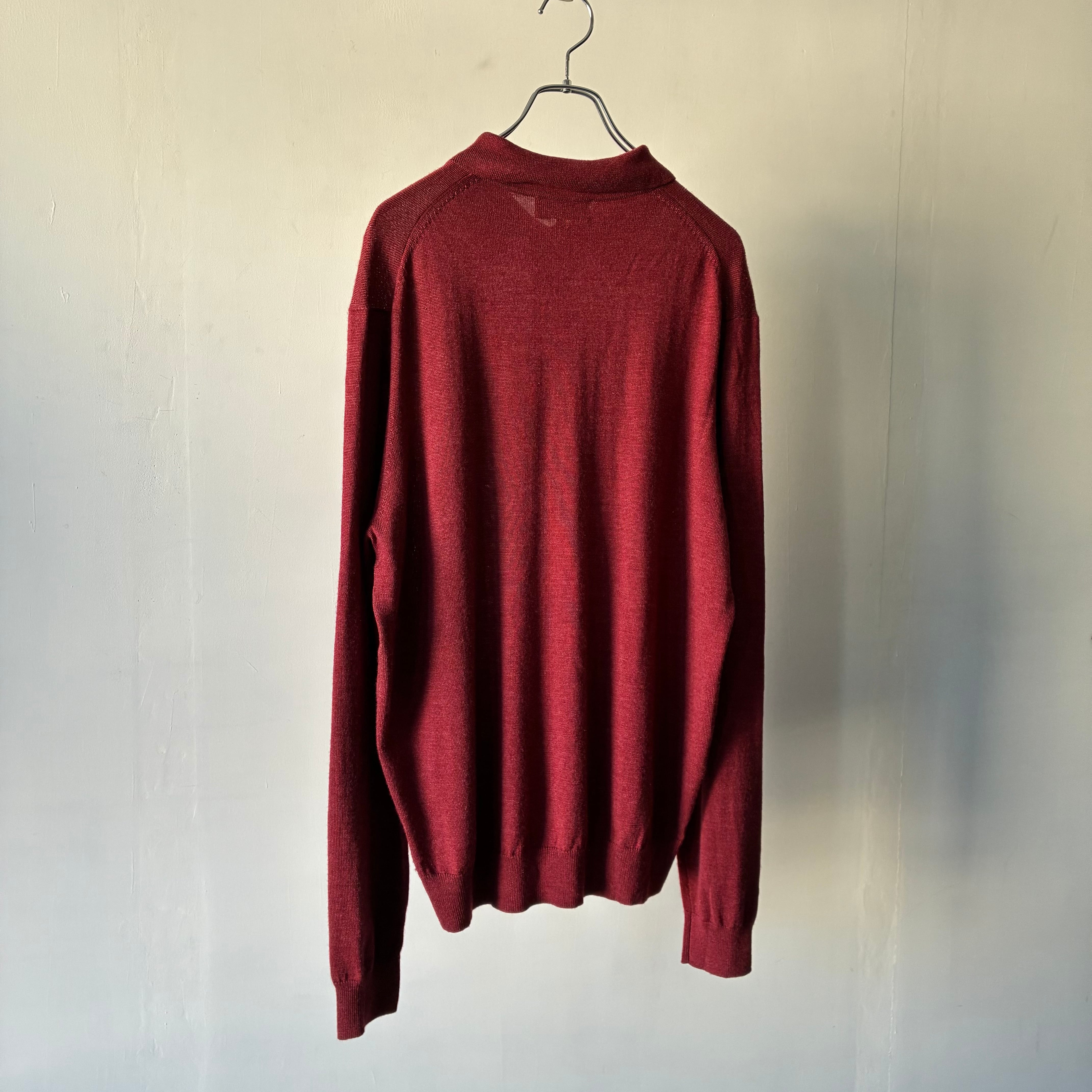 深みのあるレッドカラーが映えるシンプルかつ上品な印象のニットポロシャツ