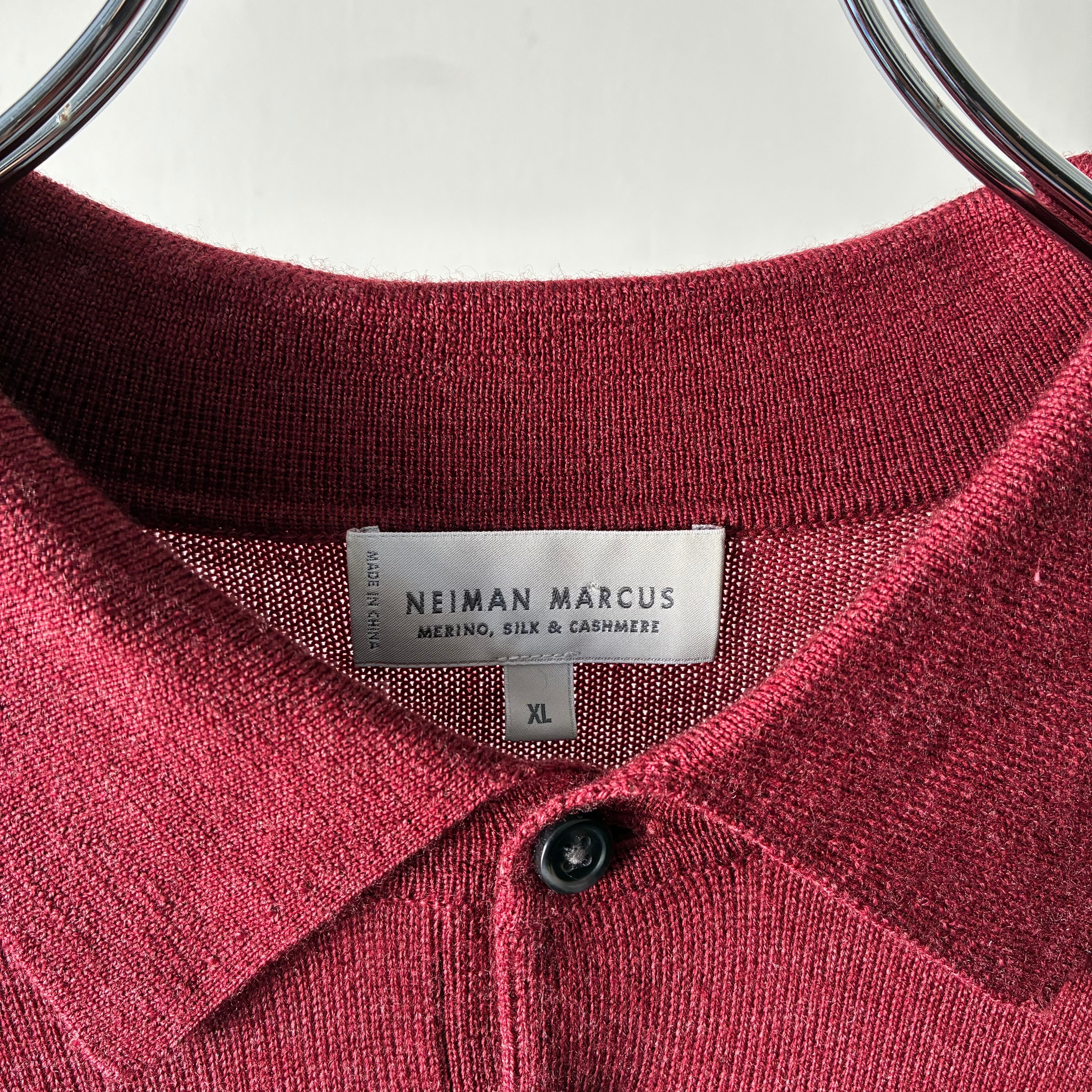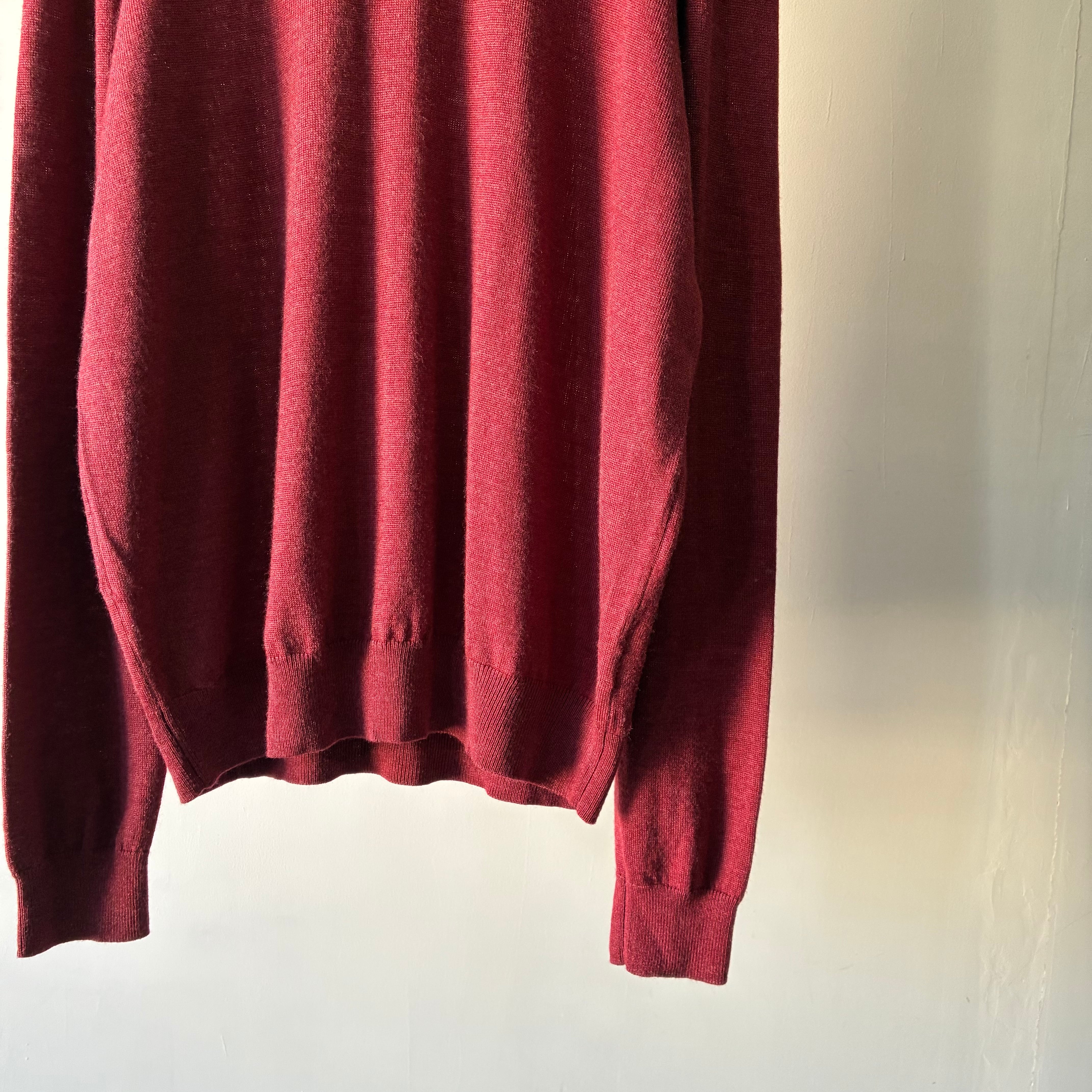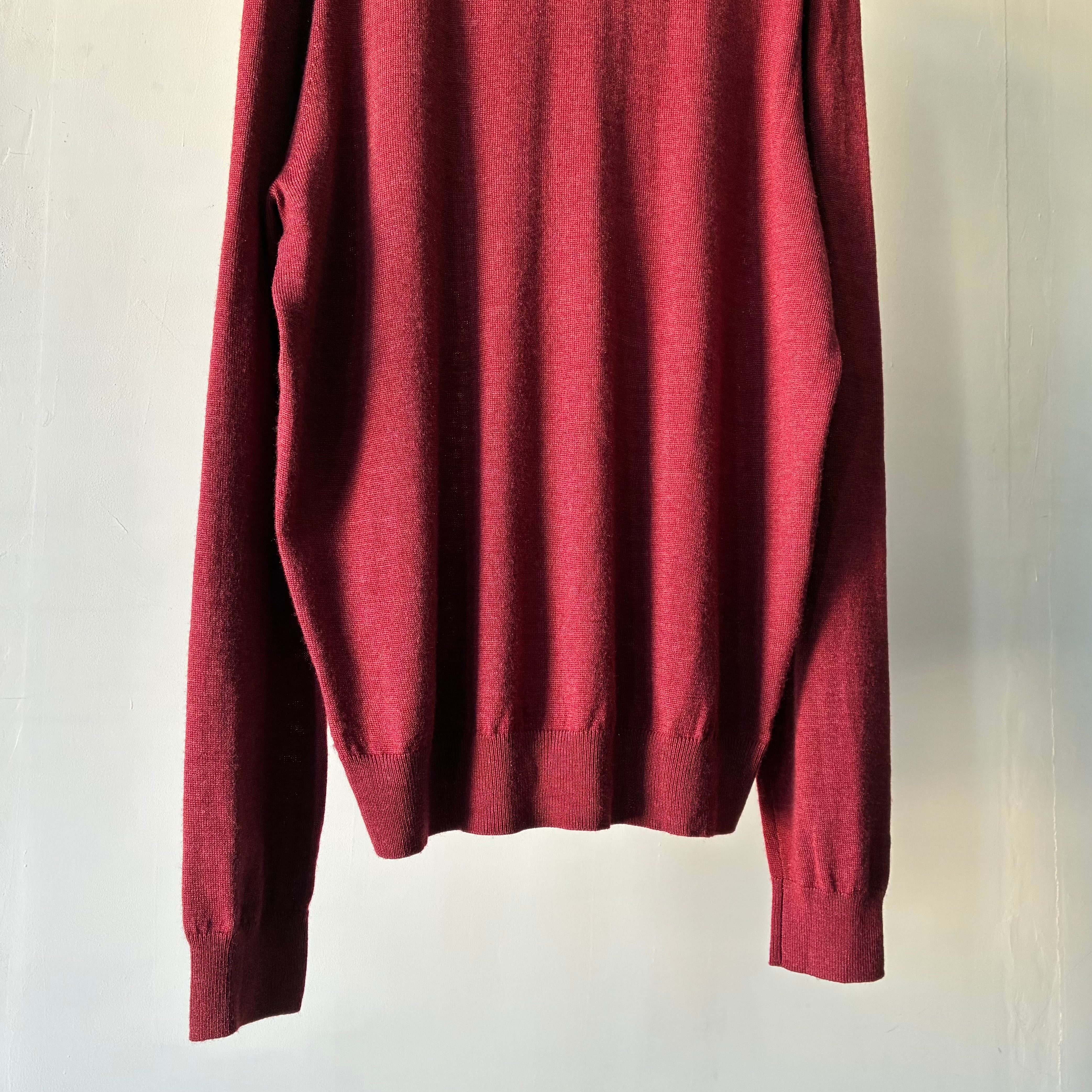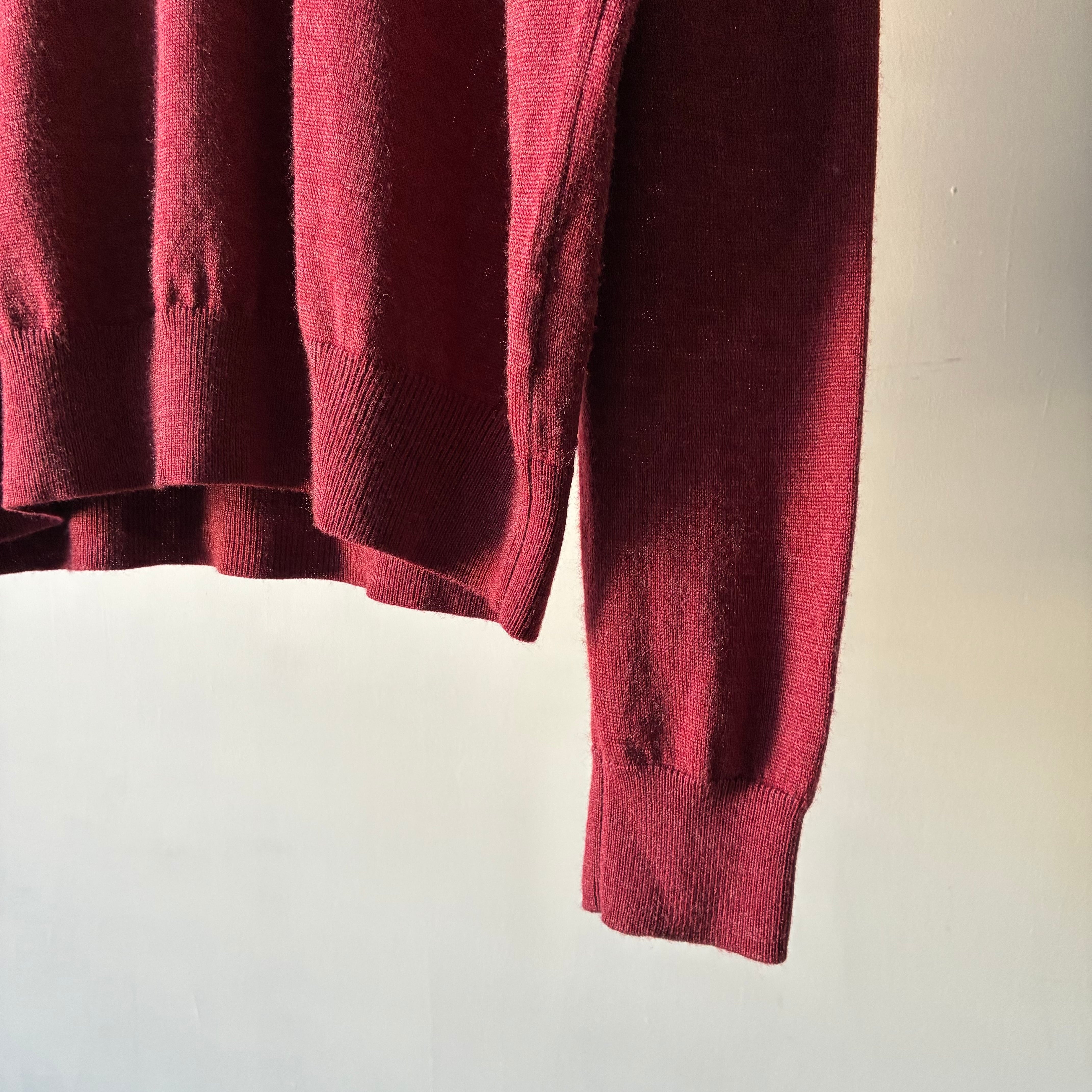 深みのあるレッドカラーが映えるシンプルかつ上品な印象のニットポロシャツ