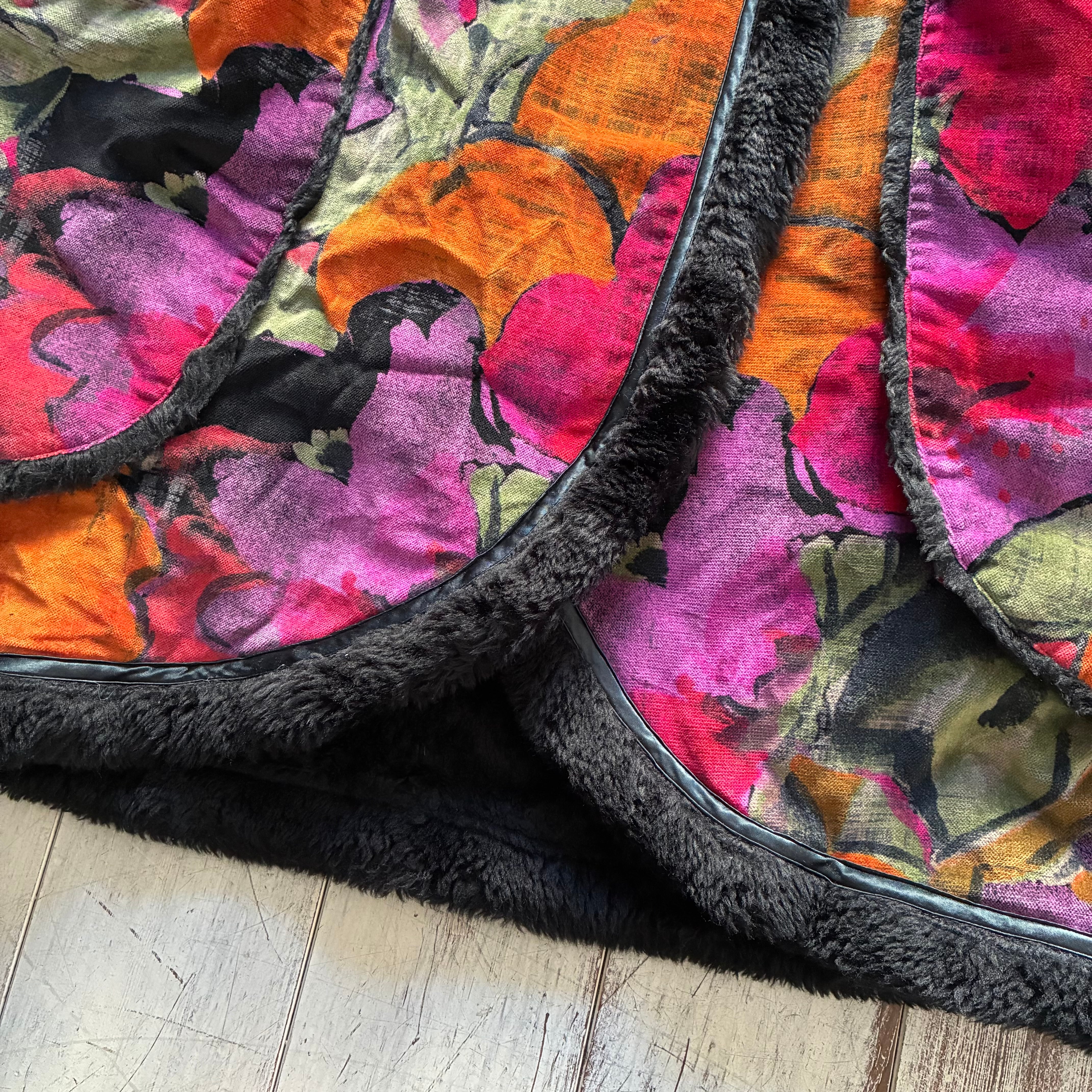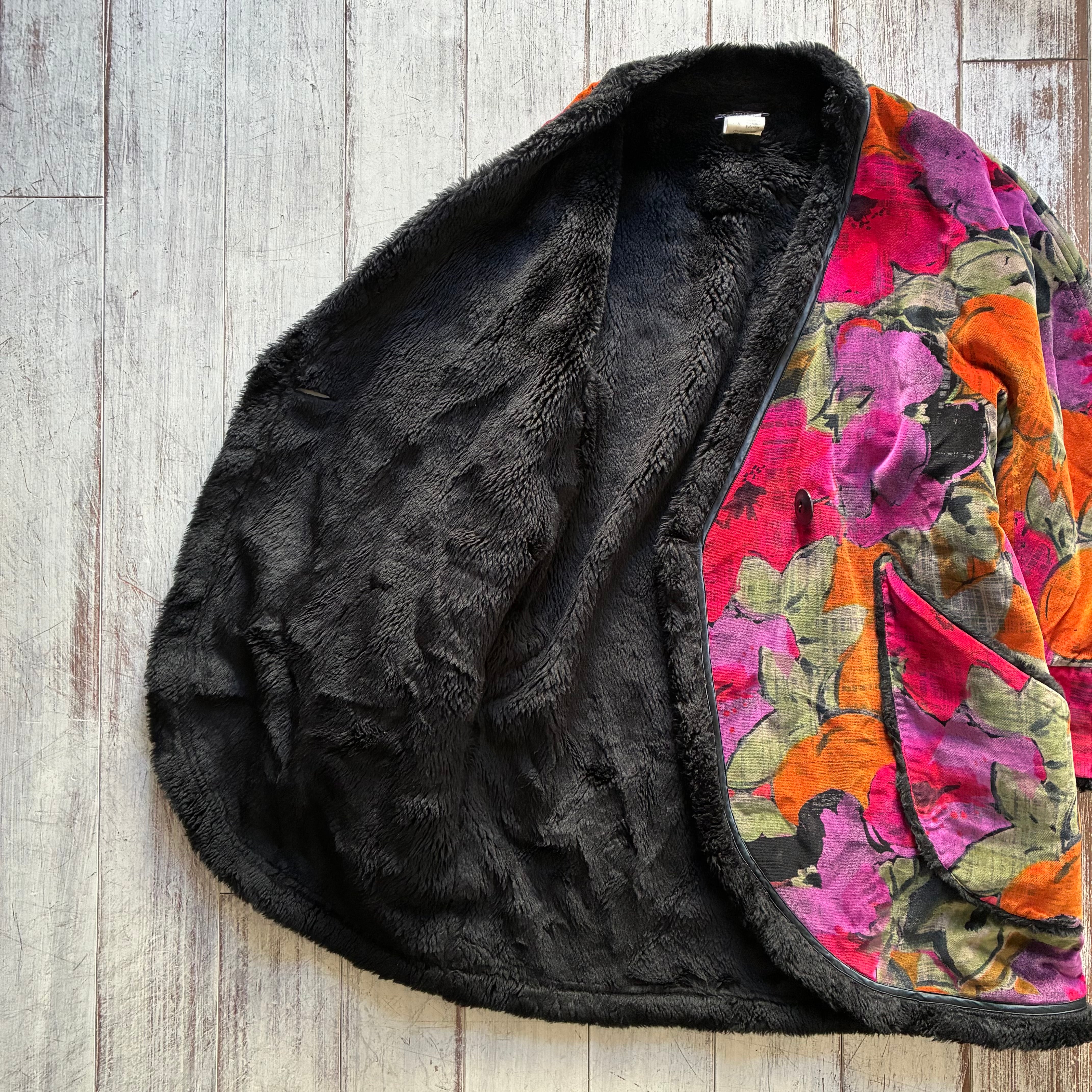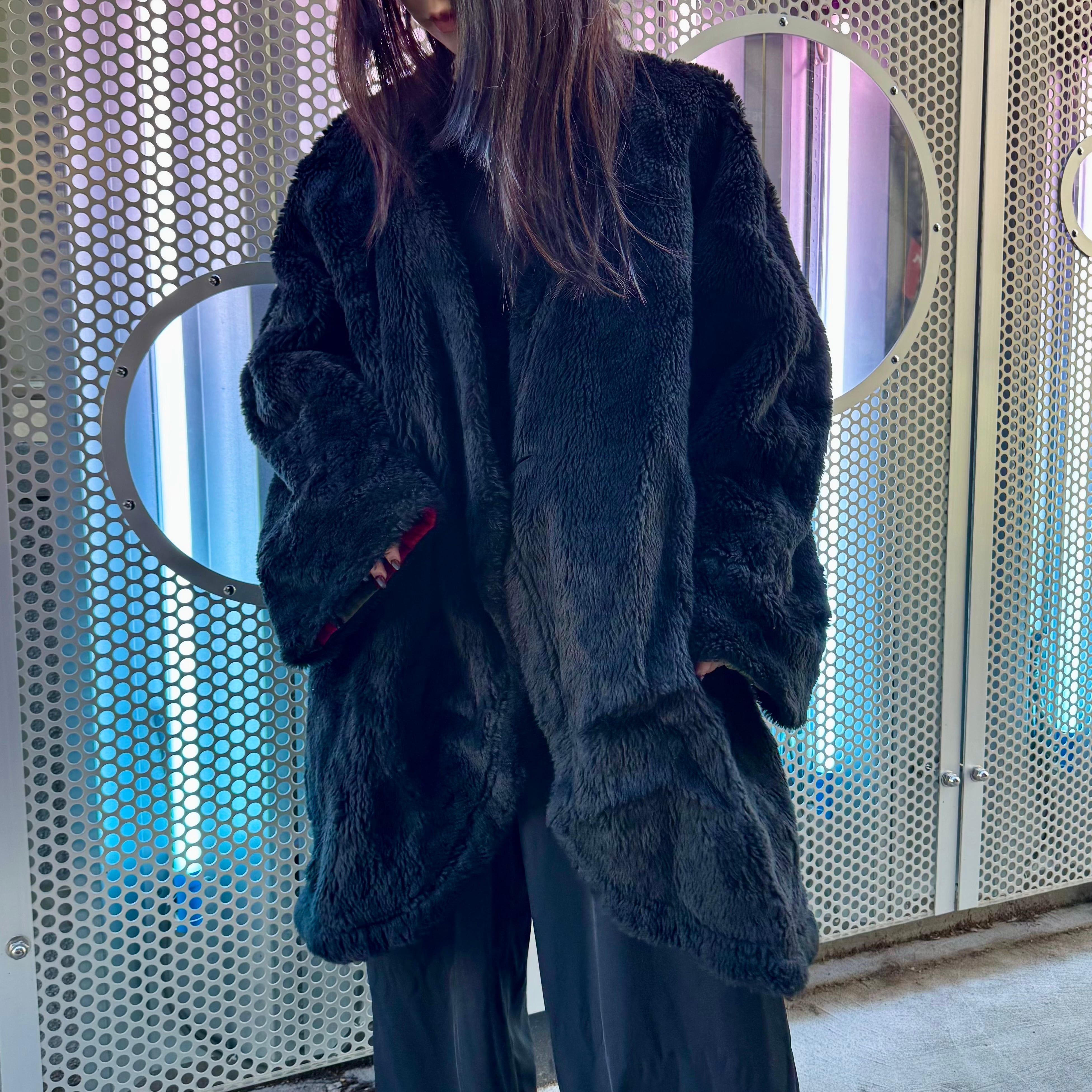 ベロアのようなふかふかとしたソフトな生地感で裏地は風合い豊かなファー仕様
