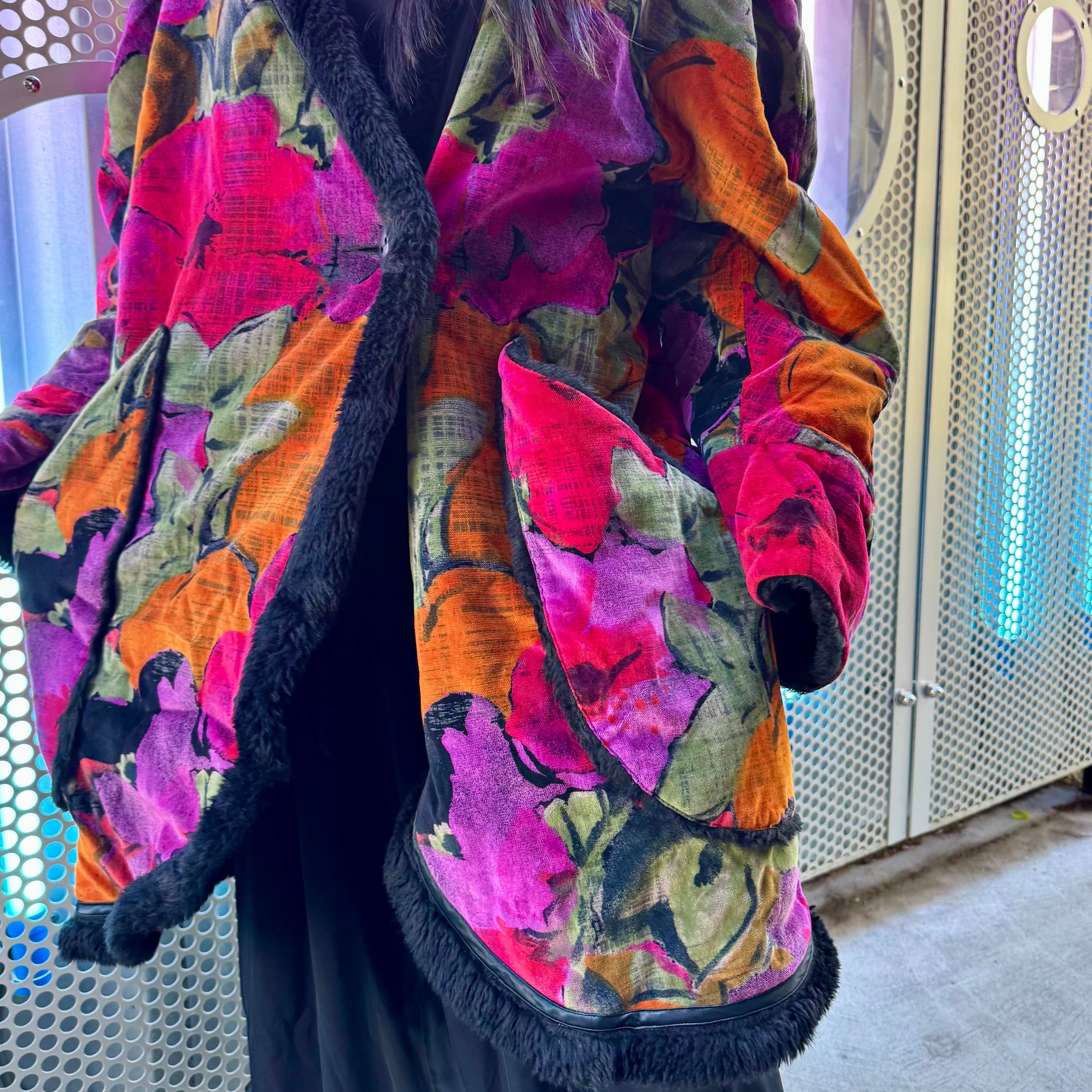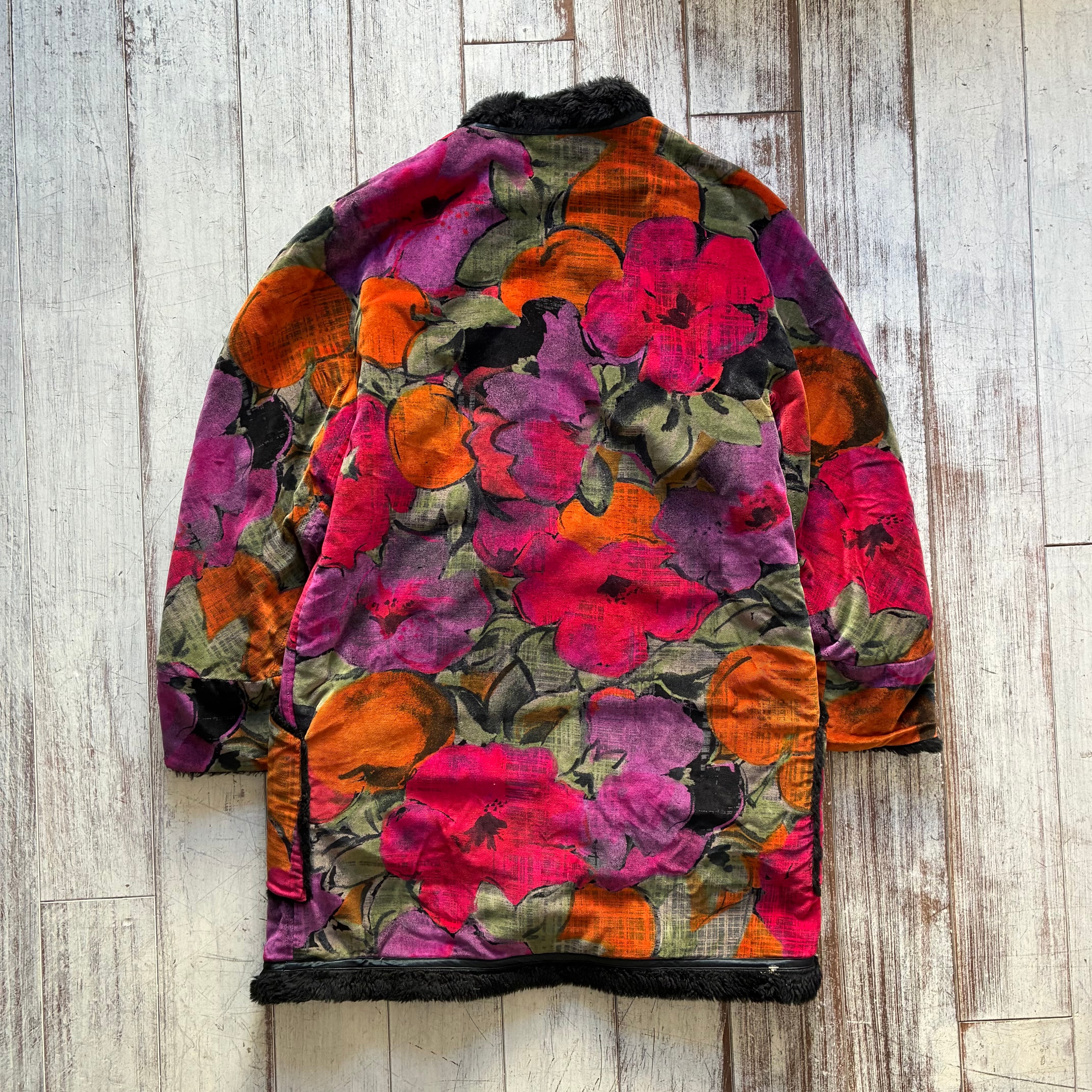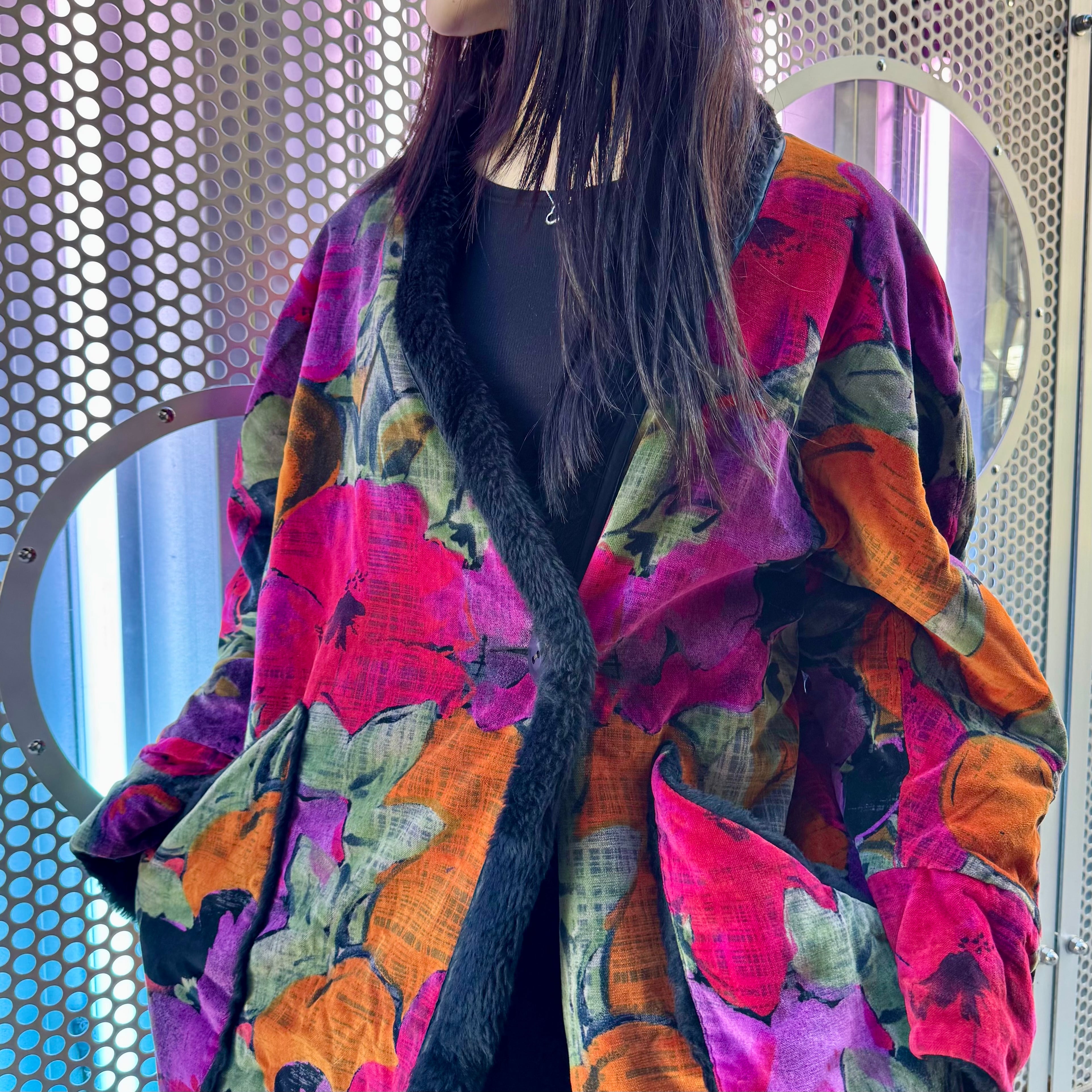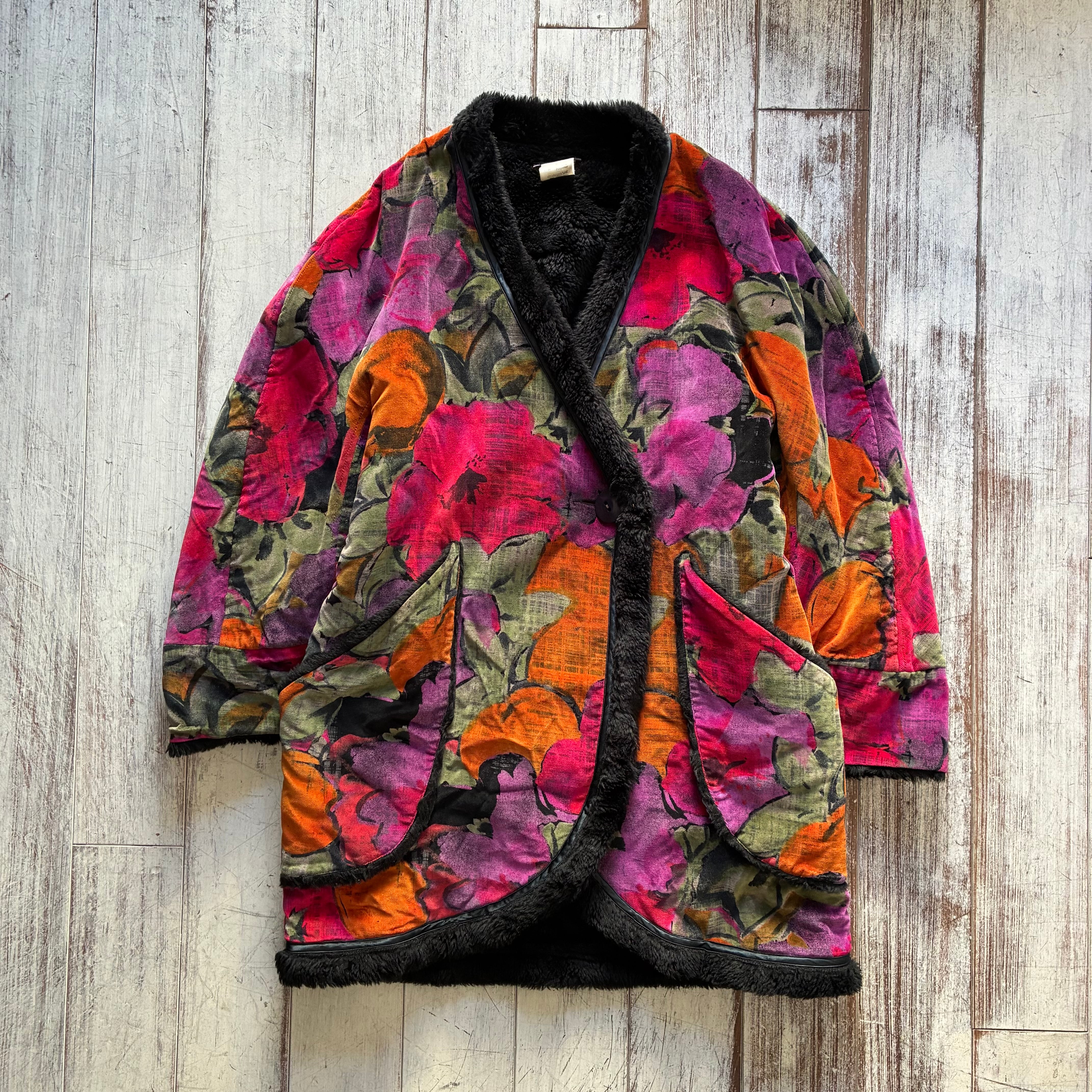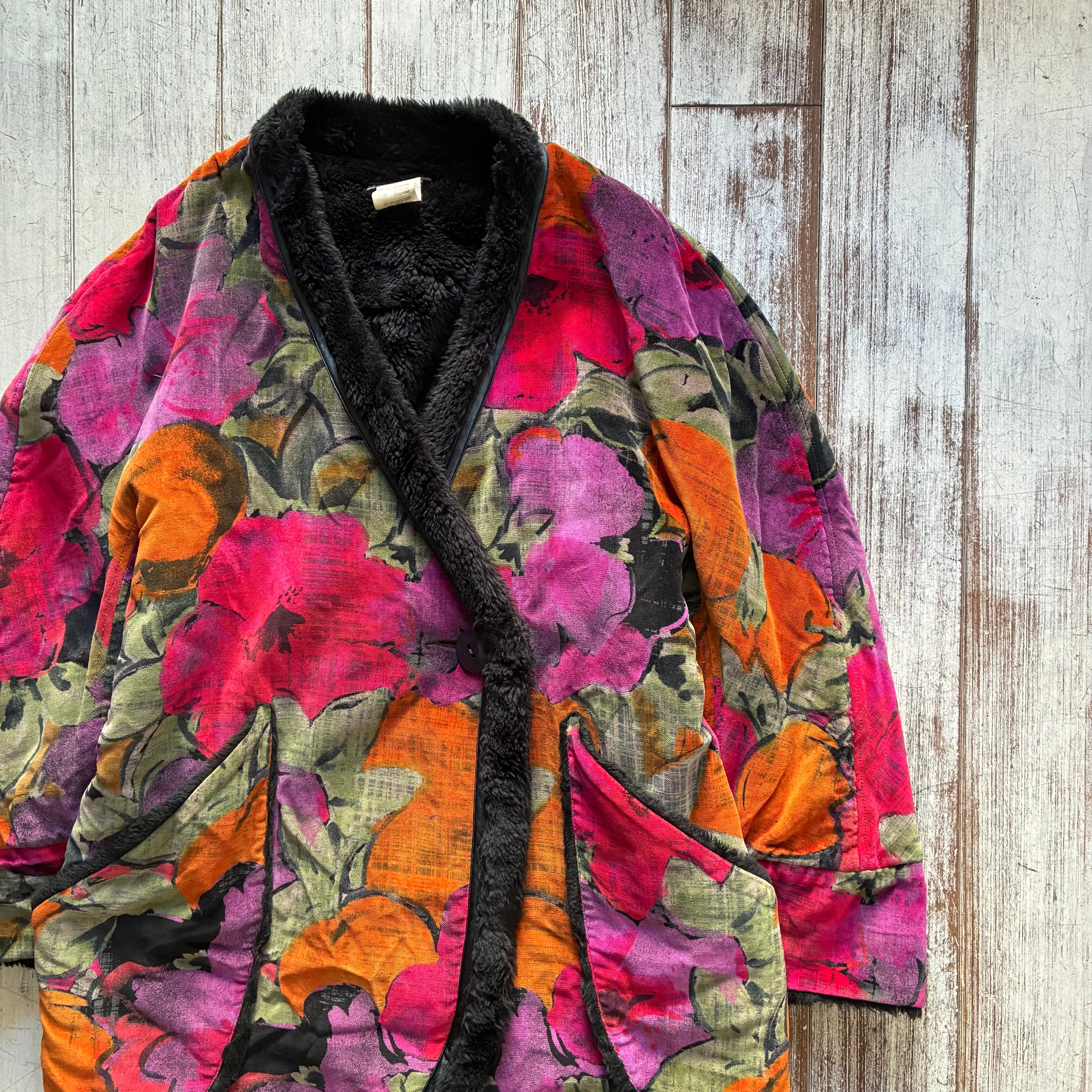 多色でのエレガントな水彩調の花柄が映えるハーフコート