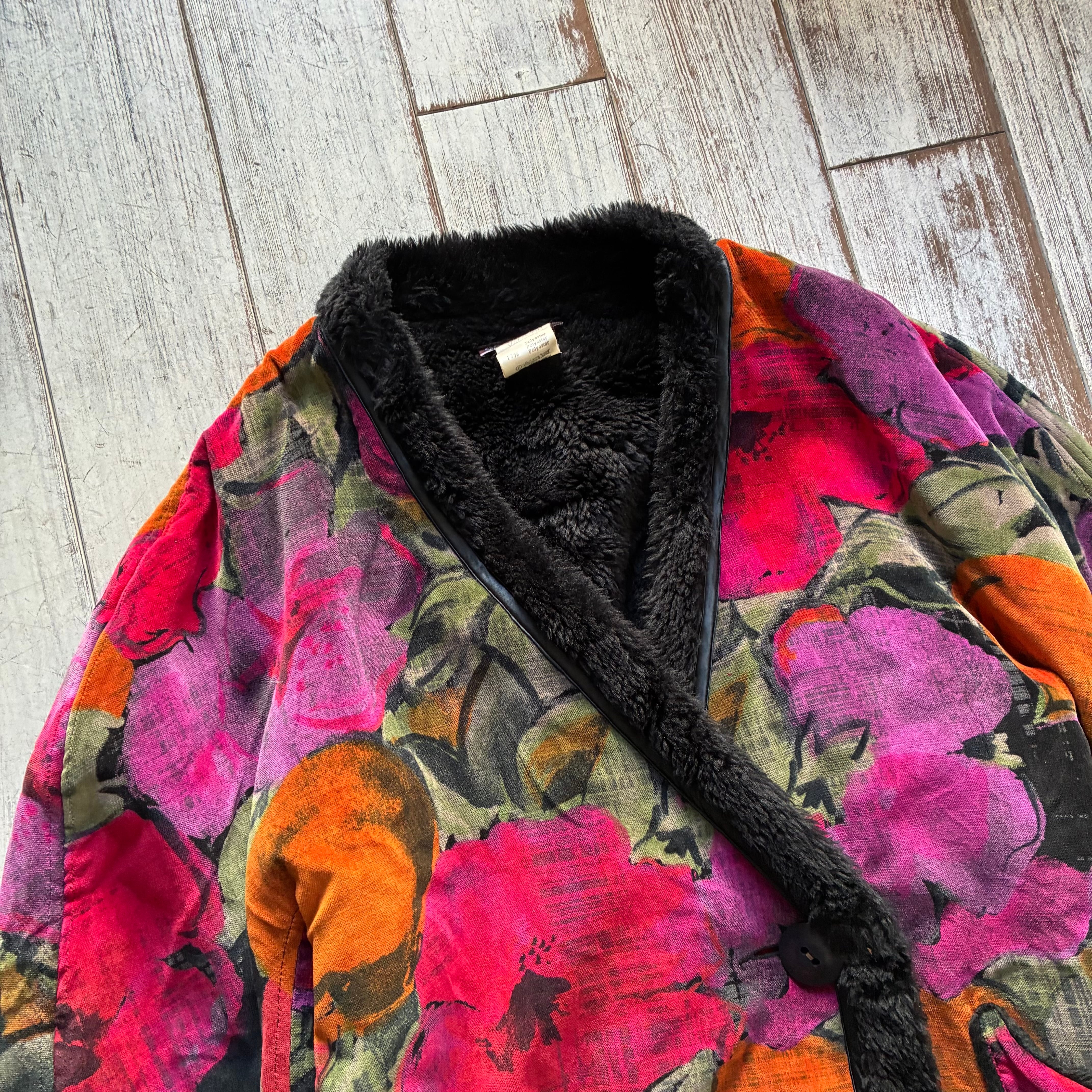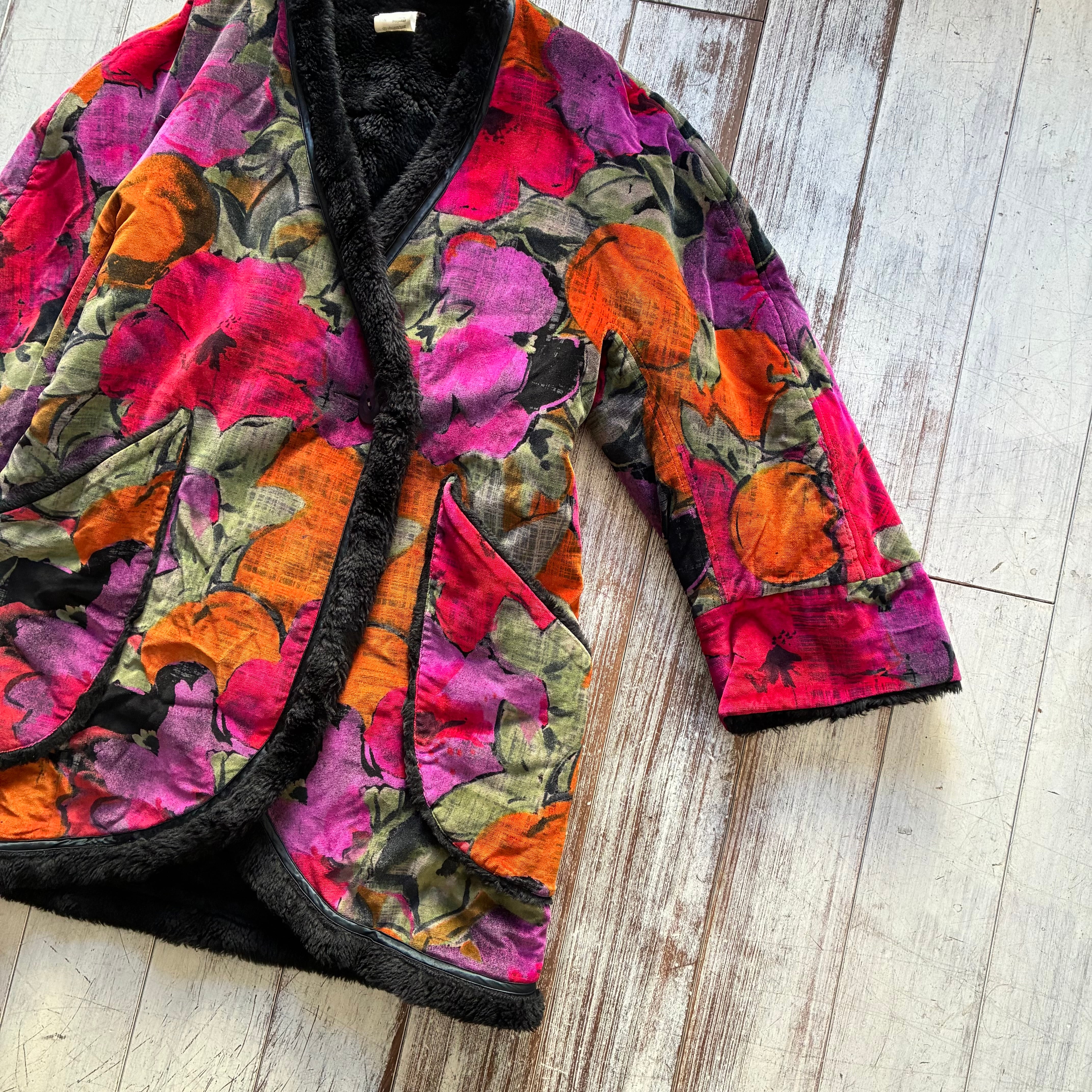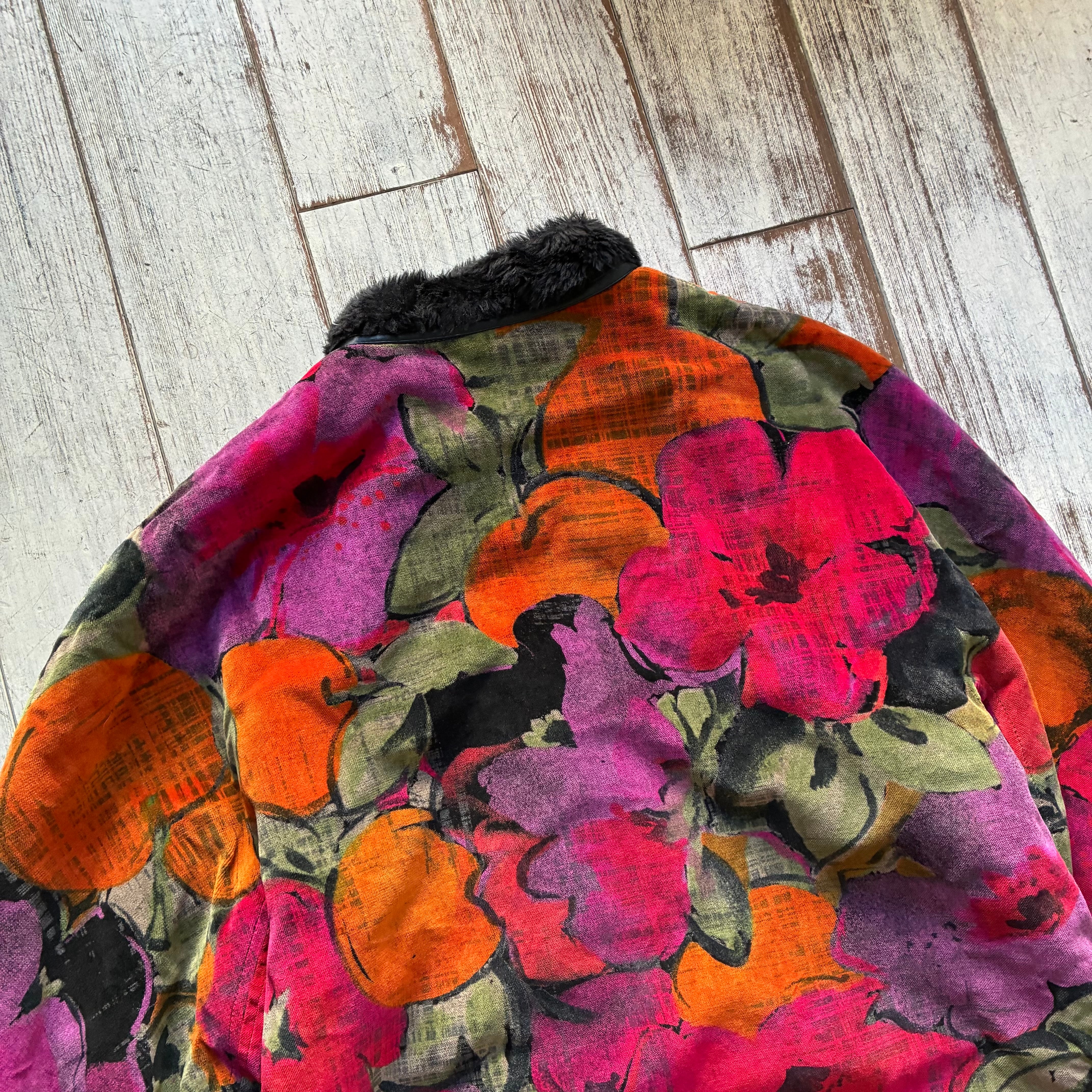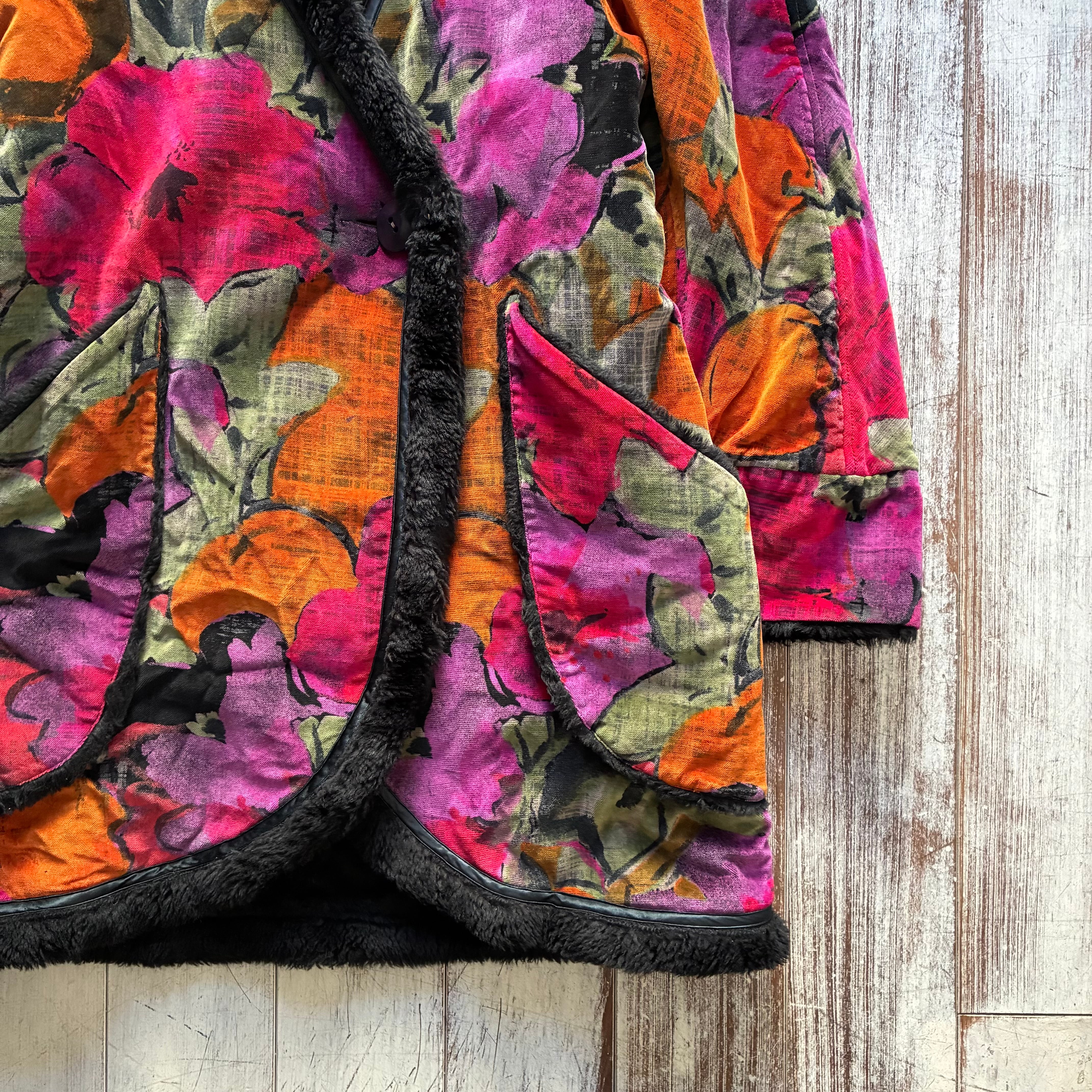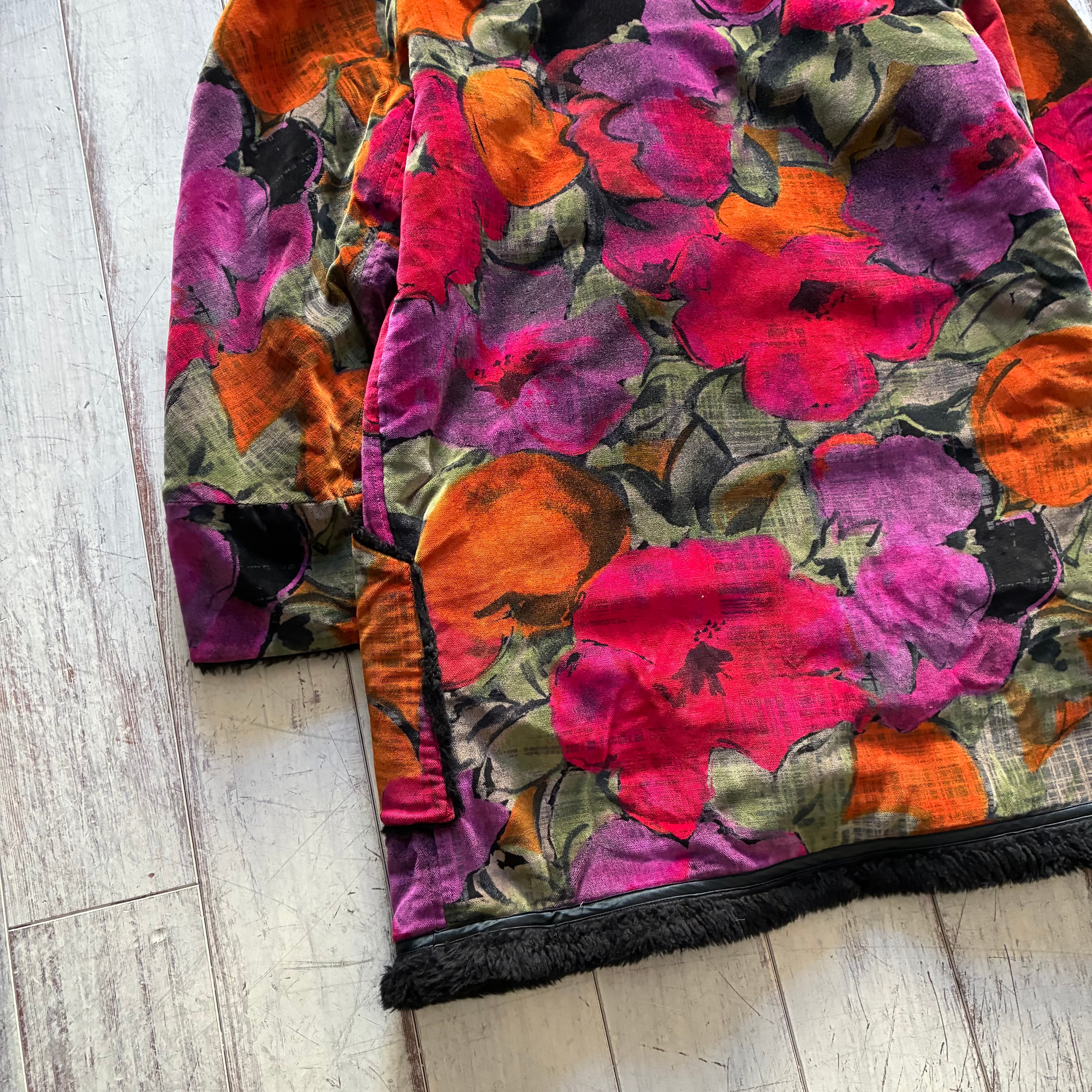 多色でのエレガントな水彩調の花柄が映えるハーフコート
